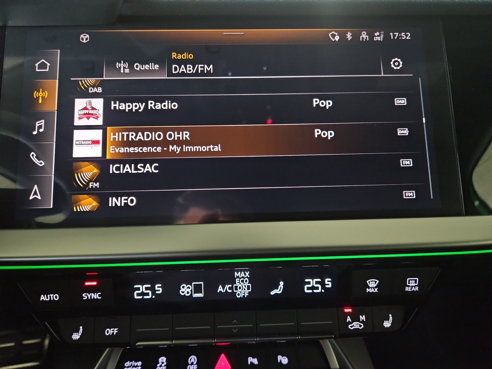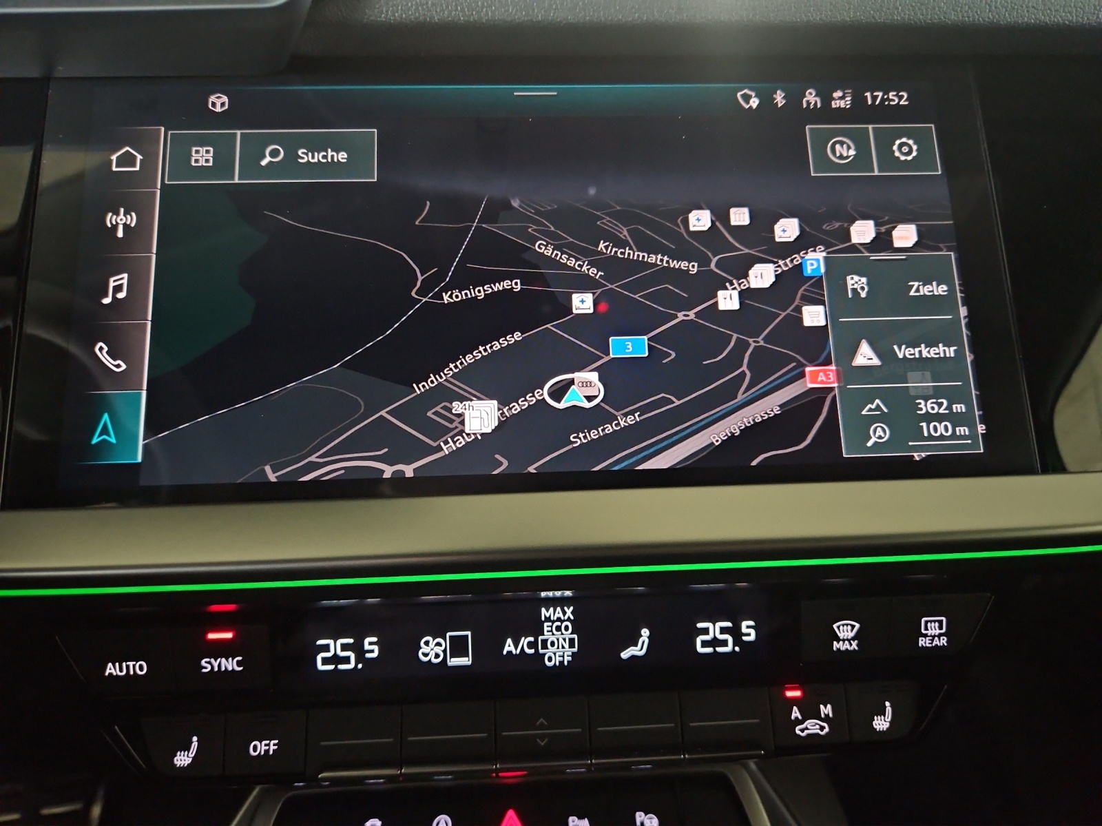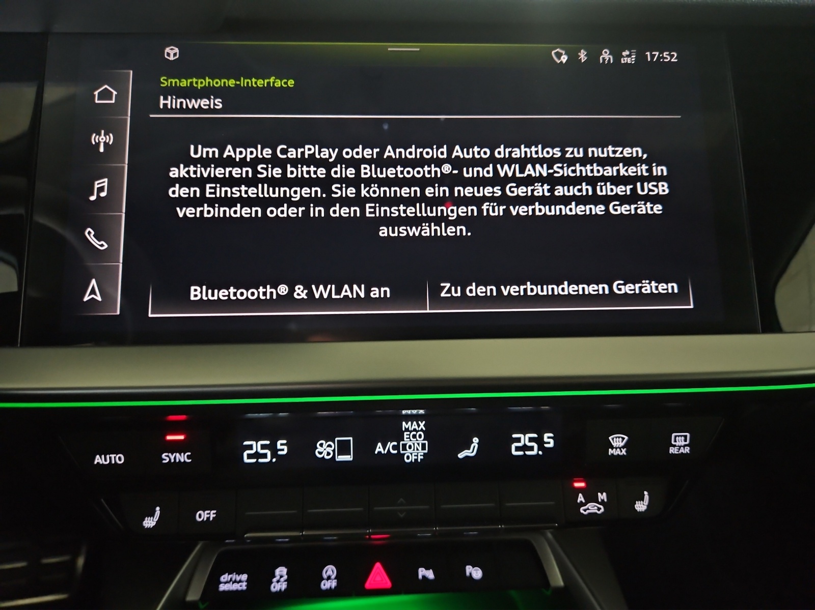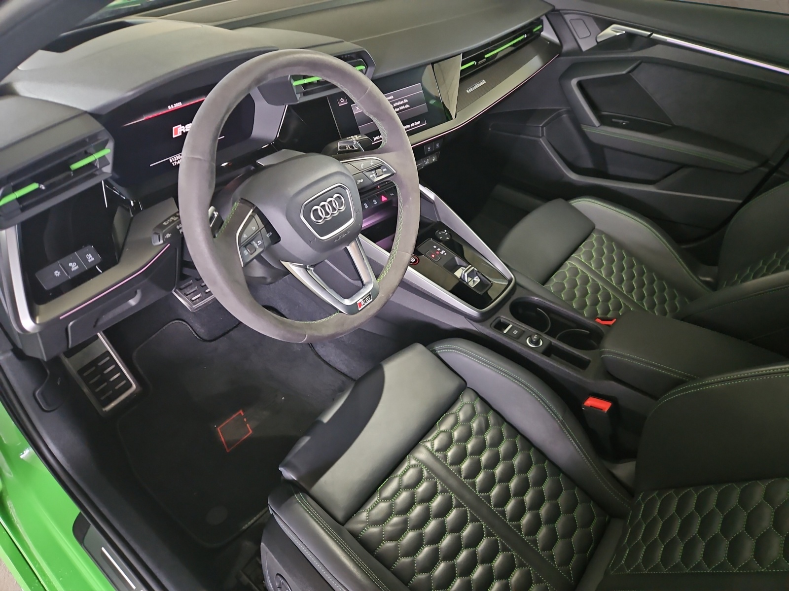3-Punkt-Sicherheitsgurte auf allen Plätzen Airbag: Airbag für Fahrer und Beifahrer mit Beifahrer-Airbag-Deaktivierung Airbag: Seitenairbags vorn mit Kopfairbagsystem Assist: Geschwindigkeitsbegrenzungsanlage bis 250 km/h Assist: Geschwindigkeitsregelanlage plus Assist: Parkassistent mit Einparkhilfe plus Assist: Proaktiver Insassenschutz Front, Seite und Heck Audi virtual cockpit plus mit zusätzlichem RS-Layout Aussenspiegel elektrisch einstell- und beheizbar Dachhimmel in Stoff schwarz Dachkantenspoiler in Wagenfarbe Dekor: Dekoreinlage Carbon Atlas Struktur Einstiegsleisten in den Türausschnitten, beleuchtet Elektromechanische Parkbremse Elektronische Stabilisierungskontrolle (ESC) Fahrwerk: RS-Sportfahrwerk Frontscheibe in Akustikverglasung Fussmatten vorne und hinten Garantie: 2 Jahre ohne Kilometerbegrenzung (ab 1. Inv.) Getriebe: 7-Gang- Automat S tronic Klima: 2-Zonen-Komfortklimaautomatik Lackierung: Uni-Lackierung Lenkrad: RS-Sportkontur-Lederlenkrad im 3-Speichen-Design Licht: Drittes Bremslicht Licht: Einstiegs LED mit RS-Projektion vorn Licht: LED Heckleuchten mit dynamischem Blinklicht Licht: Nebelschlussleuchte Media: Bluetooth-Schnittstelle Media: Digitaler Radioempfang Media: Lautsprecher (passiv) Paket: Ablagen- und Gepäckraumpaket Paket: Ambiente Lichtpaket plus Paket: Optikpaket schwarz Pedalerie und Fussstütze in Edelstahl Polster: Sitzbezüge in Mikrofaser Dinamica / Kunstleder mono.pur RS-Exterieurumfänge in schwarz matt Räder: Reifendruck-Kontrollanzeige Räder: Reifenreparatur-Set (Tire Fit) Räder: Räder, 10-Y-Speichen, platingrau, glanzgedreht Scheinwerfer-Reinigungsanlage Sitze: Rücksitzlehne, geteilt umklappbar Sitze: Vordersitze manuell einstellbar Verbandmaterial und Warndreieck Wegfahrsperre elektronisch Zentralverriegelung mit Fernbedienung