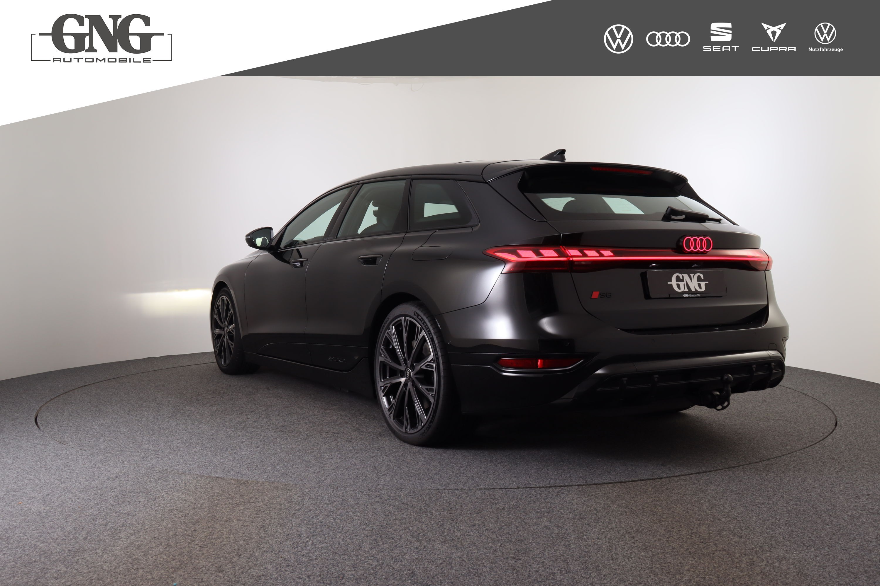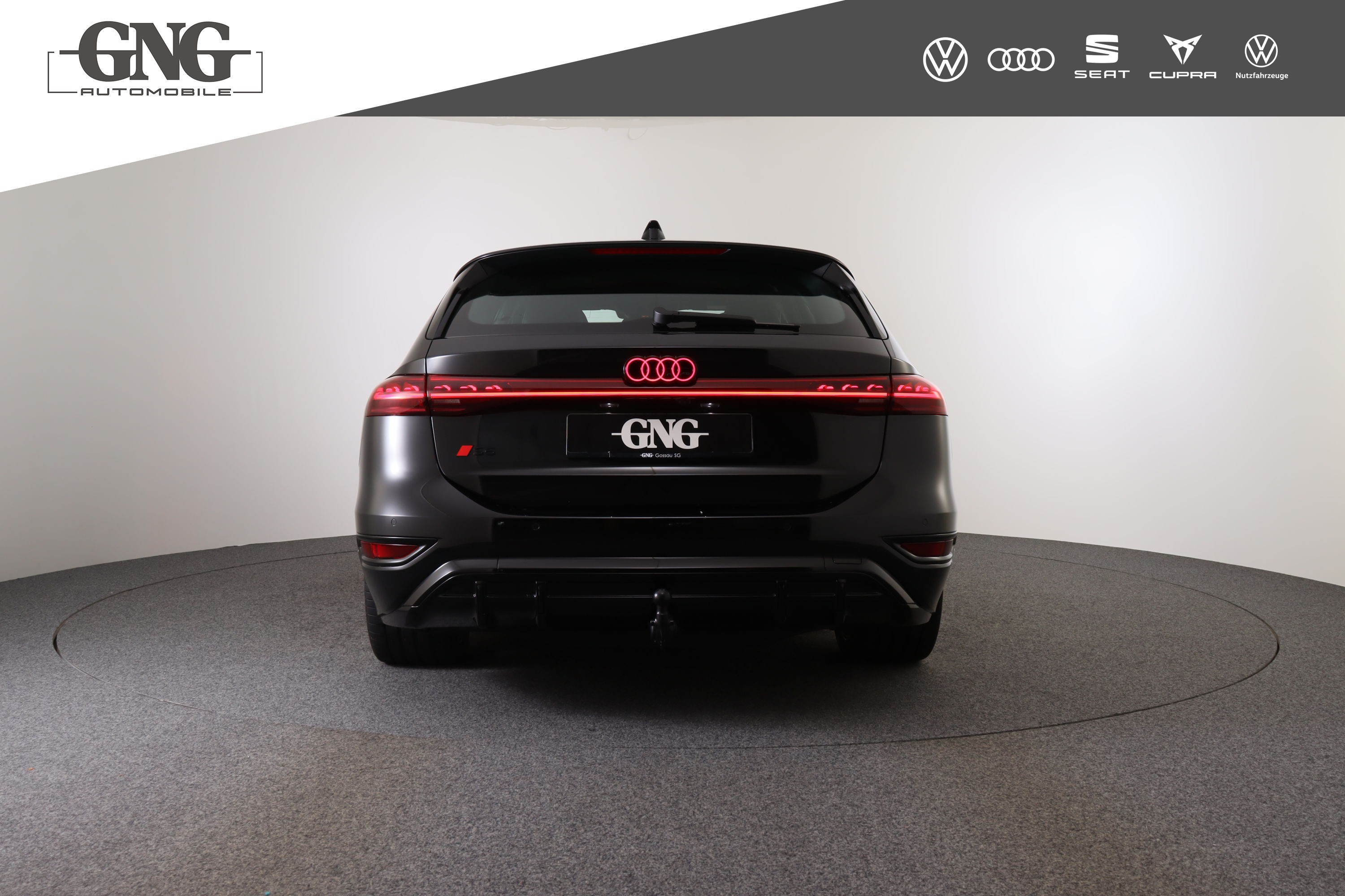 Anhängevorrichtung mechanisch schwenkbar Garantie: Audi Garantie: 5 Jahre oder 100'000 km (ab 1. Inv.) Industriestecker CEE 16A, 400V, lang und gerade für das e-tron Ladesystem Lackierung: Metallic-Lackierung Media: LTE-Unterstützung für Audi phone box Media: MMI Beifahrerdisplay Media: Telefonablage mit induktiver Ladefunktion und Mobilfunk-Koppelantenne Paket: Ablage- und Gepäckraumpaket und Frontkofferraum Paket: Exterieurpaket schwarz Paket: Interieur S mit Sportsitzen plus, Leder schwarz Paket: Klimatisierungspaket Winter Paket: MMI experience pro Paket: R-Line "Exterieur & Interieur" Panorama-Glasdach mit schaltbarer Transparenz Räder: Räder Audi Sport, 5-Doppelspeichen, schwarz met., glanzgedreht, abgedunkelt