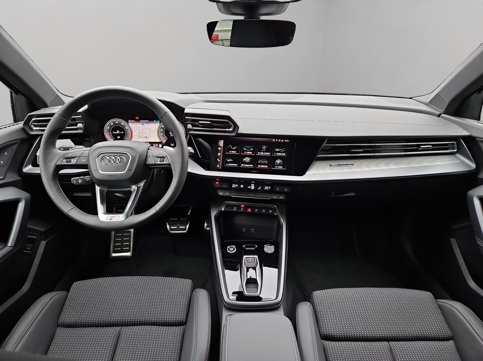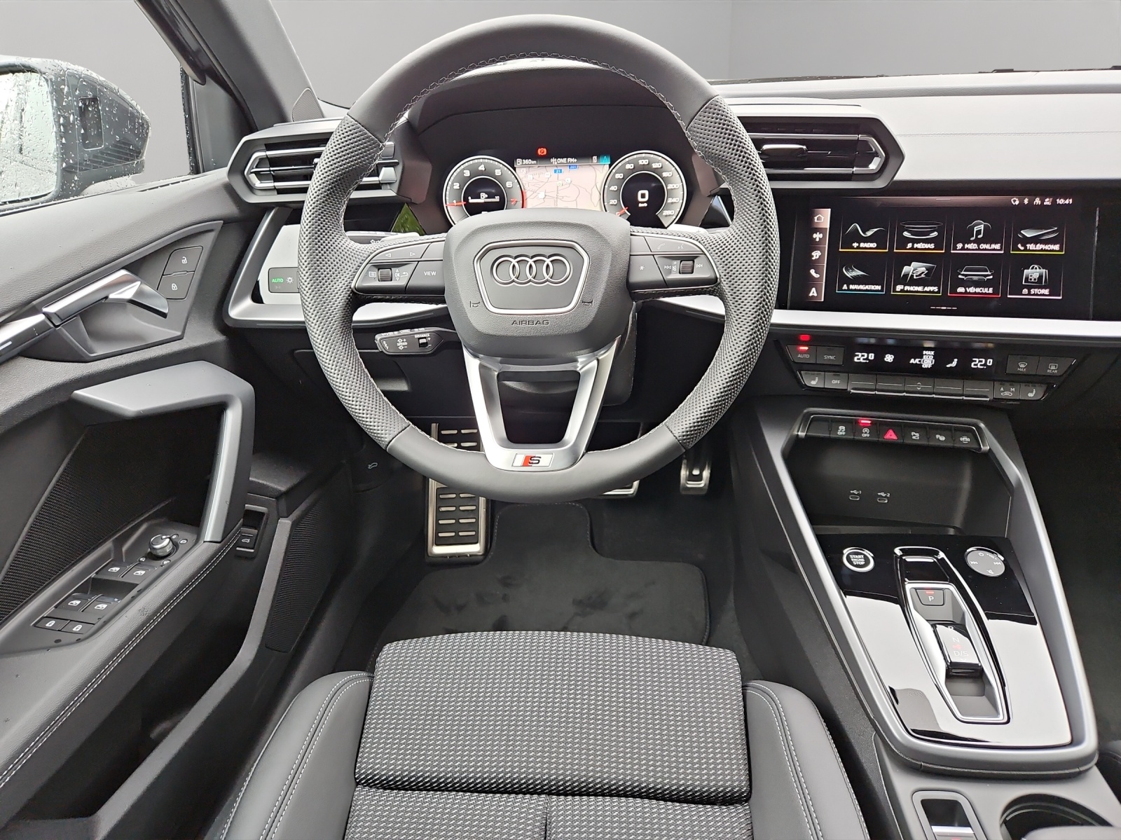 Assist: Assistance de stationnement avec aide au stationnement plus Assist: Assistant d'arrêt Assist: Assistant de conduite adaptative avec assistant d'urgence Assist: Assistant de vitesse adaptative Clé de confort sans Safelock Lumière: Assistance aux feux de route Pack: Intérieur S avec sièges sport, combinaison tissu/similicuir noir Pack: Le pack Esthétique noir plus Pack: Pack climatisation plus Pack: Pack confort - Sportback Pack: Pack éclairage d’ambiance plus Pack: Phares avant LED et feux arrière LED avec clignotants arrière dynamiques Roues: Jantes Audi Sport, design à 5 branches doubles Y, noir métallisé Sièges: Sièges AV à réglage électrique Sièges: dossier de siège arrière, partiellement rabattable Vitrage de contrôle solaire, obscurci