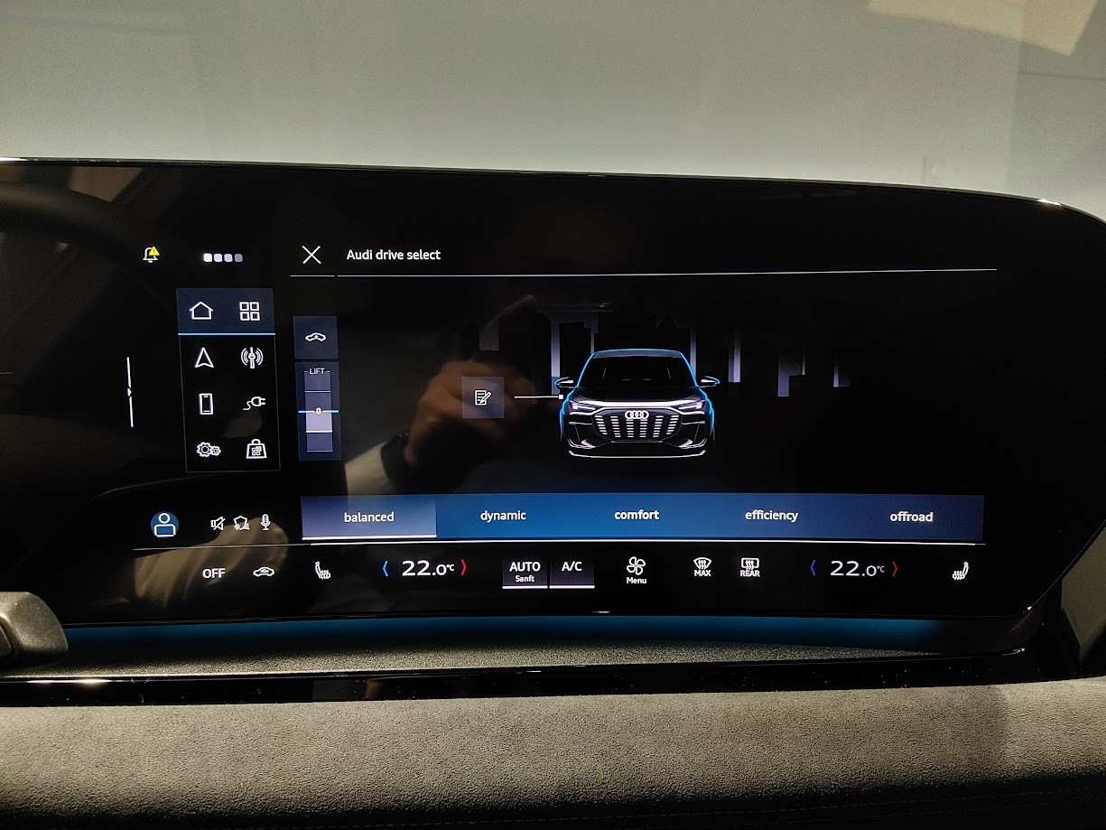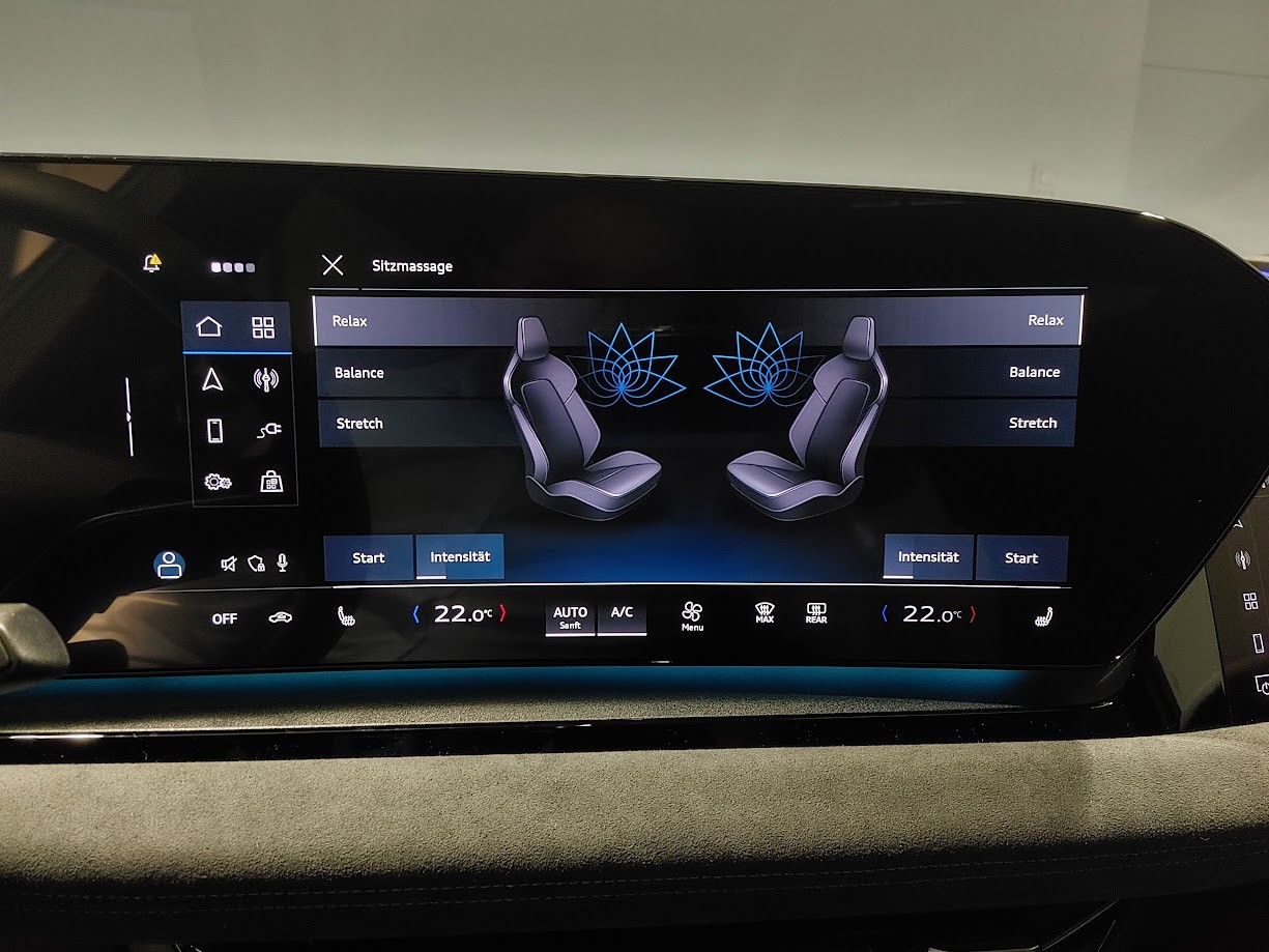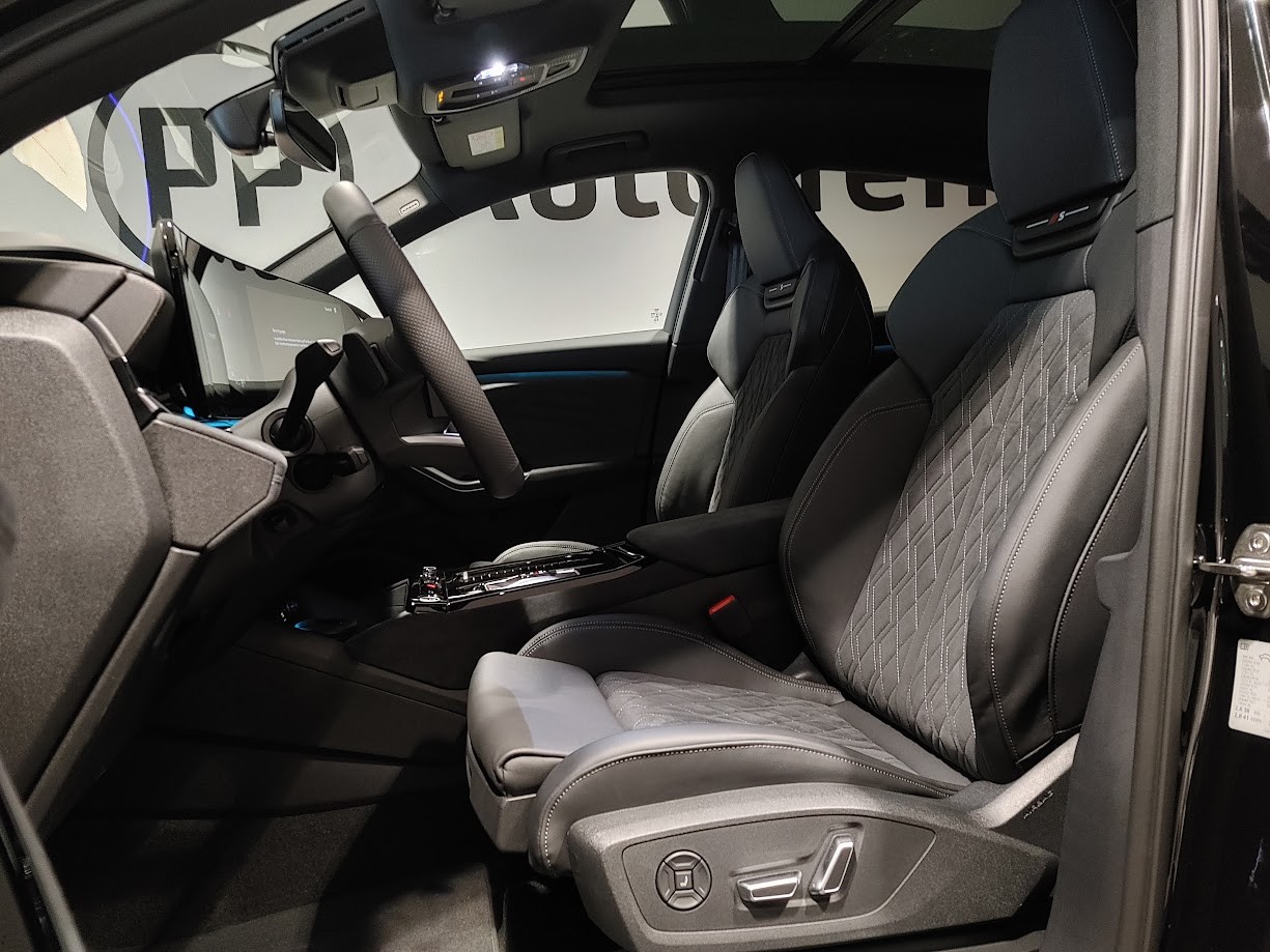 Airbag: Airbag Beifahrer deaktivierbar Airbag: Airbag Fahrer und Beifahrer Airbag: Seitenairbag vorn, mit Kopfairbag und Interaktionsairbag vorn Akustisches Fahrzeug-Warnsystem (AVAS) Assist: Adaptiver Geschwindigkeitsassistent Assist: Aufmerksamkeits- und Müdigkeitserkennung Assist: Ausweichassistent und Abbiegeassistent Assist: Einparkhilfe plus mit Distanzanzeige Assist: Kamerabasierte Verkehrszeichenerkennung Assist: Kreuzungsassistent Assist: Notbremsassistent vorn Assist: Parkassistent plus Assist: Spurverlassenswarnung Assist: Spurwechsel- und Ausstiegswarnung, Querverkehrassistent hinten und Abbiegeassistent hinten Assist: Traktionskontrolle Assist: Verkehrszeichenbasierter Geschwindigkeitsbegrenzer Audi connect Notruf & Service mit Audi connect Remote & Control Audi virtual cockpit plus Aussenspiegel elektrisch einstell-, beheiz- und anklappbar, beidseitig automatisch abblendend Aussenspiegel in Wagenfarbe Dachhimmel Stoff, Farbe felsgrau Dekor: Dekoreinlage Feinlack vulkangrau Dekor: Instrumententafel-Oberseite schwarz mit Kontrastnaht Dekor: Interieurelemente oben und unten Kunstleder Einstiegsleisten mit Aluminiumeinlegern vorn Elektrische Fensterheber vorne Elektronisches Stabilitäts-Programm (ESP) Fahrwerk: Komfortfahrwerk Fensterzierleisten schwarz Fussmatten vorne und hinten Garantie: Audi Garantie 2 Jahre ohne Kilometerbegrenzung (ab 1. Inv.) Getriebe: Direktantrieb, kein Getriebe Innenspiegel automatisch abblendbar Interieur mit Normalsitzen, Stoff schwarz Klima: 3-Zonen-Klimatisierungsautomatik Klima: Automatische Umluftregelung Klima: Elektrische Luftzusatzheizung Komfortmittelarmlehne vorne Komfortschlüssel ohne Safelock Lackierung: Kontrastlackierung Lackierung: Uni-Lackierung Magnetgrau Ladekabel Mode 3 für öffentliches Laden bis 22 kW Ladeleistung bis 270 kW (DC) Lenkrad: Doppelspeichen-Lederlenkrad mit Multifunktion und Schaltwippen Lenkrad: Lenkrad längs- und höhenverstellbar Lenkrad: Lenkrad mit Applikation in Chromoptik Lenkrad: Lenkradapplikation Chromoptik Licht: Fernlicht-Assistent Licht: LED-Heckleuchten pro Licht: LED-Scheinwerfer plus Licht: Projektionsleuchte in den Aussenspiegeln Licht: Tagesfahrlicht mit Assistenzfahrlicht u.Coming- u. Leaving-home Funktion automatisch Media: Audi Application Store und Smartphone-Interface Media: Audi connect Navigation & Infotainment Media: Digitaler Radioempfang Media: FOD Funktionen online verfügbar Media: MMI experience plus Media: Telefonablage mit induktiver Ladefunktion Media: USB-Anschlüsse mit Ladefunktion in erster und zweiter Sitzreihe Modellkennzeichnung am Heck On-board-Ladegerät bis 11 kW (AC) Paket: Ambiente Lichtpaket Paket: Klimatisierungspaket Winter Räder: Reifendruck-Kontrollanzeige Räder: Reifenreparatur-Set (Tire Fit) Räder: Räder, 10-Speichen Scheiben seitlich und hinten in Wärmeschutzverglasung Scheinwerfer-Reinigungsanlage Sitze: Kindersitzbefestigung i-Size auf der Beifahrerseite und i-Size und Top Tether Sitze: Rücksitzbank ungeteilt, Lehne geteilt umlegbar (dreiteilig) mit Mittelarmlehne Sitze: Vordersitze manuell einstellbar Türen: Gepäckraumklappe elektrisch öffnend und schliessend Türgriffe aussen in Wagenfarbe Verbandmaterial,Warndreieck und Warnveste Vorbereitung für Anhängevorrichtung Vorbereitung für intelligente Ladefunktionen Wegfahrsperre elektronisch Wärmeschutz- und Akustikverglasung Frontscheibe Zentralverriegelung mit Fernbedienung