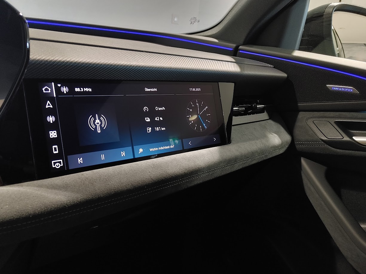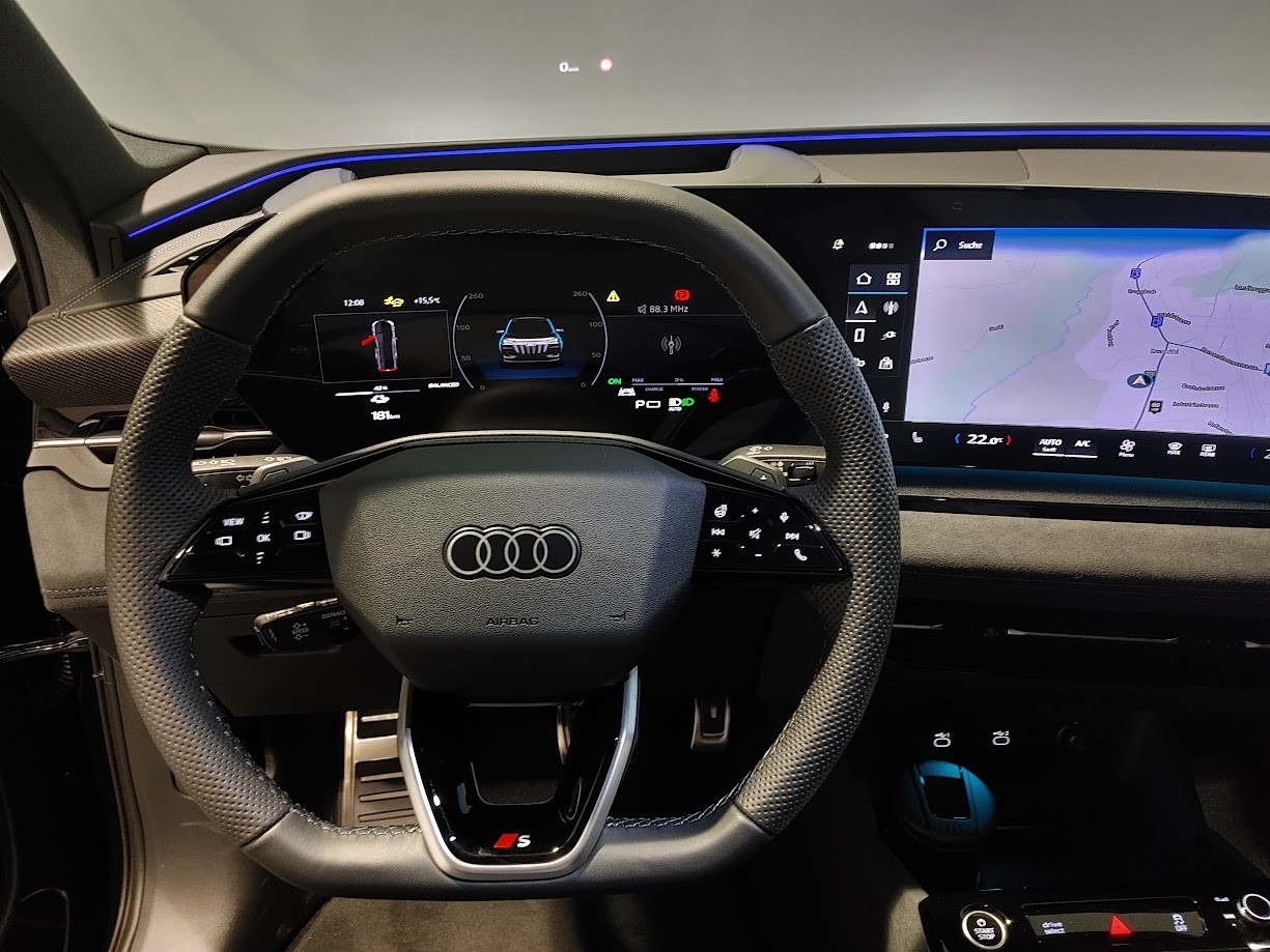 Anhängevorrichtung abschwenkbar Dekor: Dekoreinlage Carbon Mikro-Köper Struktur Entfall Modellbezeichnung Garantie: Audi Garantie: 5 Jahre oder 100'000 km (ab 1. Inv.) Industriestecker CEE 16A, 400V, lang und gerade für das e-tron Ladesystem Media: Bang & Olufsen Premium Soundsystem mit 3D-Klang und Kopfstützenlautsprechern Media: LTE-Unterstützung für Audi phone box Media: Telefonablage mit induktiver Ladefunktion und Mobilfunk-Koppelantenne Paket: Ablage- und Gepäckraumpaket und Frontkofferraum Paket: Exterieurpaket schwarz Paket: Interieur S mit Sportsitzen plus, Mikrofaser Dinamica/Leder-Kombination schwarz Paket: MMI experience pro Paket: Paket Premium Experience Räder: Räder Audi Sport, 5-Y-Speichen-Dynamik, schwarz metallic, glanzgedreht Sonnenschutzverglasung, abgedunkelt