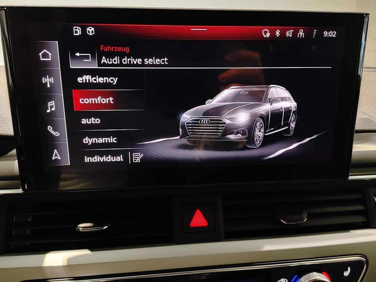 Sonderausstattung Assist: Geschwindigkeitsregelanlage inklusive Geschwindigkeitsbegrenzer Assist: Parkassistent mit Einparkhilfe plus Aussenspiegel rechts und links beheizbar und elektrisch anklappbar Fahrwerk: Komfortfahrwerk mit Dämpferregelung Garantie: Audi Garantie: 5 Jahre oder 100'000 km (ab 1. Inv.) Klima: 3-Zonen-Klimatisierungsautomatik Komfortschlüssel inklusive sensorgesteuerter Gepäckraumentriegelung Lenkrad: Lederlenkrad im 3-Speichen-Design mit Multifunktion plus Licht: Fernlicht-Assistent Media: Audi Smartphone Interface Paket: Ablagen- und Gepäckraumpaket Paket: Ambiente Lichtpaket Paket: Assistenzpaket Stadt + Parken Paket: Communication Paket Privacy-Verglasung (Scheiben abgedunkelt) Rahmenloser Innenspiegel automatisch abblendbar Räder: Leichtmetallräder 18 Zoll im 10-Speichen-V-Design Sitze: 4-Wege-Lendenwirbelstütze für die Vordersitze Sitze: Vordersitze elektrisch verstellbar Sitze: Vordersitze heizbar