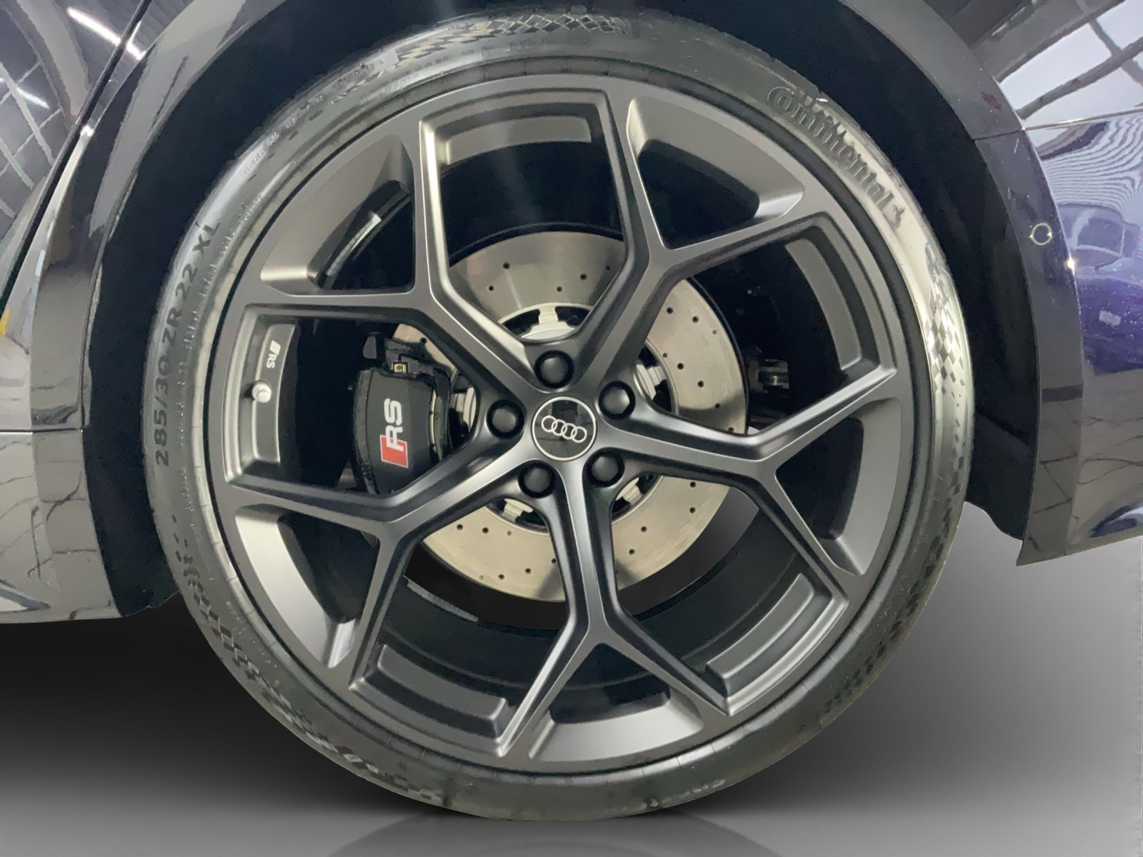 Anneaux et lettrage Audi en noir brillant Assist: Nachtsichtassistent Ciel de toit en alcantara noir Clima: Chauffage et ventilation auxiliaires (sans télécommande) Cockpit virtuel Audi plus mit zusätzlichem RS-Layout Décor: Incrustations décoratives structure en sergé de carbone avec accent bleu Garantie: 5 ans ou 100'000 km (dès 1re mise en circ.) Impianto di scarico sportivo RS Media: Ports USB avec fonction de charge à l’arrière Pack: Pack Assistance Plus Pack: Pack Esthétique carbone/noir brillant Pack: Pack design RS bleu, étendu Pack: Paquet fond Audi Pre sense Portes: Fermeture assistée des portières Roues: Jantes alliage 22 pouces style 5 branches en Y en noir mat Rouleaux pare-soleil pour vitres des Rétroviseurs extérieurs en carbon Sièges AV et AR chauffants Sièges sport RS, avant, perforés en cuir Sound-Système Advanced Bang & Olufsen Suspension: Châssis sportif RS plus avec Toit panoramique en verre Vitrage Privacy (vitres teintées) Vorbereitung für Anhängevorrichtung
