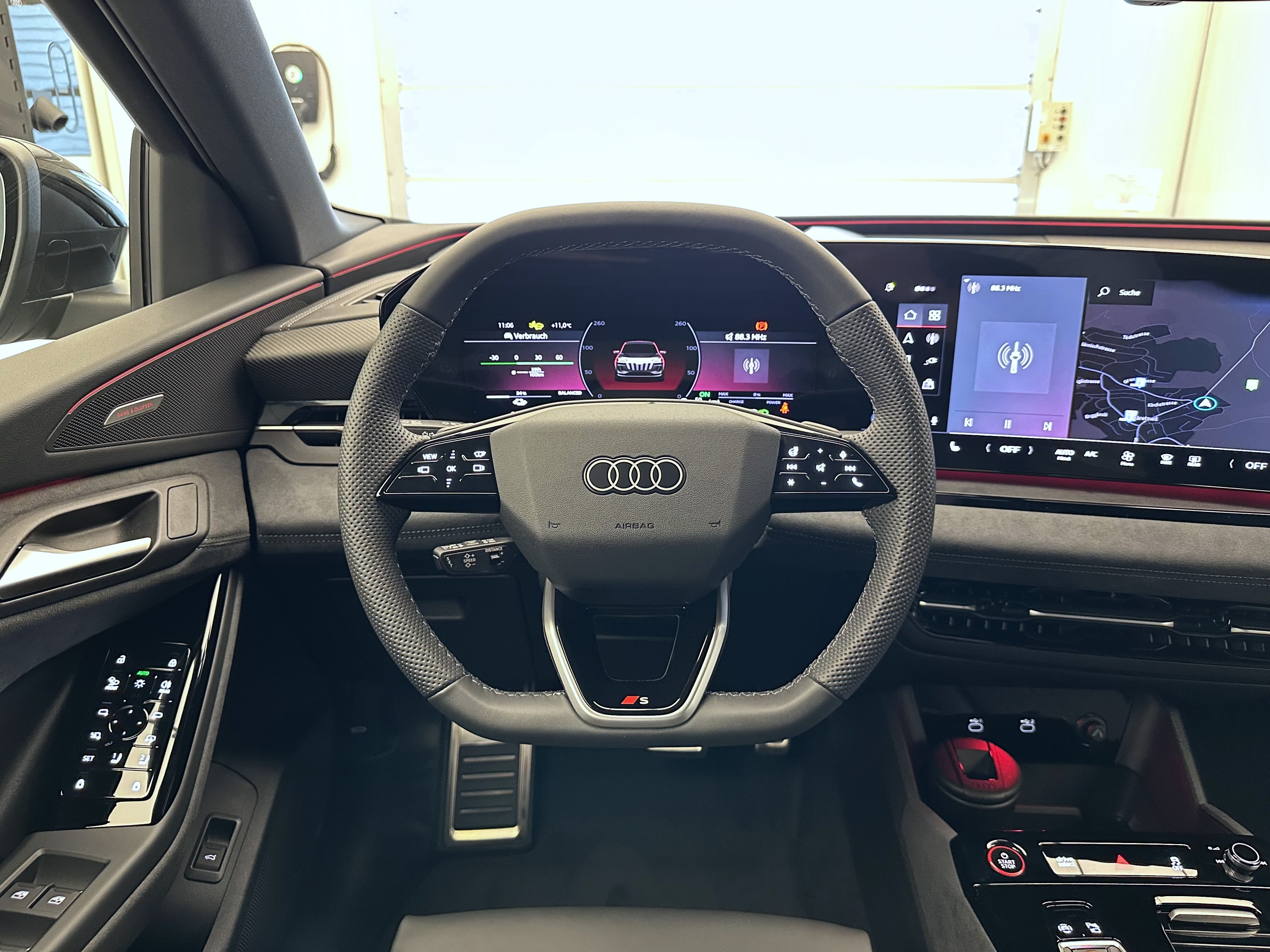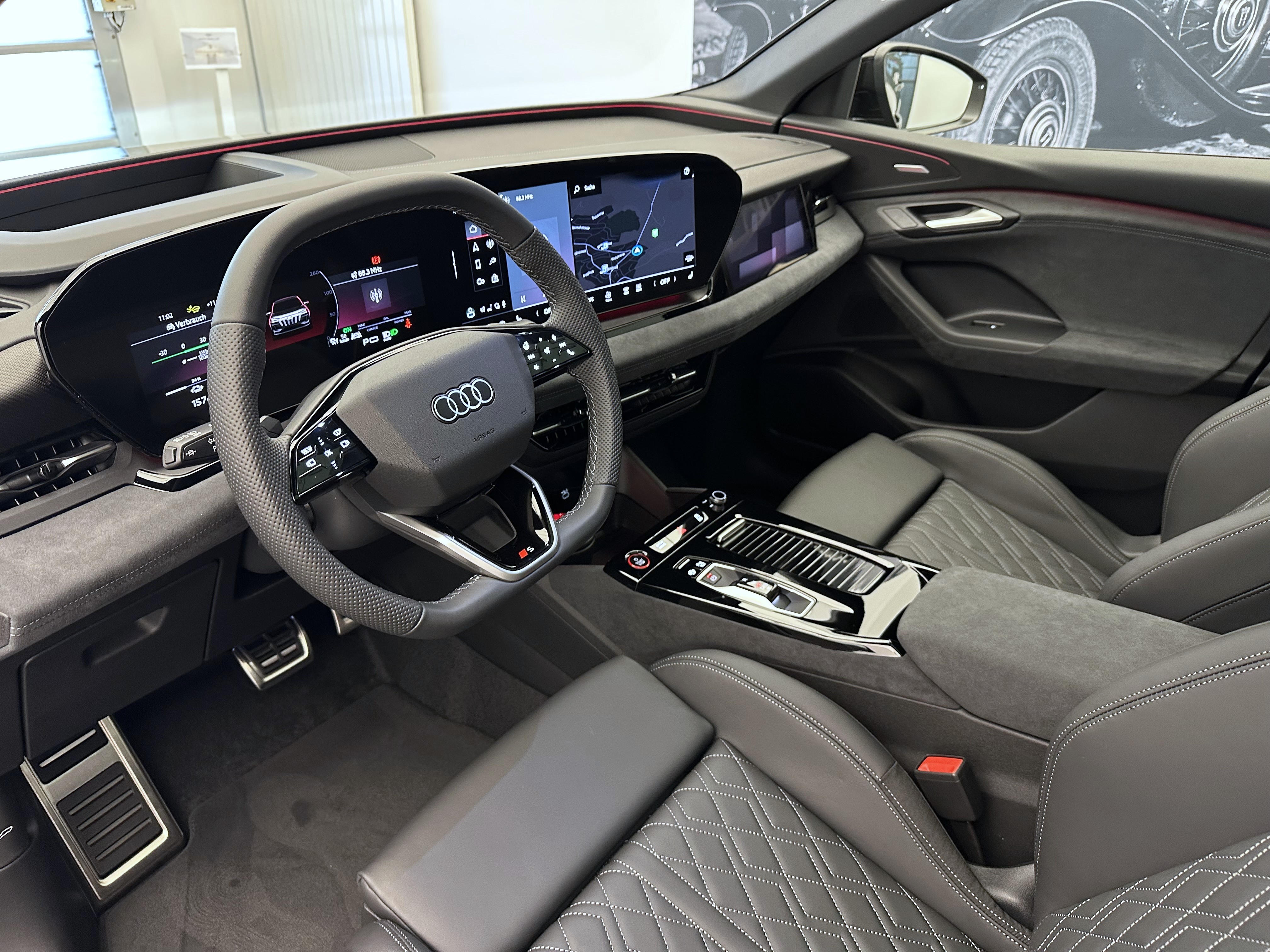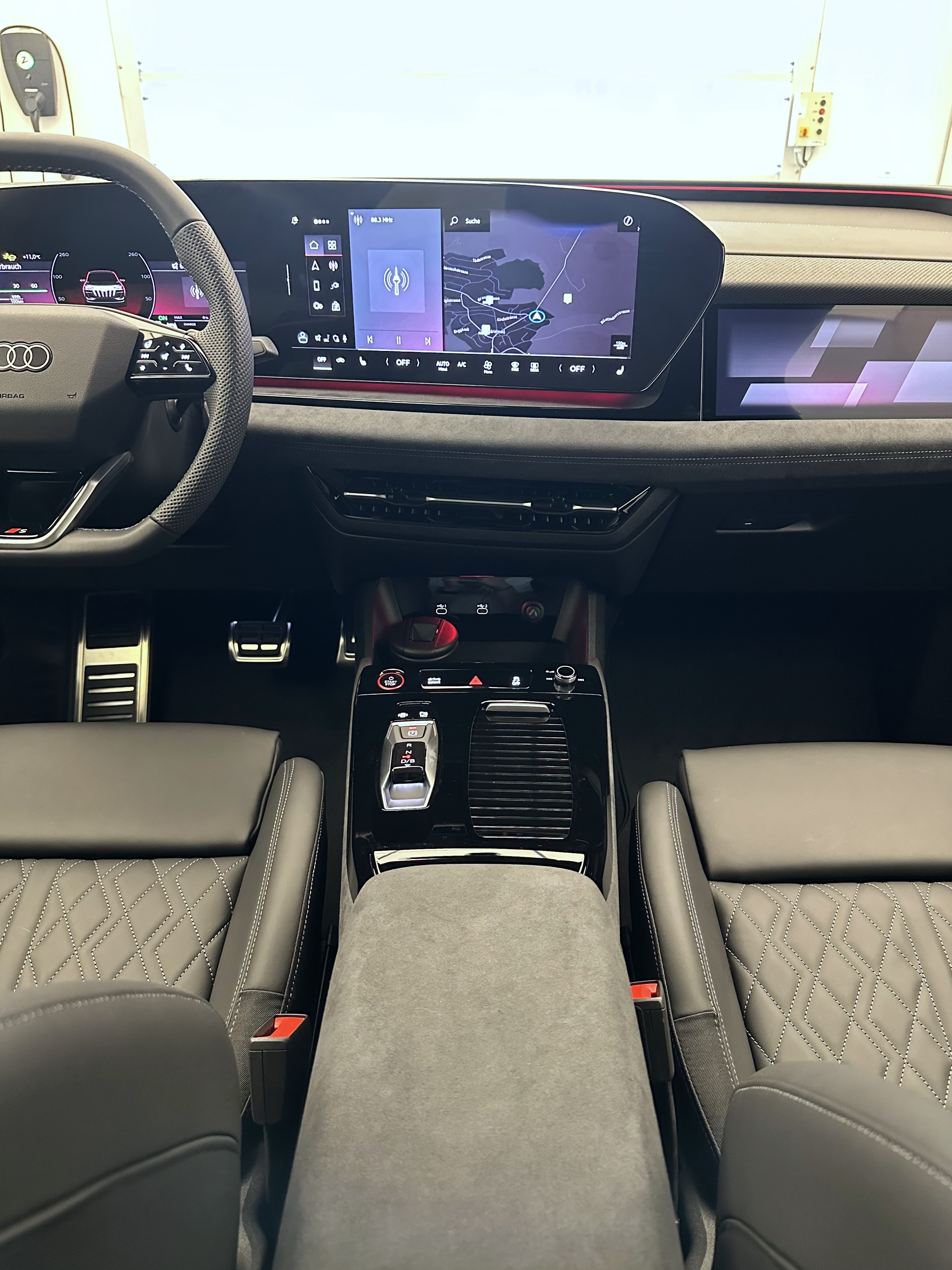 Airbag: Airbag Beifahrer deaktivierbar Airbag: Airbag Fahrer und Beifahrer Airbag: Seitenairbag vorn, mit Kopfairbag und Interaktionsairbag vorn Assist: Adaptiver Geschwindigkeitsassistent Assist: Aufmerksamkeits- und Müdigkeitserkennung Assist: Ausweichassistent und Abbiegeassistent Assist: Einparkhilfe plus mit Distanzanzeige Assist: Kamerabasierte Verkehrszeichenerkennung Assist: Kreuzungsassistent Assist: Notbremsassistent vorn Assist: Parkassistent plus Assist: Spurverlassenswarnung Assist: Spurwechsel- und Ausstiegswarnung, Querverkehrassistent hinten und Abbiegeassistent hinten Assist: Traktionskontrolle Assist: Verkehrszeichenbasierter Geschwindigkeitsbegrenzer Audi connect Notruf & Service mit Audi connect Remote & Control Audi virtual cockpit plus Aussenspiegel elektrisch einstell-, beheiz- und anklappbar, beidseitig automatisch abblendend Aussenspiegelgehäuse Chromoptik matt silber Elektrische Fensterheber vorne Elektronisches Stabilitäts-Programm (ESP) Fahrwerk: S-Sportfahrwerk Fensterzierleisten schwarz Fussmatten vorne und hinten Garantie: Audi Garantie 2 Jahre ohne Kilometerbegrenzung (ab 1. Inv.) Garantie: Audi Swiss Service Package + (ASSP+) Getriebe: Direktantrieb, kein Getriebe Innenspiegel automatisch abblendbar Klima: 3-Zonen-Klimatisierungsautomatik Klima: Automatische Umluftregelung Klima: Elektrische Luftzusatzheizung Komfortmittelarmlehne vorne Komfortschlüssel ohne Safelock Lackierung: Kontrastlackierung Lackierung: Uni-Lackierung Magnetgrau Ladekabel Mode 3 für öffentliches Laden bis 22 kW Ladeleistung bis 270 kW (DC) Lenkrad: Lenkrad längs- und höhenverstellbar Licht: Fernlicht-Assistent Licht: LED-Heckleuchten pro Licht: LED-Scheinwerfer plus Licht: Projektionsleuchte in den Aussenspiegeln Licht: Tagesfahrlicht mit Assistenzfahrlicht u.Coming- u. Leaving-home Funktion automatisch Media: Audi Application Store und Smartphone-Interface Media: Audi connect Navigation & Infotainment Media: Digitaler Radioempfang Media: FOD Funktionen online verfügbar Media: MMI experience plus Media: Telefonablage mit induktiver Ladefunktion Media: USB-Anschlüsse mit Ladefunktion in erster und zweiter Sitzreihe Modellkennzeichnung am Heck On-board-Ladegerät bis 11 kW (AC) Paket: Ambiente Lichtpaket Paket: Interieur S mit Sportsitzen, Leder/Kunstleder-Kombination schwarz Pedalerie und Fussstütze in Edelstahl Räder: Reifendruck-Kontrollanzeige Räder: Reifenreparatur-Set (Tire Fit) Räder: Räder, 5-Arm-Struktur, graphitgrau, glanzgedreht Scheiben seitlich und hinten in Wärmeschutzverglasung Scheinwerfer-Reinigungsanlage Sitze: Fahrersitz und Aussenspiegel mit Memoryfunktion Sitze: Kindersitzbefestigung i-Size auf der Beifahrerseite und i-Size und Top Tether Sitze: Rücksitzbank ungeteilt, Lehne geteilt umlegbar (dreiteilig) mit Mittelarmlehne Sitze: Vordersitze elektrisch verstellbar Sitze: Vordersitze heizbar Türen: Gepäckraumklappe elektrisch öffnend und schliessend Türgriffe aussen in Wagenfarbe Verbandmaterial,Warndreieck und Warnveste Vorbereitung für Anhängevorrichtung Vorbereitung für intelligente Ladefunktionen Wegfahrsperre elektronisch Wärmeschutz- und Akustikverglasung Frontscheibe Zentralverriegelung mit Fernbedienung