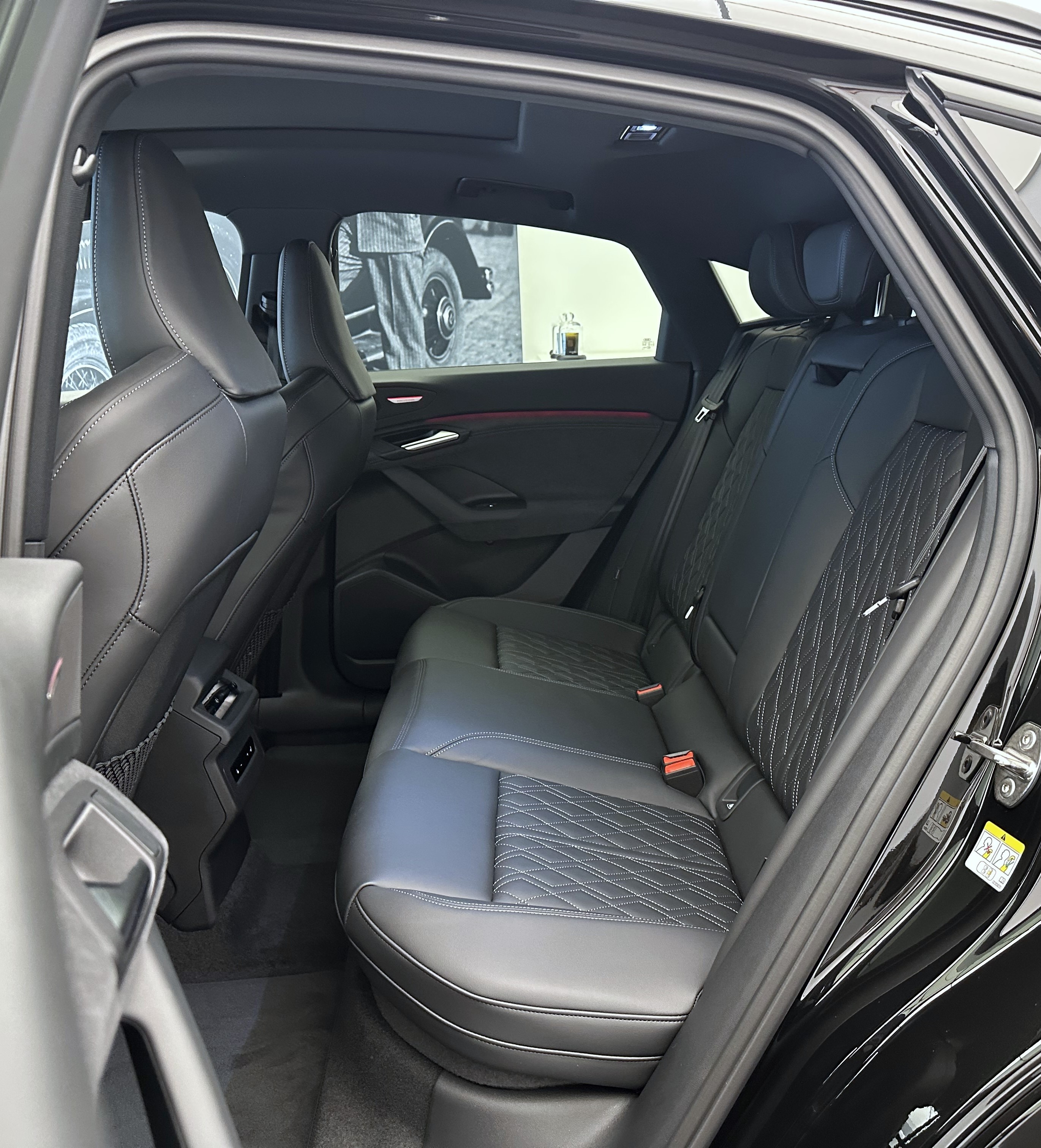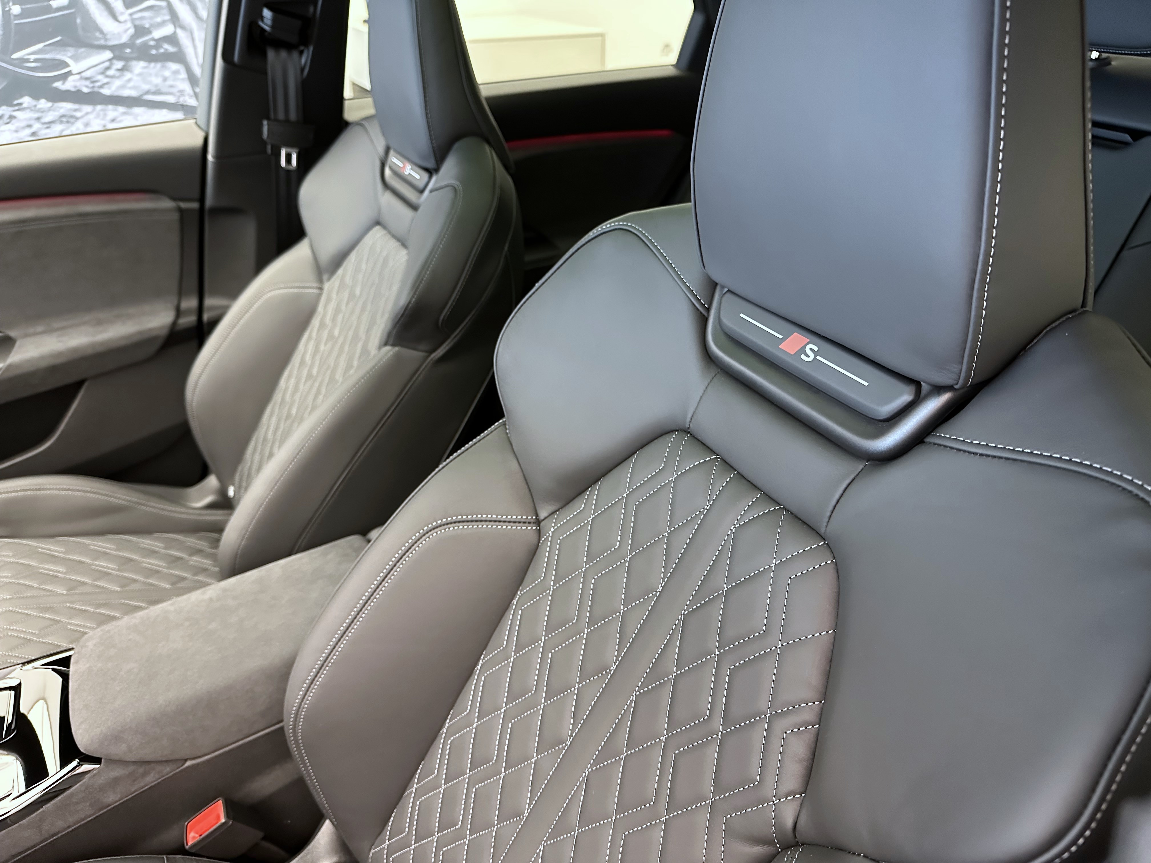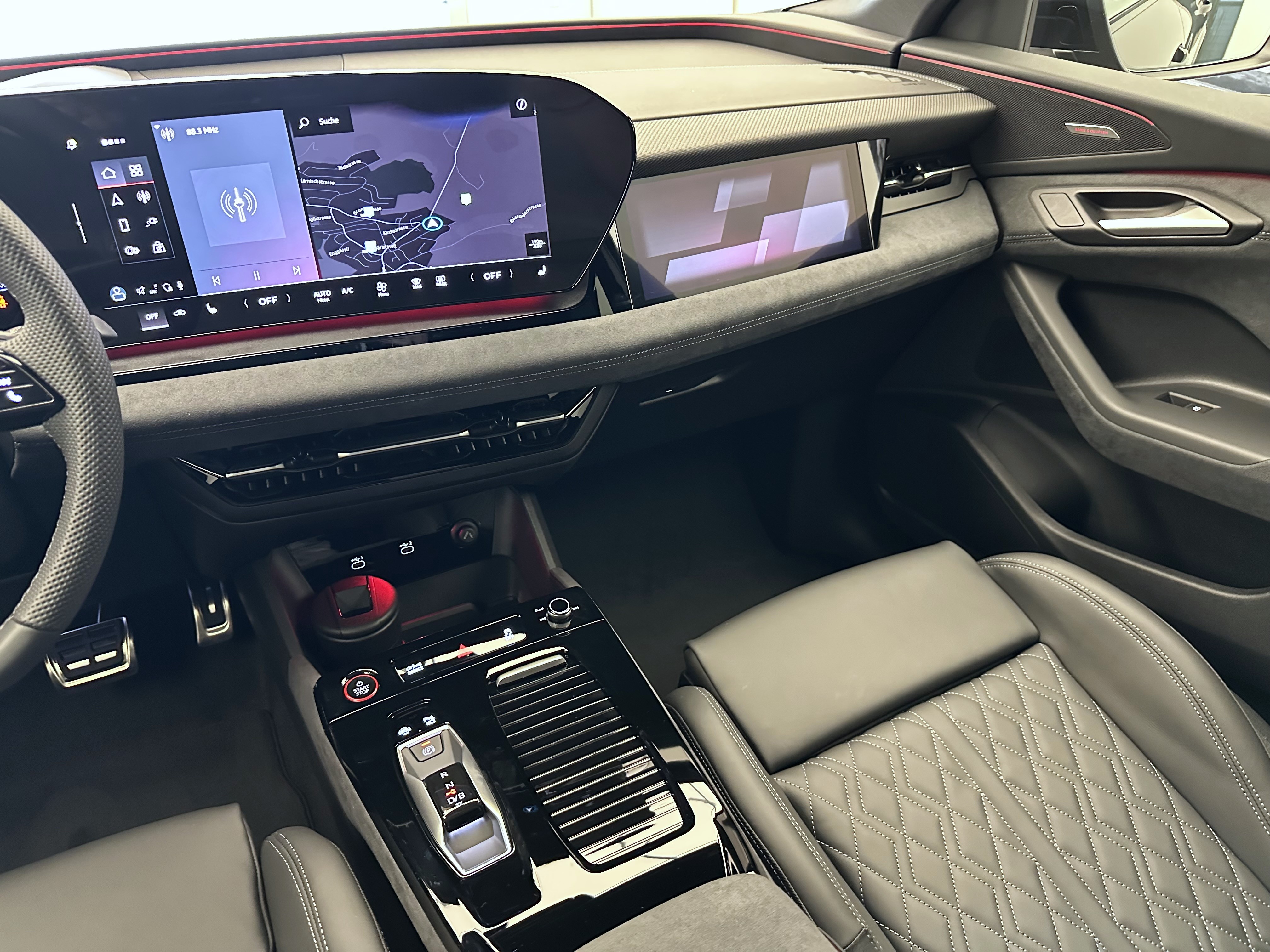 Airbag: Airbag Beifahrer deaktivierbar Airbag: Airbag Fahrer und Beifahrer Airbag: Seitenairbag vorn, mit Kopfairbag und Interaktionsairbag vorn Assist: Adaptiver Geschwindigkeitsassistent Assist: Aufmerksamkeits- und Müdigkeitserkennung Assist: Ausweichassistent und Abbiegeassistent Assist: Einparkhilfe plus mit Distanzanzeige Assist: Kamerabasierte Verkehrszeichenerkennung Assist: Kreuzungsassistent Assist: Notbremsassistent vorn Assist: Parkassistent plus Assist: Spurverlassenswarnung Assist: Spurwechsel- und Ausstiegswarnung, Querverkehrassistent hinten und Abbiegeassistent hinten Assist: Traktionskontrolle Assist: Verkehrszeichenbasierter Geschwindigkeitsbegrenzer Audi connect Notruf & Service mit Audi connect Remote & Control Audi virtual cockpit plus Aussenspiegel elektrisch einstell-, beheiz- und anklappbar, beidseitig automatisch abblendend Aussenspiegelgehäuse Chromoptik matt silber Elektrische Fensterheber vorne Elektronisches Stabilitäts-Programm (ESP) Fahrwerk: S-Sportfahrwerk Fensterzierleisten schwarz Fussmatten vorne und hinten Garantie: Audi Garantie 2 Jahre ohne Kilometerbegrenzung (ab 1. Inv.) Garantie: Audi Swiss Service Package + (ASSP+) Getriebe: Direktantrieb, kein Getriebe Innenspiegel automatisch abblendbar Klima: 3-Zonen-Klimatisierungsautomatik Klima: Automatische Umluftregelung Klima: Elektrische Luftzusatzheizung Komfortmittelarmlehne vorne Komfortschlüssel ohne Safelock Lackierung: Kontrastlackierung Lackierung: Uni-Lackierung Magnetgrau Ladekabel Mode 3 für öffentliches Laden bis 22 kW Ladeleistung bis 270 kW (DC) Lenkrad: Lenkrad längs- und höhenverstellbar Licht: Fernlicht-Assistent Licht: LED-Heckleuchten pro Licht: LED-Scheinwerfer plus Licht: Projektionsleuchte in den Aussenspiegeln Licht: Tagesfahrlicht mit Assistenzfahrlicht u.Coming- u. Leaving-home Funktion automatisch Media: Audi Application Store und Smartphone-Interface Media: Audi connect Navigation & Infotainment Media: Digitaler Radioempfang Media: FOD Funktionen online verfügbar Media: MMI experience plus Media: Telefonablage mit induktiver Ladefunktion Media: USB-Anschlüsse mit Ladefunktion in erster und zweiter Sitzreihe Modellkennzeichnung am Heck On-board-Ladegerät bis 11 kW (AC) Paket: Ambiente Lichtpaket Paket: Interieur S mit Sportsitzen, Leder/Kunstleder-Kombination schwarz Pedalerie und Fussstütze in Edelstahl Räder: Reifendruck-Kontrollanzeige Räder: Reifenreparatur-Set (Tire Fit) Räder: Räder, 5-Arm-Struktur, graphitgrau, glanzgedreht Scheiben seitlich und hinten in Wärmeschutzverglasung Scheinwerfer-Reinigungsanlage Sitze: Fahrersitz und Aussenspiegel mit Memoryfunktion Sitze: Kindersitzbefestigung i-Size auf der Beifahrerseite und i-Size und Top Tether Sitze: Rücksitzbank ungeteilt, Lehne geteilt umlegbar (dreiteilig) mit Mittelarmlehne Sitze: Vordersitze elektrisch verstellbar Sitze: Vordersitze heizbar Türen: Gepäckraumklappe elektrisch öffnend und schliessend Türgriffe aussen in Wagenfarbe Verbandmaterial,Warndreieck und Warnveste Vorbereitung für Anhängevorrichtung Vorbereitung für intelligente Ladefunktionen Wegfahrsperre elektronisch Wärmeschutz- und Akustikverglasung Frontscheibe Zentralverriegelung mit Fernbedienung
