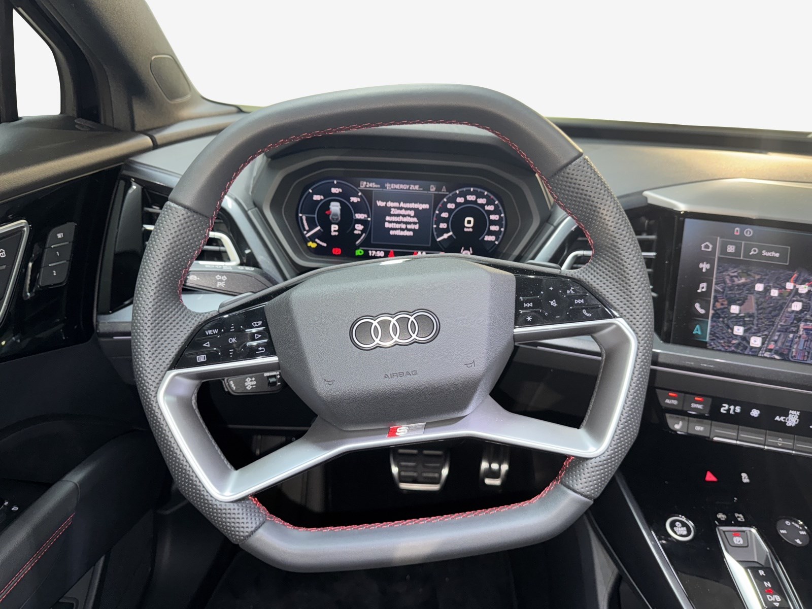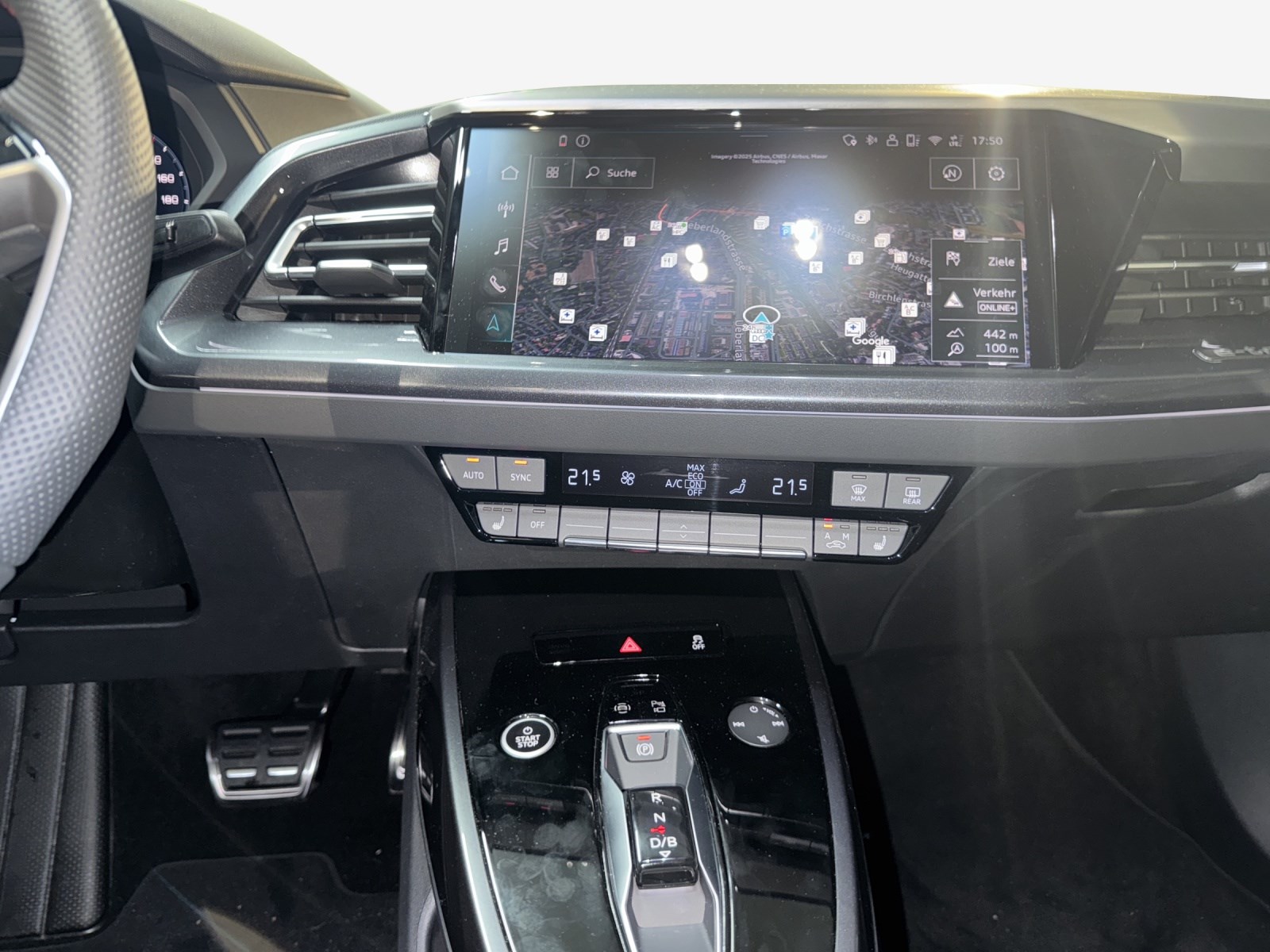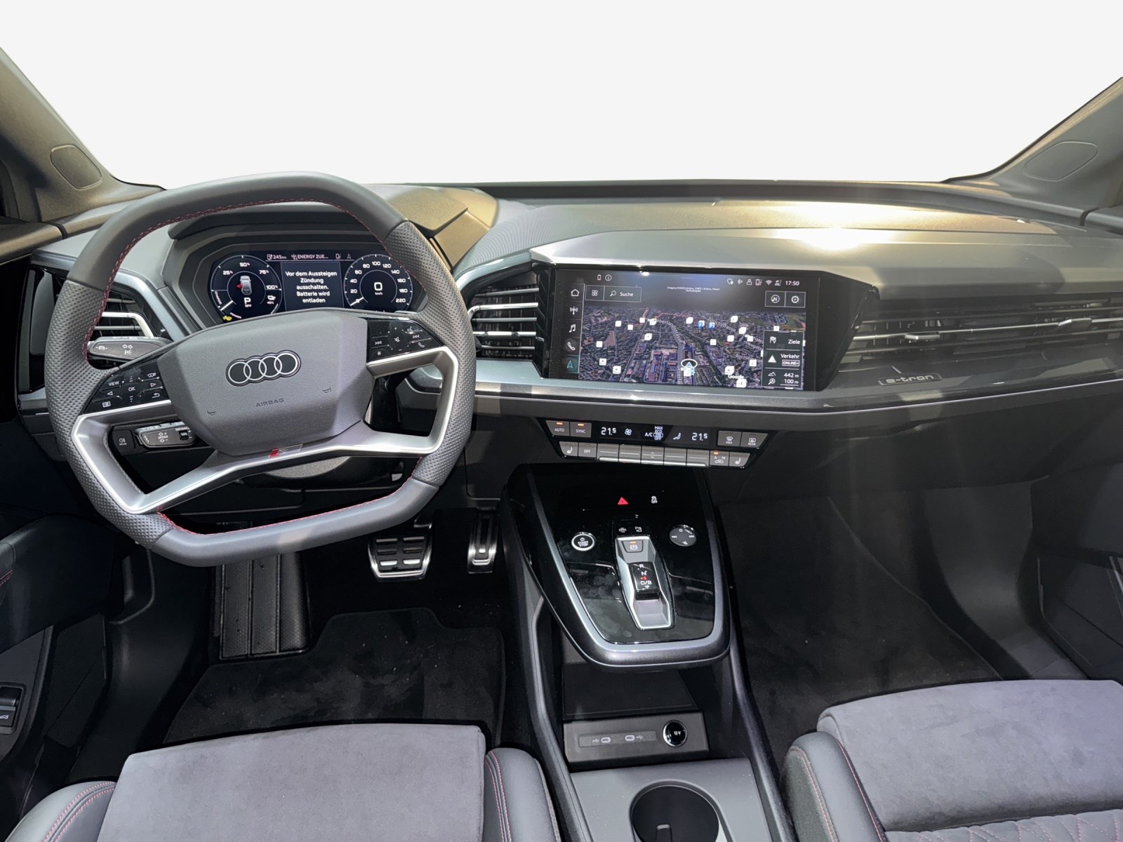 Entfall Leistungs- / Technologie-Schriftzug Farbnähte in Rot Audi Sport Gepäckraumklappe elektrisch mit sensorgesteuerter Gepäckraumentriegelung Industriestecker CEE 16A, 400V, lang und gerade für das e-tron Ladesystem Lackierung: Metallic-Lackierung Licht: Audi Matrix LED-Scheinwerfer Paket: Advanced Exterieur Paket: Infotainmentpaket Schweiz Paket: Interieur S line mit Sportsitzen in Mikrofaser Dinamica / Kunstleder-Kombination schwarz Paket: Klimatisierungspaket Paket: Komfortpaket Schweiz Paket: Optikpaket schwarz plus Räder: Leichtmetallräder, 5-W-Speichen-Aero, graphitgrau, glanzgedreht e-tron Ladesystem kompakt
