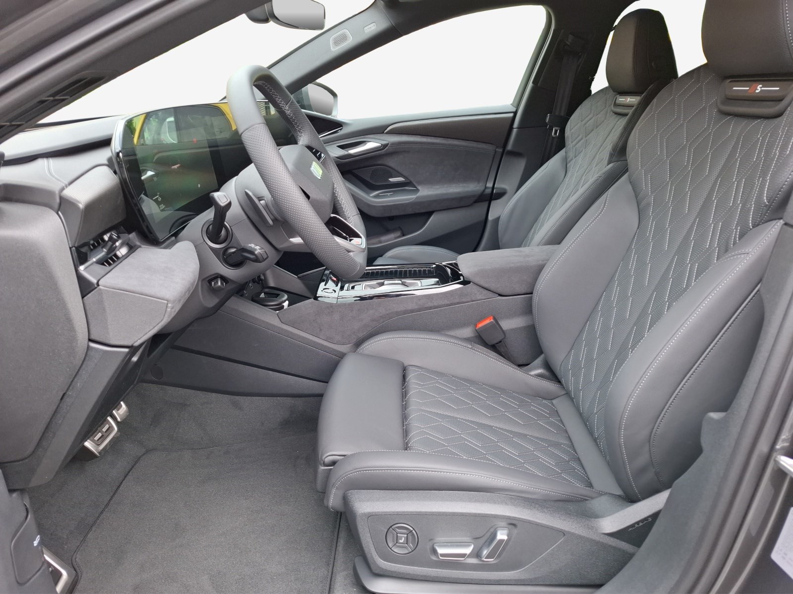 Airbag: Airbag Beifahrer deaktivierbar Airbag: Airbag Fahrer und Beifahrer Airbag: Seitenairbag vorn, mit Kopfairbag und Interaktionsairbag vorn Akustikverglasung Türscheiben vorn Akustisches Fahrzeug-Warnsystem Assist: Adaptiver Geschwindigkeitsassistent Assist: Aufmerksamkeits- und Müdigkeitserkennung Assist: Ausweichassistent und Abbiegeassistent Assist: Einparkhilfe plus mit Distanzanzeige Assist: Kamerabasierte Verkehrszeichenerkennung Assist: Kreuzungsassistent Assist: Notbremsassistent vorn Assist: Parkassistent plus Assist: Querverkehrassistent vorn Assist: Spurverlassenswarnung inkl. Notfallassistent Assist: Traktionskontrolle Assist: Verkehrszeichenbasierter Geschwindigkeitsbegrenzer Audi connect Notruf & Service mit Audi connect Remote & Control Audi virtual cockpit plus Aussenspiegel elektrisch einstell-, beheiz- und anklappbar, beidseitig automatisch abblendend Aussenspiegel in Wagenfarbe Dachhimmel Stoff, Farbe felsgrau Dekor: Dekoreinlage Aluminium matt gebürstet anthrazit Dekor: Instrumententafel-Oberseite schwarz mit Kontrastnaht Dekor: Interieurelemente oben und unten Kunstleder Einstiegsleisten mit Aluminiumeinlegern vorn Elektrische Fensterheber vorne Elektronisches Stabilitäts-Programm (ESP) Fahrwerk: Dynamikfahrwerk Fensterzierleisten Aluminiumoptik Fussmatten vorne und hinten Garantie: Audi Garantie 2 Jahre ohne Kilometerbegrenzung (ab 1. Inv.) Gepäckraumklappe elektrisch öffnend und schliessend Getriebe: Direktantrieb, kein Getriebe Innenspiegel automatisch abblendbar Interieur mit Normalsitzen, Stoff schwarz Klima: 3-Zonen-Klimatisierungsautomatik Klima: Automatische Umluftregelung Klima: Elektrische Luftzusatzheizung Komfortschlüssel ohne Safelock Lackierung: Uni-Lackierung Ladekabel Mode 3 für öffentliches Laden bis 22 kW Lenkrad: Doppelspeichen-Lederlenkrad mit Multifunktion Lenkrad: Lenkradapplikation Chromoptik Lenkrad: Lenkradeinstellung manuell Licht: LED-Scheinwerfer plus Licht: Projektionsleuchte in den Aussenspiegeln Licht: Tagesfahrlicht mit Assistenzfahrlicht u.Coming- u. Leaving-home Funktion automatisch Media: Audi Application Store und Smartphone-Interface Media: Audi connect Navigation & Infotainment Media: Digitaler Radioempfang Media: FOD Funktionen online verfügbar Media: MMI experience plus Media: USB-Schnittstellen mit erhöhter Ladeleistung Modellkennzeichnung am Heck On-board-Ladegerät bis 11 kW (AC) Paket: Ambiente Lichtpaket Paket: Assistenzpaket Fahren und Parken Räder: Reifendruck-Kontrollanzeige Räder: Reifenreparatur-Set (Tire Fit) Räder: Räder, 5-Arm-Dynamik, platingrau Scheinwerfer-Reinigungsanlage Schlüssel für Schliesssystem mit Fernbedienung Sitze: 4-Wege-Lendenwirbelstütze für die Vordersitze Sitze: Kindersitzbefestigung i-Size auf der Beifahrerseite und i-Size und Top Tether Sitze: Rücksitzbank ungeteilt, Lehne geteilt umlegbar (dreiteilig) mit Mittelarmlehne Sitze: Vordersitze heizbar Sitze: Vordersitze manuell einstellbar Telefonablage mit induktiver Ladefunktion Türen: Türgriffe in Wagenfarbe Verbandmaterial,Warndreieck und Warnveste Vorbereitung für Anhängevorrichtung Vorbereitung für intelligente Ladefunktionen Wegfahrsperre elektronisch Wärmeschutz- und Akustikverglasung Frontscheibe Zentralverriegelung mit Fernbedienung