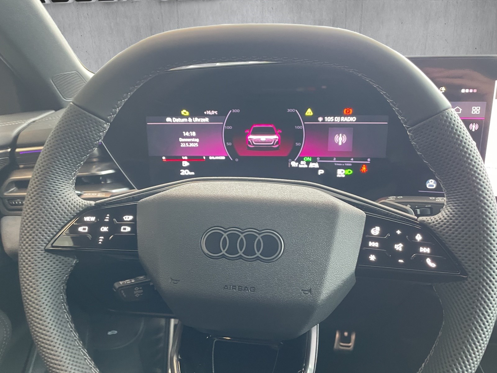 Sonderausstattung Akustikverglasung für Türscheiben vorn Assist: Spurverlassenswarnung inkl. Notfallassistent Dekor: Dekoreinlagen Aluminium matt gebürstet mit Linearprägung anthrazit Dekor: Interieurapplikationen Vanadiumoptik Entfall Modellbezeichnung Fahrwerk: Bremssättel rot lackiert Fahrwerk: S-Sportfahrwerk Garantie: Audi Garantie: 5 Jahre oder 100'000 km (ab 1. Inv.) Interieur S mit Sportsitzen plus, Leder schwarz Interieur mit Sportsitzen, Stoff schwarz Klima: Ohne Wärmespeicher/Zusatzheizung Klima: Standheizung und -lüftung Komfortschlüssel ohne Safelock Licht: Einstiegs-LED mit Logoprojektion vorn Media: Bang & Olufsen Premium Soundsystem mit 3D-Klang und Kopfstützenlautsprechern Paket: Ambiente Lichtpaket pro Paket: Exterieur Optikpaket schwarz Paket: Exterieur S line mit Normalfahrwerk Paket: MMI experience pro Paket: Paket Premium business Räder: Räder, 5-Doppel-V-Speichen, graphitgrau, glanzgedreht Sitze: Vordersitze elektrisch verstellbar Sonnenschutzverglasung, abgedunkelt