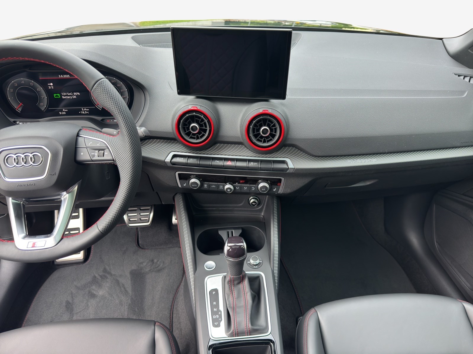 3-Punkt-Sicherheitsgurte auf allen Plätzen Airbag: Airbag für Fahrer und Beifahrer mit Beifahrer-Airbag-Deaktivierung Airbag: Seitenairbags vorn und Kopfairbagsystem Assist: Geschwindigkeitsbegrenzer Aussenspiegel elektrisch einstell- und beheizbar Aussenspiegel in Wagenfarbe Bremsbelag-Verschleissanzeige Dekor: Dekoreinlagen Diamantlack silbergrau Einstiegsleisten mit Aluminiumeinlagen, vorne, beleuchtet, mit S-Schriftzug Elektronische Stabilisierungskontrolle (ESC) Elektronisches Stabilitäts-Programm (ESP) Frontscheibe mit grauem Colorstreifen Funkschlüssel, ohne Safelock Fussmatten vorne und hinten Garantie: 2 Jahre ohne Kilometerbegrenzung (ab 1. Inv.) Gepäckraumklappe (manuell) Getriebe: 7-Gang- Automat S tronic Heckscheiben-Wisch-/Waschanlage Klima: Elektrische Luftzusatzheizung Klima: Manuelle Klimaanlage Lackierung: Uni-Lackierung Lenkrad: Lederlenkrad im 3-Speichen-Design mit Multifunktion plus Licht: Drittes Bremslicht Licht: Nebelschlussleuchte Media: 4 Lautsprecher vorne Media: Audi Smartphone Interface Media: Audi connect Remote & Control Media: Audi music interface Media: Bluetooth-Schnittstelle Media: Digitaler Radioempfang Modellkennzeichnung gemäss neuer Leistungskennzeichnung Parkbremse, elektromechanisch Räder: Leichtmetallräder, 5-Arm-Stern Räder: Reifendruck-Kontrollanzeige Räder: Reifenreparatur-Set (Tire Fit) Sitze: Fahrersitz manuell höheneinstellbar Sitze: ISOFIX und Top Tether für Fondsitze aussen Sitze: Kopfstützen hinten (3 Stück) Sitze: Rücksitzlehne umklappbar Stossfänger S line in Volllackierung Verbandmaterial und Warndreieck Wegfahrsperre elektronisch