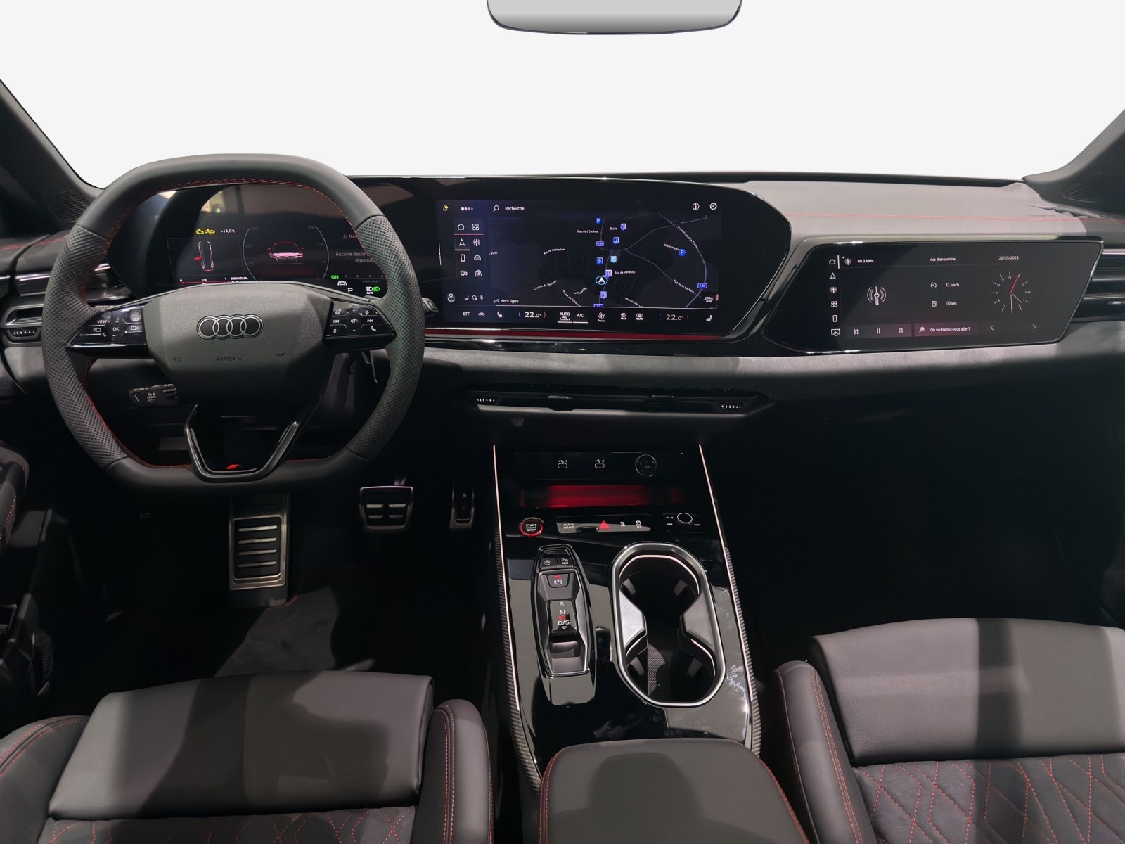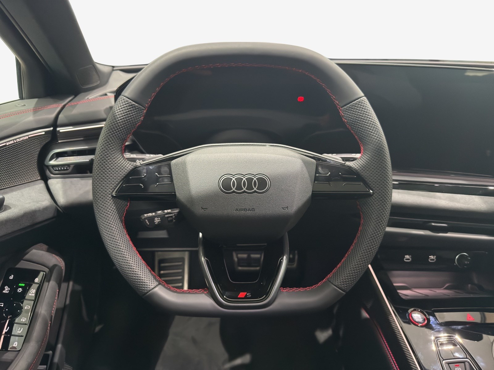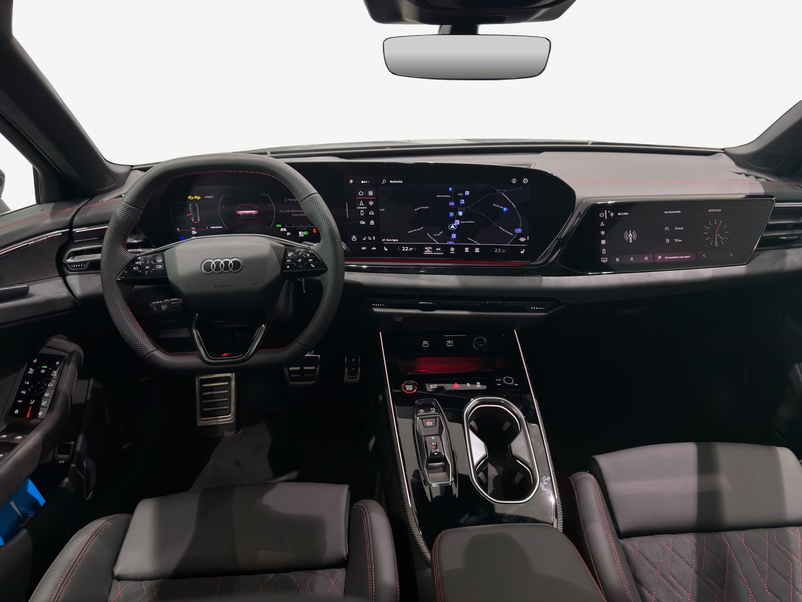 Assist: Assistant de conduite adaptatif plus Assist: Avertissement d’abandon de voie avec assistant d’urgence inclus Attelage pour remorque orientable mécaniquement Boulons de roues avec antivol Clima: Chauffage et ventilation auxiliaires Decór: Partie supérieure du tableau de bord noire avec coutures contrastées Lumière: Éclairage de seuil à LED avec projection du logo à l’avant Media: Sound-Système Premium Bang & Olufsen Mèdias: Prise en charge LTE pour la cabine téléphonique Audi Pack: Pack Premium Experience Roues: Jantes Audi Sport, design multibranches en S, noir métallisé, or néodyme mat, Roues: Jantes, 5 branches, gris Platine Sièges: Sièges AV à réglage électrique Suspension: Châssis Sport S Suspension: Direction intégrale Suspension: adaptive air suspension Suspension: Étriers de frein peints en rouge Toit panoramique vitré avec transparence commutable Vitrage acoustique pour les vitres latérales et les vitres des portes Vitrage de contrôle solaire, obscurci