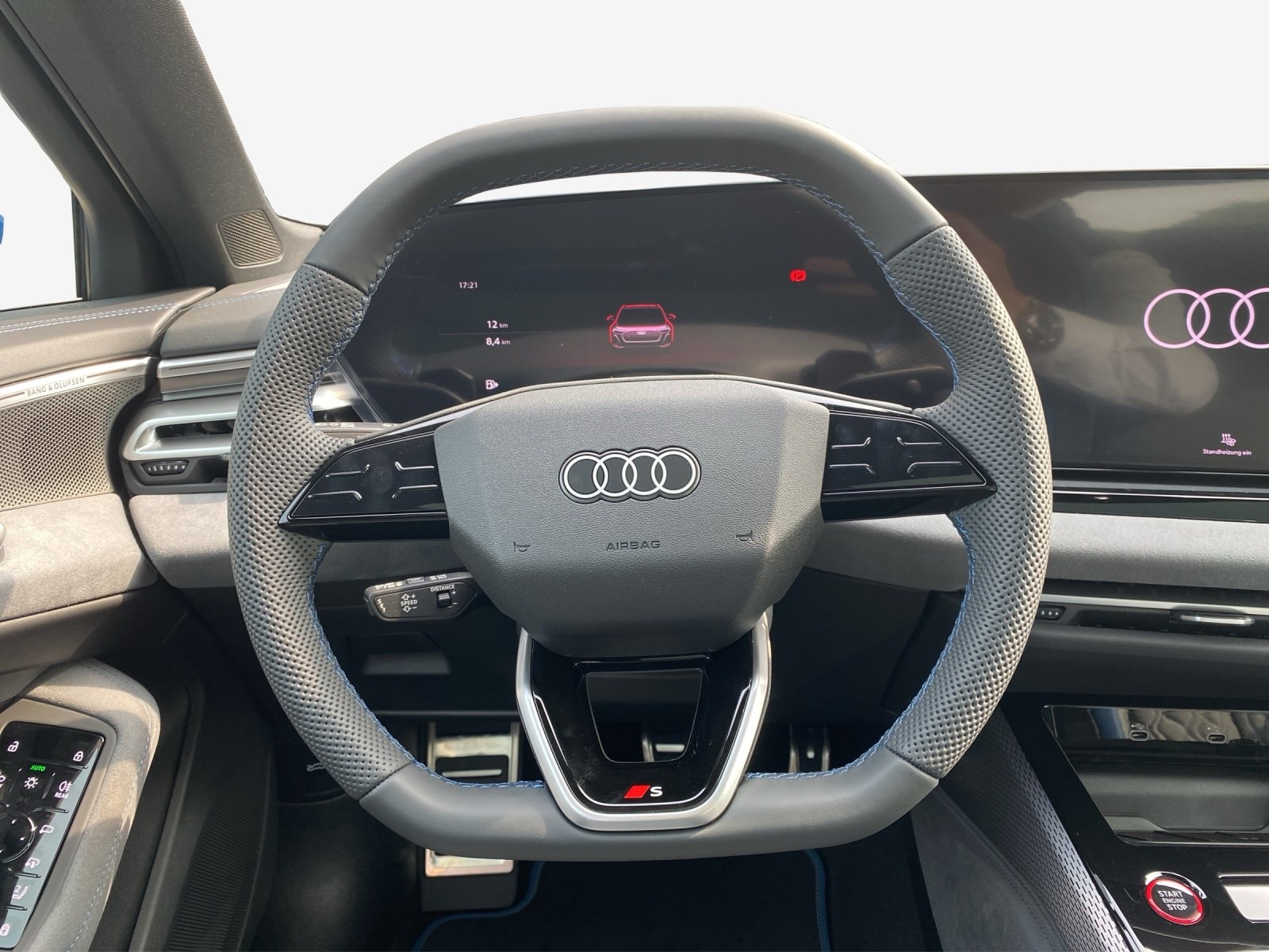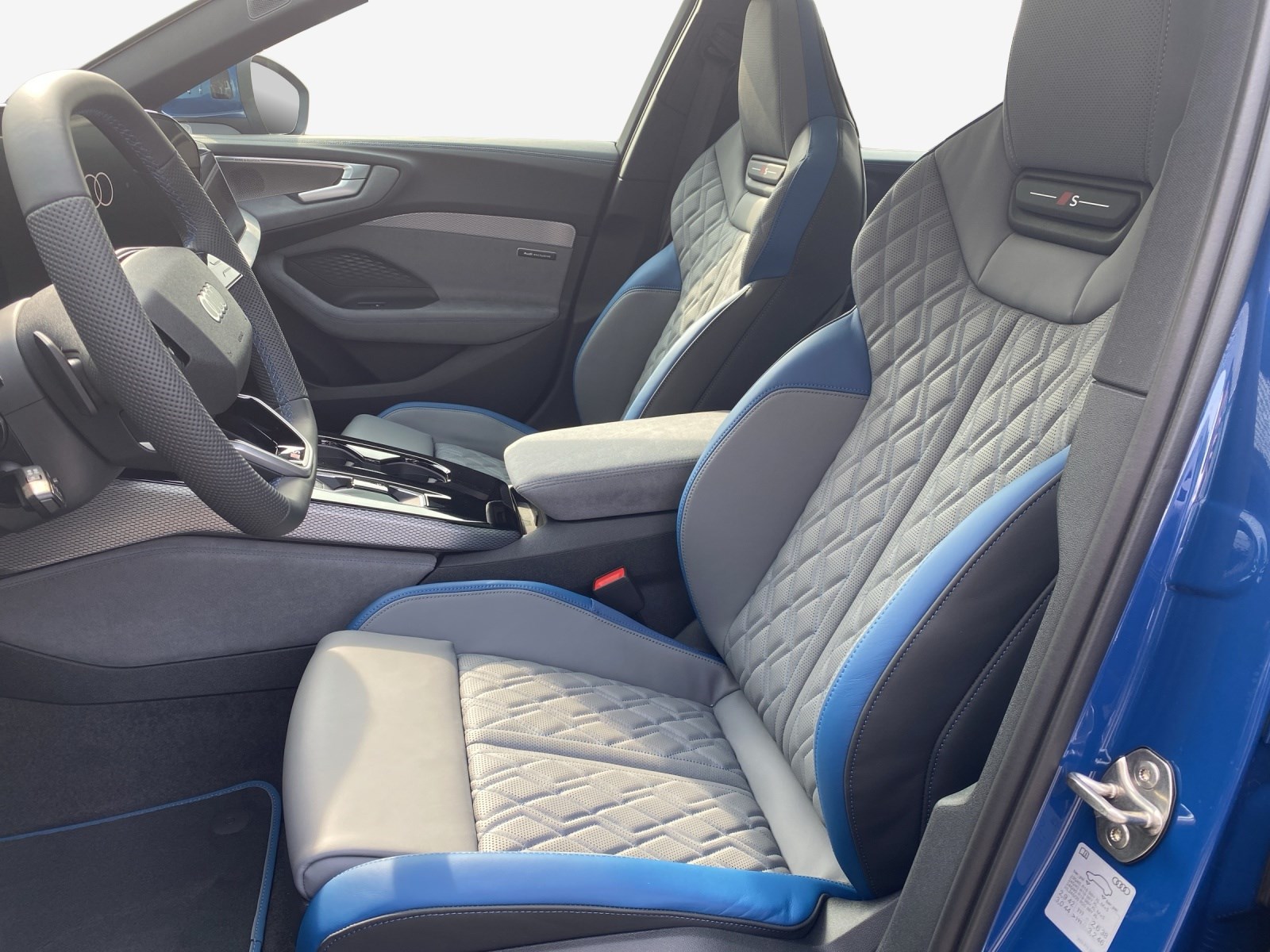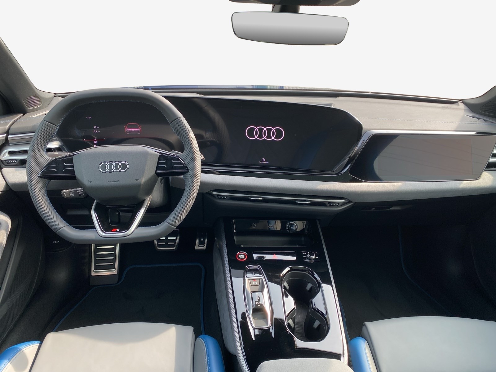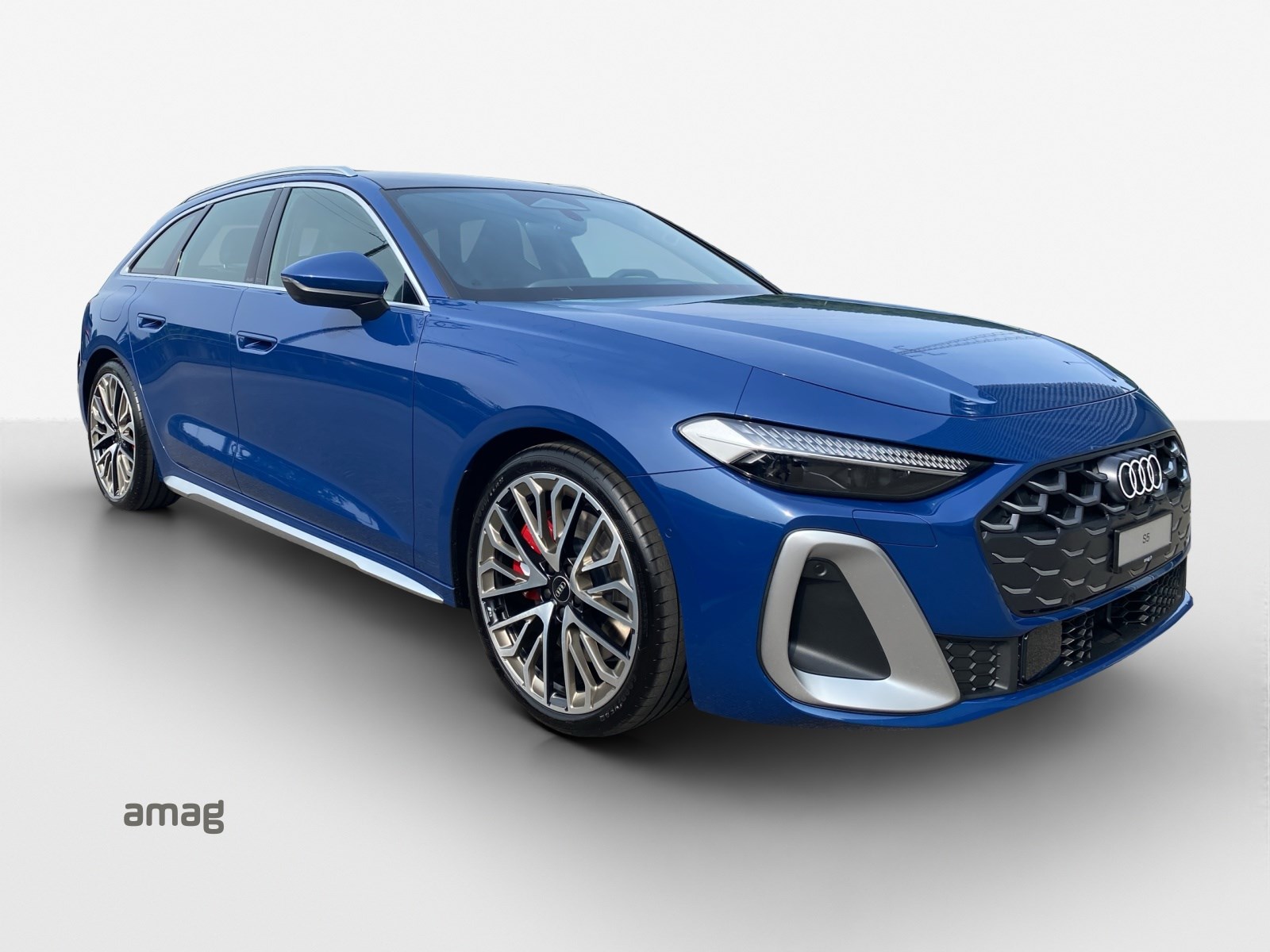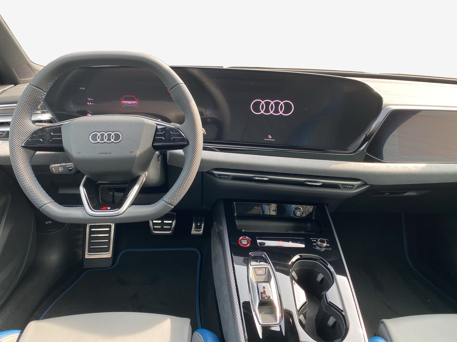 Akustikverglasung für Türscheiben vorn Assist: Adaptiver Fahrassistent plus Assist: Spurverlassenswarnung inkl. Notfallassistent Assist: Spurwechsel- und Ausstiegswarnung, Querverkehrassistent hinten und Abbiegeassistent hinten Aussenspiegel in Wagenfarbe Dekor: Bedienelemente schwarz mit Kontrastnaht Audi exclusive Entfall Modellbezeichnung Fahrwerk: Bremssättel rot lackiert Fussmatten Audi exclusive Insassenerkennung im Fond Klima: Standheizung und -lüftung Lackierung: Metallic-Lackierung Ascariblau Metallic Media: LTE-Unterstützung für Audi phone box Paket: Ambiente Lichtpaket pro Paket: Interieur S mit Sportsitzen plus, Leder jetgrau-ozeanblau Paket: MMI experience pro Paket: Paket Premium experience S5 Panorama-Glasdach mit schaltbarer Transparenz Räder: Räder Audi Sport, Vielspeichen-S, schwarz metallic, neodymgold matt, glanzgedreht Sitze: Fahrersitz und Aussenspiegel mit Memoryfunktion