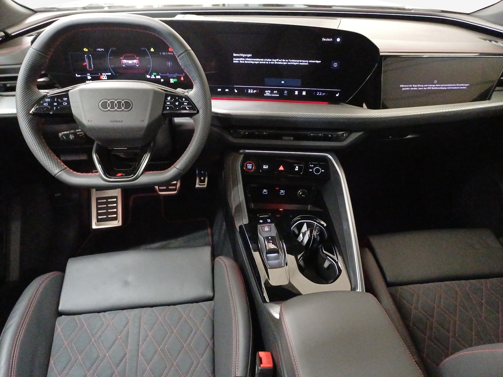 Assist: Adaptiver Fahrassistent plus Dekor: Dekoreinlagen Aluminium matt gebürstet mit Linearprägung anthrazit Dekor: Interieurapplikationen Vanadiumoptik Fahrwerk: Bremssättel, farbig Farbnähte in Rot Audi Sport Komfortschlüssel ohne Safelock Lackierung: Perleffekt-Lackierung Lackierung: Volllackierung Paket: Ablage- und Gepäckraumpaket Paket: Ambiente Lichtpaket plus Paket: Interieur mit Sportsitzen, Stoff schwarz Paket: MMI experience pro Paket: Paket Premium business Räder: Räder Audi Sport, 5-Doppelspeichen-Y, grau seidenmatt, glanzgedreht Sitze: Fahrersitz und Aussenspiegel mit Memoryfunktion Sitze: Vordersitze elektrisch verstellbar Sonnenschutzverglasung, abgedunkelt