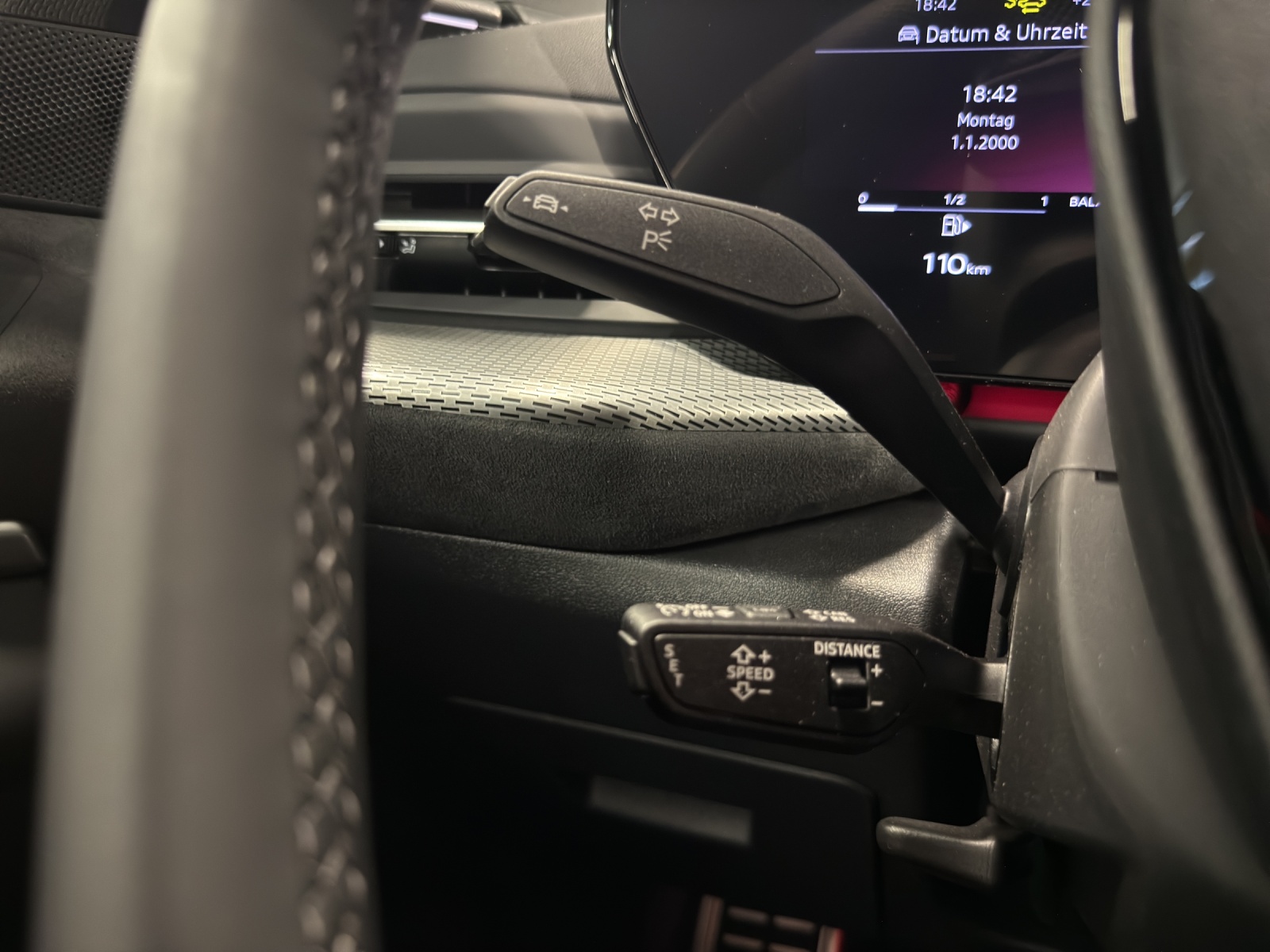 Airbag: Airbag für Fahrer und Beifahrer mit Beifahrer-Airbag-Deaktivierung Airbag: Seitenairbags vorn, mit Kopfairbag und Interaktionsairbag vorn Akustisches Fahrzeug-Warnsystem Assist: Ablenkungs- und Müdigkeitserkennung Assist: Ausweichassistent und Abbiegeassistent Assist: Kamerabasierte Verkehrszeichenerkennung Assist: Notbremsassistent vorn Assist: Querverkehrassistent vorn Assist: Traktionskontrolle Assist: Verkehrszeichenbasierter Geschwindigkeitsbegrenzer Audi connect Notruf & Service mit Audi connect Remote & Control Audi virtual cockpit plus Aussenspiegel in Wagenfarbe Dachhimmel Stoff, Farbe felsgrau Dekor: Akzentflächen und Bedientasten schwarz matt Dekor: Aluminiumoptik im Interieur Dekor: Dekoreinlagen Laserstruktur schwarz Dekor: Interieurelemente oben Stoff Impressum Einstiegsleisten mit Aluminiumeinlegern vorn Elektrische Fensterheber vorne Elektronisches Stabilitäts-Programm (ESP) Fahrwerk: Komfortfahrwerk Fensterzierleisten Aluminiumoptik Frontscheibe in Wärmeschutz- und Akustikverglasung Funkschlüssel, ohne Safelock Fussmatten vorne und hinten Garantie: 3 Jahre oder 100'000 km Getriebe: 7-Gang- Automat S tronic Lackierung: Uni-Lackierung Lenkrad: Doppelspeichen-Lederlenkrad mit Multifunktion und Schaltwippen Lenkrad: Lenkradapplikation Chromoptik Licht: Tagesfahrlicht mit Assistenzfahrlicht u.Coming- u. Leaving-home Funktion automatisch Media: Audi connect Navigation & Infotainment Media: Audi phone box light Media: Digitaler Radioempfang Media: USB-Anschlüsse mit Ladefunktion in erster und zweiter Sitzreihe Modellbezeichnung am Heck Räder: Reifendruck-Kontrollanzeige Räder: Reifenreparatur-Set (Tire Fit) Räder: Räder, 10-Speichen Scheiben seitlich und hinten in Wärmeschutzverglasung Servolenkung Elektromechanisch Sitze: Kindersitzbefestigung i-Size auf der Beifahrerseite und i-Size und Top Tether Sitze: Vordersitze manuell einstellbar Türen: Komfortöffnung Gepäckraumklappe Verbandmaterial,Warndreieck und Warnveste Wegfahrsperre elektronisch Zentralverriegelung mit Fernbedienung