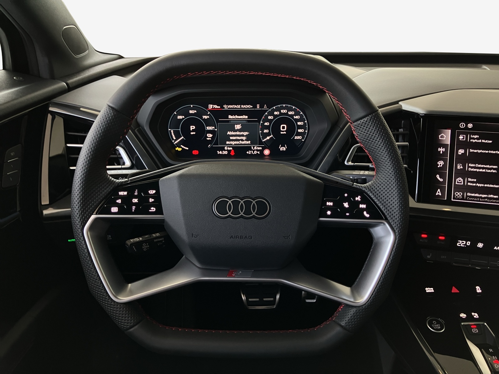 3-Punkt-Sicherheitsgurte auf allen Plätzen Airbag: Airbag für Fahrer und Beifahrer mit Beifahrer-Airbag-Deaktivierung Airbag: Seitenairbags vorn, mit Kopfairbag und Interaktionsairbag vorn Assist: Ablenkungs- und Müdigkeitserkennung Assist: Geschwindigkeitsregelanlage FOD: ACC möglich Assist: Geschwindigkeitsregelanlage mit einstellbarem Geschwindigkeitsbegrenzer Assist: Kamerabasierte Verkehrszeichenerkennung Assist: Proaktiver Insassenschutz Front, Seite und Heck Assist: Speedlimiter mit Intelligent Speed Assist Aussenspiegel in Wagenfarbe Bottom line rundum in genarbter Optik Elektronisches Stabilitäts-Programm (ESP) Fahrwerk: Komfortfahrwerk Funkschlüssel, ohne Safelock Garantie: 2 Jahre ohne Kilometerbegrenzung (ab 1. Inv.) Gepäckraumklappe ohne sensorgesteuerte Gepäckraumentriegelung Getriebe: Direktantrieb, kein Getriebe Komfortmittelarmlehne vorne Lackierung: Uni-Lackierung Ladekabel Mode 3 Typ 2 32A Licht: Audi Matrix LED-Scheinwerfer Licht: Drittes Bremslicht Licht: Nebelschlussleuchte Media: Digitaler Radioempfang (DAB) Modellbezeichnung Technologieschriftzug Performance Typenzeichen Paket: Glanzpaket mit horizontalen Fensterzierleisten in eloxiertem Aluminium Paket: Infotainmentpaket Schweiz Paket: Interieur S line mit Sportsitzen in Mikrofaser Dinamica / Kunstleder-Kombination schwarz Paket: Komfortpaket Schweiz Räder: Leichtmetallräder, 5-W-Speichen-Aero, graphitgrau, glanzgedreht Räder: Reifendruck-Kontrollanzeige Räder: Reifenreparatur-Set (Tire Fit) Sitze: Kindersitzbefestigung i-Size auf der Beifahrerseite und i-Size und Top Tether Sitze: Vordersitze heizbar Sitze: Vordersitze manuell einstellbar Stossfänger advanced mit Bottom line rundum in Kontrastlackierung Manhattangrau Metallic Verbandmaterial,Warndreieck und Warnveste Wegfahrsperre elektronisch Wärmeschutzverglasung grün getönt Zentralverriegelung mit Fernbedienung ohne Dacheinsatz (Volldach) ohne Ladekabel (Industriestecker) ohne Scheinwerferreinigungsanlage