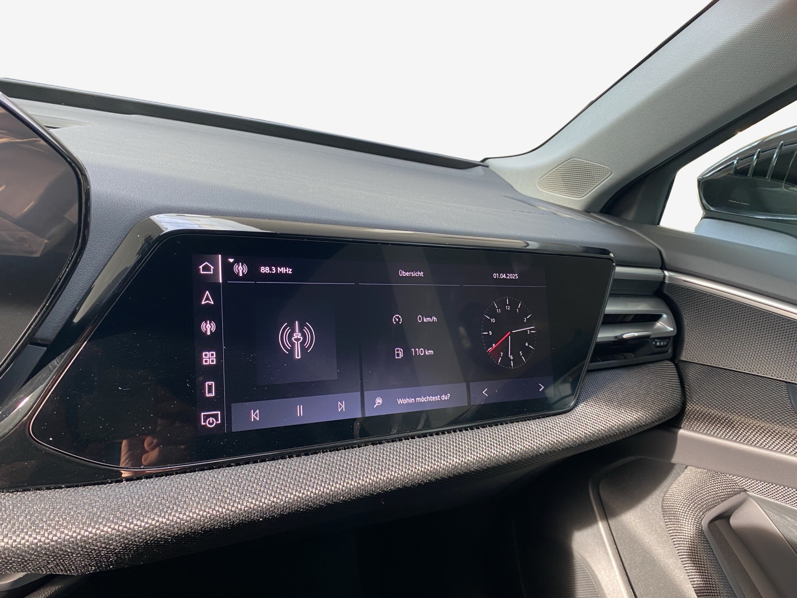Airbag: Airbag Fahrer und Beifahrer Airbag: Seitenairbags vorn, mit Kopfairbag und Interaktionsairbag vorn Akustisches Fahrzeug-Warnsystem Assist: Ablenkungs- und Müdigkeitserkennung Assist: Adaptiver Geschwindigkeitsassistent Assist: Ausweichassistent und Abbiegeassistent Assist: Einparkhilfe plus mit Distanzanzeige Assist: Kamerabasierte Verkehrszeichenerkennung Assist: Kreuzungsassistent Assist: Notbremsassistent vorn Assist: Parkassistent plus Assist: Spurverlassenswarnung Assist: Traktionskontrolle Assist: Verkehrszeichenbasierter Geschwindigkeitsbegrenzer Audi connect Notruf & Service mit Audi connect Remote & Control Audi virtual cockpit plus Aussenspiegel Fahrerseite asphärisch, Beifahrerseite asphärisch Aussenspiegel elektrisch einstell-, beheiz- und anklappbar, beidseitig automatisch abblendend Aussenspiegel in Wagenfarbe Dachhimmel in Stoff in spezifischer Farbe Dekor: Akzentflächen und Bedientasten schwarz matt Dekor: Aluminiumoptik im Interieur Dekor: Dekoreinlagen Laserstruktur schwarz Dekor: Interieurelemente umlaufend Stoff Impressum Einstiegsleisten mit Aluminiumeinlegern vorn Elektrische Fensterheber vorne Elektronisches Stabilitäts-Programm (ESP) Fahrwerk: Standardfahrwerk Fensterzierleisten Aluminiumoptik Frontscheibe in Wärmeschutz- und Akustikverglasung Funkschlüssel, ohne Safelock Fussmatten vorne und hinten Garantie: Audi Garantie 2 Jahre ohne Kilometerbegrenzung (ab 1. Inv.) Getriebe: 7-Stufen Automatisiertes Schaltgetriebe Innenspiegel automatisch abblendbar Kindersicherung, elektrisch Klima: 3-Zonen-Klimatisierungsautomatik Lackierung: Uni-Lackierung Lenkrad: Doppelspeichen-Lederlenkrad mit Multifunktion und Schaltwippen Lenkrad: Lenkradapplikation Chromoptik Lenkrad: Lenkradeinstellung manuell Licht: Fernlicht-Assistent Licht: LED-Heckleuchten pro Licht: LED-Scheinwerfer plus Licht: Tagesfahrlicht mit Assistenzfahrlicht u.Coming- u. Leaving-home Funktion automatisch Media: Audi Application Store und Smartphone-Interface Media: Audi connect Navigation & Infotainment Media: Digitaler Radioempfang Media: FOD Funktionen online verfügbar Media: MMI experience plus Media: Navigationsgerät-High Media: USB-Anschlüsse mit Ladefunktion in erster und zweiter Sitzreihe Modellbezeichnung am Heck Paket: Klimatisierungspaket Räder: Radschrauben Standard Räder: Reifendruck-Kontrollanzeige Räder: Reifenreparatur-Set (Tire Fit) Räder: Räder, 5-Doppelspeichen Scheiben seitlich und hinten in Wärmeschutzverglasung Schlüssel für Schliesssystem mit Fernbedienung Sitze: Kindersitzbefestigung i-Size auf der Beifahrerseite und i-Size und Top Tether Sitze: Sitzbelegungserkennung Sitze: Vordersitze heizbar Sitze: Vordersitze manuell einstellbar Türen: Gepäckraumklappe elektrisch öffnend und schliessend Türen: Türgriffe in Wagenfarbe Verbandmaterial,Warndreieck und Warnveste Wegfahrsperre elektronisch