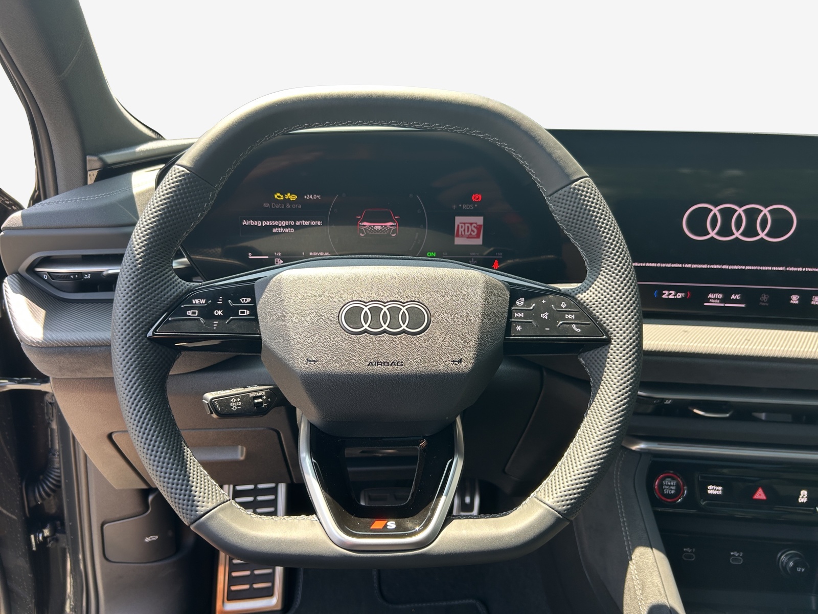 Airbag latéral à l’avant, avec airbag latéral de tête et airbag interactif à l’avant Airbag: Airbags pour conducteur et passager avant avec désactivation de l’airbag passager avant Appel d’urgence Audi connect et service avec Audi connect Remote & Control Assist: Alerte de trafic transversal à l’avant Assist: Assistance au stationnement plus avec affichage de la distance Assist: Assistant de freinage d’urgence à l’avant Assist: Assistant de vitesse adaptative Assist: Assistant d’évitement de collision et de changement de direction Assist: Détection de la distraction et de la fatigue Assist: Limiteur de vitesse basé sur la reconnaissance des panneaux de signalisation Assist: Reconnaissance des panneaux de signalisation par caméra Assist: Électronique contrôle de la traction Assistance aux feux de route Audi connect Navigation & Infotainment Audi virtual cockpit plus Aussenspiegelgehäuse Chromoptik matt silber Avrtissement du franchissement de voie Baguettes de seuil de porte avec inserts en aluminium, avant, éclairées, avec logo S Baguettes décoratives de vitres aspect aluminium Barres de toit en aluminium Boîte: automatique S tronic à 7 vitesses Ciel de pavillon en tissu noir Climatisation automatique confort 3 zones Clé à télécommande sans verrouillage de sécurité Decór: Partie supérieure du tableau de bord noire avec coutures contrastées Dekor: Akzentflächen und Bedientasten schwarz glänzend Dekor: Interieurelemente oben und unten Mikrofaser Dinamica Direction assistée électromécanique Décor: Aspect aluminium à l'intérieur Désignation du modèle à l’arrière Garantie: 3 Jahre oder 100'000 km Lenkrad: Sportlederlenkrad, 3-Speichen, oben und unten abgeflacht mit Multifunktion und Schaltwippen Les rétroviseurs extérieurs peuvent être réglés électriquement, chauffés et repliés, s'assombrissant Lumière: Feux de jour avec éclairage d’assistance et fonction Coming home et Leaving home Lumiére: Feux arrière LED pro Lève-vitres électrique AV Media: Ports USB avec fonction de recharge dans la première et la deuxième rangée de sièges Mèdias: Audi Application Store et interface pour smartphone Mèdias: Audi phone box light Mèdias: Audi système de Sound Mèdias: Réception radio numérique Pack: Pack Ambiente Light plus Pack: Pack de rangement et coffre Pare-brise avec isolation thermique et vitrage acoustique Peinture:: Peinture contrastée gris Tambora métallisé Portes: Ouverture confort du couvercle du coffre à bagages Programme électronique de la stabilité (ESP) Pédales et repose-pieds en acier inoxydable Roues: Affichage du contrôle de la pression Roues: Jantes, design à 5 branches doubles en V, gris graphite, finition brillante Roues: Set de réparation pour les pneus Rétroviseur intérieur photochromatique automatique Sièges: Fixation pour siège enfant i-Size côté passager et i-Size et Top Tether sur les sièges Sièges: Sièges AV chauffants Sièges: Sièges AV de sport Sièges: Sièges AV à réglage électrique Sièges: soutien lombaire 4 directions pour les sièges avant Suspension: Châssis Sport S Système antiblocage des roues (ABS) Système de nettoyage des phares Système d’avertissement acoustique du véhicule Système d’échappement standard Tapis à l'avant et à l'arrière Tissu: Combinaison microfibre Dinamica/cuir avec surpiqûres en losanges et gaufrage S Trousse de secours avec,triangle de preesignalisation et veste de signalisation Verrouillage central avec télécommande Vitrage acoustique pour fenêtres de porte d'entrée Volant: Application de volant aspect chromé, emblème S, poignées de volant en cuir perforé Volant: Volant avec réglage manuel
