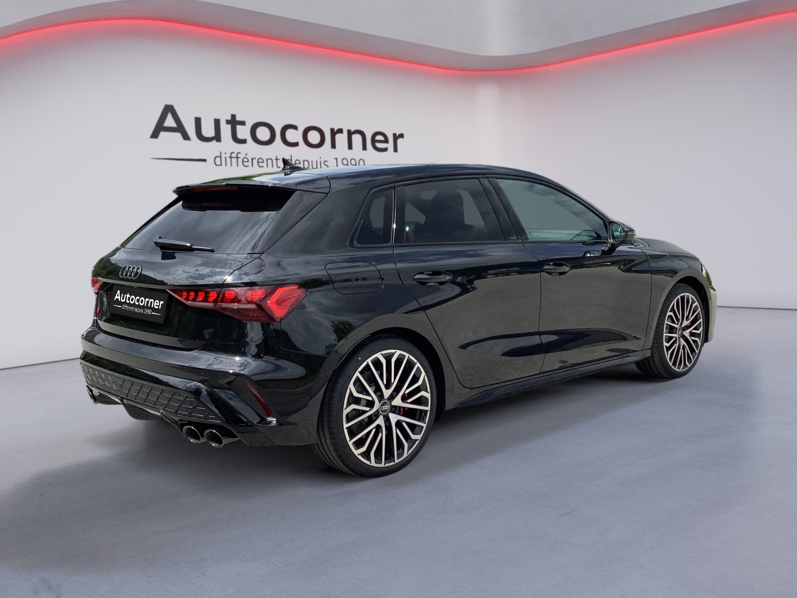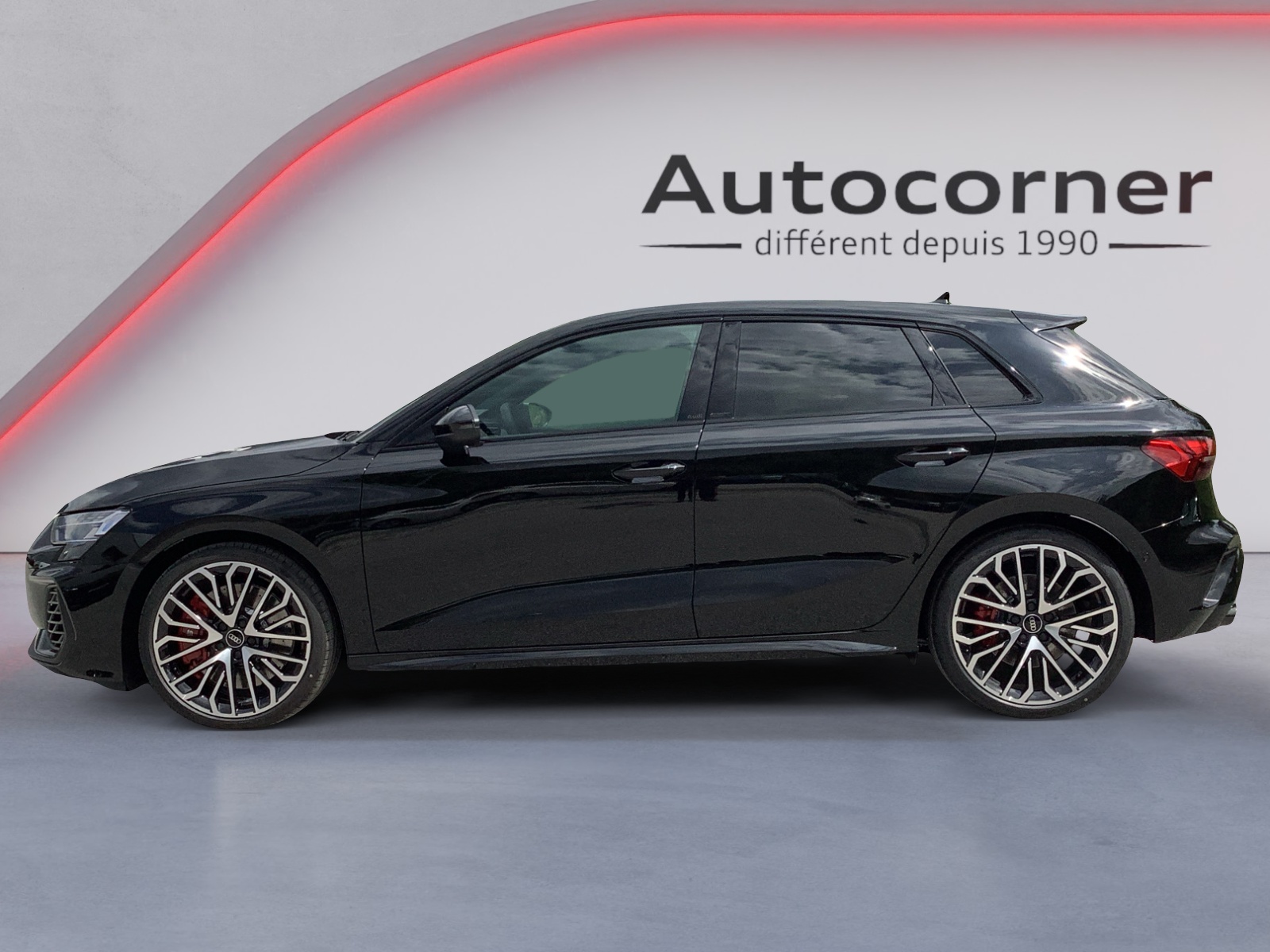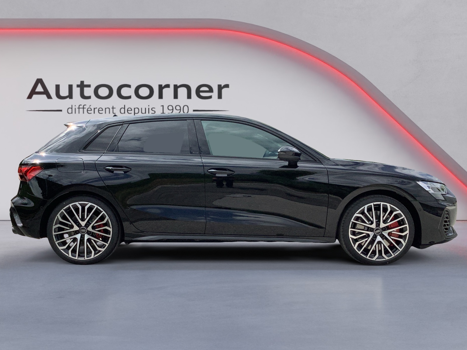 Assist: Alerte de changement de voie avec avertissement de sortie Assist: Assistance de stationnement avec aide au stationnement plus Assist: Assistant de maintien de voie Assist: Assistant de vitesse adaptative Audi Garantie: 5 ans ou 100'000 km Clé de confort sans Safelock Embouts d’échappement noirs chromés Lumière: Éclairage de seuil à LED avec projection du logo à l’avant Mèdias: Prise en charge LTE pour la cabine téléphonique Audi Pack: Intérieur S avec sièges sport, combinaison microfibre Dinamica/similicuir noir Pack: Pack Assistance systèmes de protection et d’avertissement plus Pack: Pack Info-divertissement S3 Pack: Pack climatisation plus Pack: Pack confort S3 - Sportback Pack: Pack fonction sécurité Pack: Pack optique noir plus Pack: Pack éclairage d’ambiance pro Roues: Jantes Audi Sport, design S multibranches, noir anthracite, finition brillante Sièges: Sièges AV à réglage électrique Sièges: dossier de siège arrière, partiellement rabattable Vitrage de contrôle solaire, obscurci