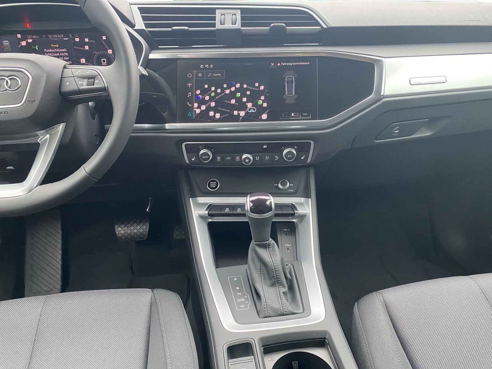 3-Punkt-Sicherheitsgurte auf allen Plätzen ABS, EBD elektronische Bremskraftverteilung Airbag: Airbag Beifahrer deaktivierbar Airbag: Airbag Fahrer und Beifahrer Airbag: Seitenairbags vorne Airbag: Window-Kopfairbags Assist: Ablenkungs- und Müdigkeitserkennung Assist: Berganfahrassistent Assist: Einparkhilfe hinten Assist: Kamerabasierte Verkehrszeichenerkennung Assist: Spurverlassenswarnung Assist: Spurwechselwarnung Audi connect Notruf & Service Audi connect Remote & Controll Aussenspiegel rechts und links elektrisch verstell-, beheiz- und anklappbar, Dachhimmel in Stoff mondsilber Dekor: Akzentfläche in der Armaturentafel schwarz matt Dekor: Dekoreinlagen Micrometallic silber Digitales Kombiinstrument Elektrische Kindersicherung Garantie: 2 Jahre ohne Kilometerbegrenzung (ab 1. Inv.) Gepäckraumklappe elektrisch öffnend und schliessend Geschwindigkeitsbegrenzer Getriebe: 7-Gang- Automat S tronic Heckscheiben-Wisch-/Waschanlage ISOFIX Kindersitzvorrichtung Kindersitzbefestigung ISOFIX für den Beifahrersitz Lackierung: Uni-Lackierung Lenkrad: Lederlenkrad im 3-Speichen-Design mit Multifunktion plus Licht: Drittes Bremslicht Licht: Licht- und Regensensor Licht: Nebelschlussleuchte Media: Audi connect Navigation & Infotainment plus Media: Bluetooth-Schnittstelle Media: Digitaler Radioempfang (DAB) Modellbezeichnungen (Logo & Model) Paket: Communicationpaket Polster: Stoff-Ausstattung Räder: Reifendruck-Kontrollanzeige Räder: Reifenreparatur-Set (Tire Fit) Räder: Stahlrad mit Radvollblende - 17 Zoll Teppichfussmatten vorne und hinten Verbandmaterial und Warndreieck Wegfahrsperre elektronisch Zentralverriegelung mit Fernbedienung