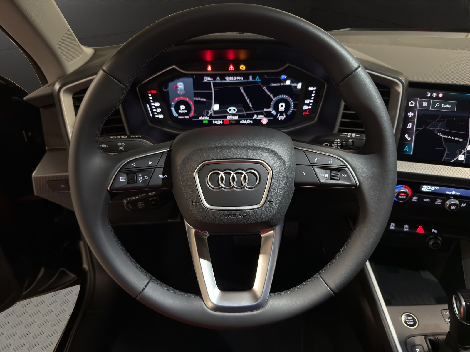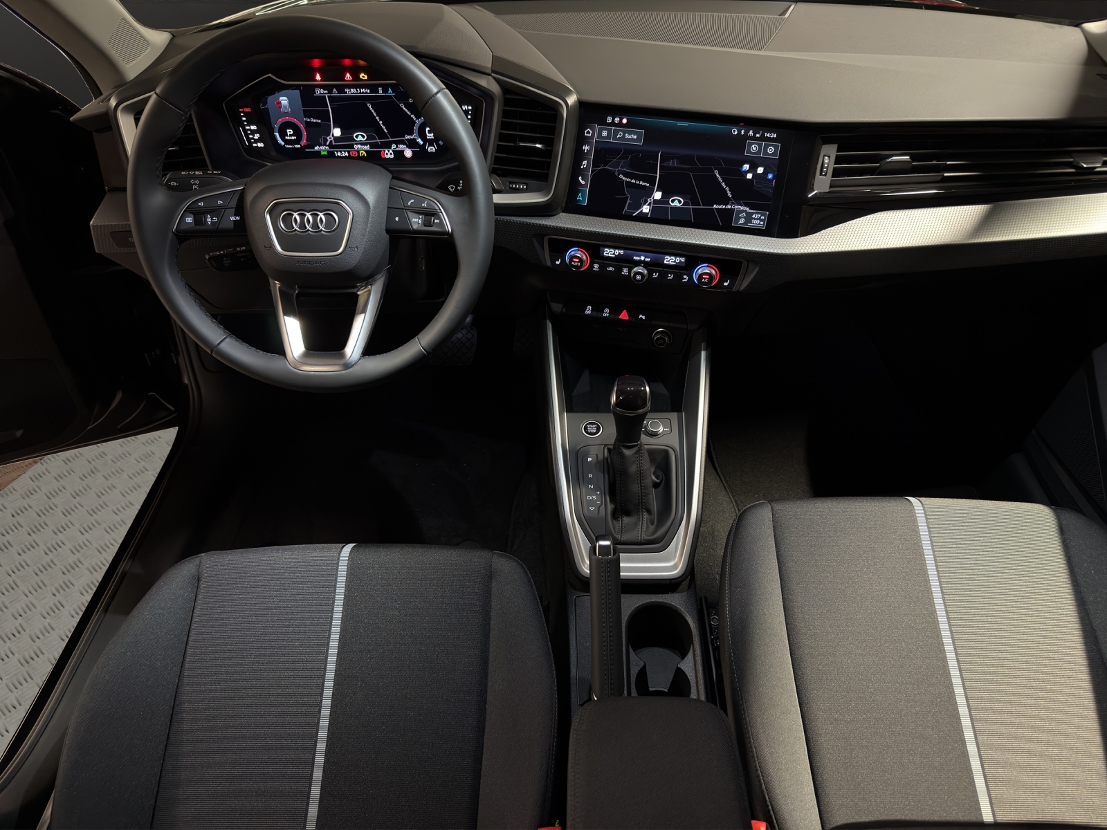Clé confort (sans verrouillage de sécurité) Dekor: Aluminiumoptik im Interieur Garantie: Audi Garantie: 5 Jahre oder 100'000 km (ab 1. Inv.) Klima: 2-Zonen-Komfortklimaautomatik Lackierung: Metallic-Lackierung Media: MMI Navigation plus mit MMI touch Pack: Pack compartiment à bagages Roues: Roues en fonte daluminium - 17 pouces - au design V à 5 branches, gris contraste, Tissu: advanced avec siège normal (tissu Debüt) Vitrage de protection solaire assombri