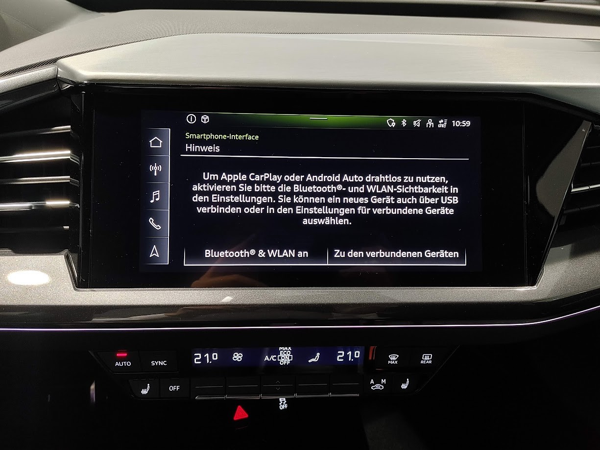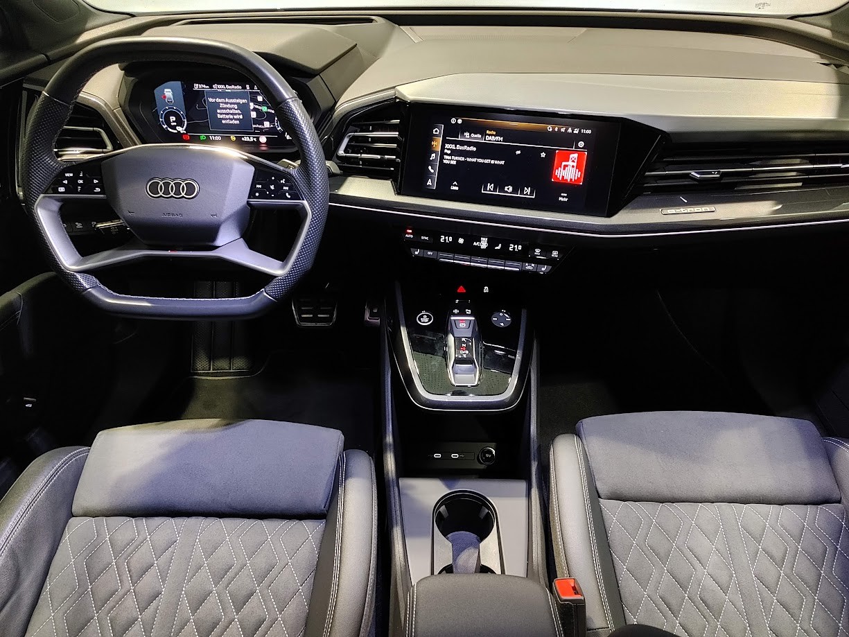 3-Punkt-Sicherheitsgurte auf allen Plätzen Airbag: Airbag für Fahrer und Beifahrer mit Beifahrer-Airbag-Deaktivierung Airbag: Seitenairbags vorn, mit Kopfairbag und Interaktionsairbag vorn Assist: Einparkhilfe hinten Assist: Geschwindigkeitsregelanlage mit einstellbarem Geschwindigkeitsbegrenzer Assist: Proaktiver Insassenschutz Front, Seite und Heck Assist: Spurverlassenswarnung Aussenspiegel in Wagenfarbe Bottom line rundum in genarbter Optik Dekor: Dekoreinlage Haptiklack schwarz Elektronisches Stabilitäts-Programm (ESP) Entfall Leistungs- / Technologie-Schriftzug Entfall Modellbezeichnung und Leistungs- / Technologie-Schriftzug Fahrwerk: Komfortfahrwerk Funkschlüssel, ohne Safelock Garantie: 2 Jahre ohne Kilometerbegrenzung (ab 1. Inv.) Garantie: Audi Swiss Service Package + (ASSP+) Gepäckraumklappe (manuell) Getriebe: Direktantrieb, kein Getriebe Haushaltsstecker Typ J (Schweiz) für das e-tron Ladesystem Industriestecker CEE 16A, 400V, lang und gerade für das e-tron Ladesystem Klima: Komfort Standklimatisierung Komfortmittelarmlehne vorne Lackierung: Uni-Lackierung Ladekabel Mode 3 Typ 2 32A Lenkrad: Doppelspeichen-Sportlederlenkrad, oben und unten abgeflacht mit Multifunktion Licht: Drittes Bremslicht Licht: Nebelschlussleuchte Media: Bluetooth-Schnittstelle Media: Digitaler Radioempfang (DAB) Modellbezeichnung Technologieschriftzug Performance Typenzeichen Paket: Glanzpaket mit horizontalen Fensterzierleisten in eloxiertem Aluminium Räder: Leichtmetallräder Audi Sport, 5-Arm-Rotor-Aero, schwarz, glanzgedreht - edition one Räder: Leichtmetallräder Audi Sport, 5-W-Speichen-Stern, bronze matt Räder: Leichtmetallräder, 5-W-Speichen-Aero, graphitgrau, glanzgedreht Räder: Leichtmetallräder, 5-Y-Speichen Räder: Reifendruck-Kontrollanzeige Räder: Reifenreparatur-Set (Tire Fit) Sitze: Interieur mit Normalsitzen in Stoff Index schwarz Sitze: Kindersitzbefestigung i-Size auf der Beifahrerseite und i-Size und Top Tether Sitze: Vordersitze heizbar Sitze: Vordersitze manuell einstellbar Verbandmaterial,Warndreieck und Warnveste Wegfahrsperre elektronisch Wärmeschutzverglasung grün getönt Zentralverriegelung mit Fernbedienung ohne Audi connect Navigation & Infotainment ohne Dacheinsatz (Volldach) ohne Ladekabel (Industriestecker) ohne Scheinwerferreinigungsanlage
