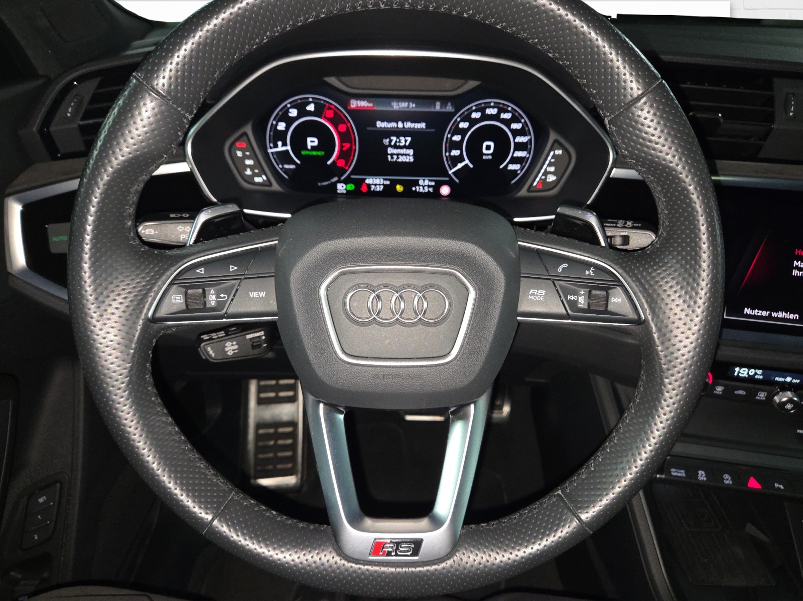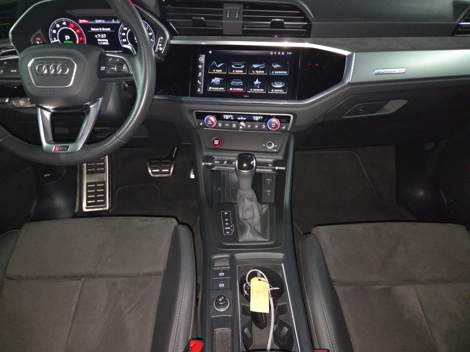 3-Punkt-Sicherheitsgurte auf allen Plätzen ABS, EBD elektronische Bremskraftverteilung Airbag: Airbag Beifahrer deaktivierbar Airbag: Airbag Fahrer und Beifahrer Airbag: Seitenairbags vorne Airbag: Window-Kopfairbags Assist: Berganfahrassistent Assist: Einparkhilfe plus Aussenspiegel rechts und links beheizt, elektrisch verstell- / und einklappbar Dekor: Akzentfläche in der Armaturentafel in Glasoptik schwarz Dekor: Aluminiumoptik im Interieur Dekor: Dekoreinlagen Aluminium Race anthrazit Einstiegsleisten mit Aluminiumeinlage und beleuchtetem RS Q3-Schriftzug vorn Elektrische Kindersicherung Elektronisches Stabilitäts-Programm (ESP) Fahrwerk: RS-Sportfahrwerk Frontscheibe in Akustikverglasung Garantie: 2 Jahre ohne Kilometerbegrenzung (ab 1. Inv.) Gepäckraumklappe elektrisch öffnend und schliessend Geschwindigkeitsbegrenzer Getriebe: 7-Gang- Automat S tronic Heckscheibe, hintere Tür- und Seitenscheiben in Klarglas Heckscheiben-Wisch-/Waschanlage Heckspoiler in Wagenfarbe Kindersitzbefestigung ISOFIX für den Beifahrersitz Kindersitzbefestigung ISOFIX und Top Tether für die Rücksitzbank Kopfstützen vorne höhenverstellbar Lackierung: Uni-Lackierung Ladekantenschutz in Edelstahl Lenkrad: RS-Sportkontur-Lederlenkrad im 3-Speichen-Design Licht: Drittes Bremslicht Licht: LED-Heckleuchten mit dynamischem Blinklicht Licht: Licht- und Regensensor Licht: Nebelschlussleuchte Media: Bluetooth-Schnittstelle Media: Digitaler Radioempfang (DAB) Paket: Ambiente Lichtpaket Pedale und Fuss-Stütze in Aluminium Polster: Alcantara/Kunstleder mono.pur 550-Kombination Polster: Interieurelemente in Alcantara schwarz Räder: Leichtmetallräder 20 Zoll - 10-Speichen-Stern Räder: Reifendruck-Kontrollanzeige Räder: Reifenreparatur-Set (Tire Fit) Sitze: 4-Wege-Lendenwirbelstütze für die Vordersitze Sitze: Rücksitzbank plus mit Mittelarmlehne und Cupholder Sitze: Vordersitze heizbar Sitze: Vordersitze manuell verstellbar Spurverlassenswarnung und Spurwechselwarnung Veloursfussmatten vorne und hinten Verbandmaterial und Warndreieck Wegfahrsperre elektronisch Zentralverriegelung mit Fernbedienung