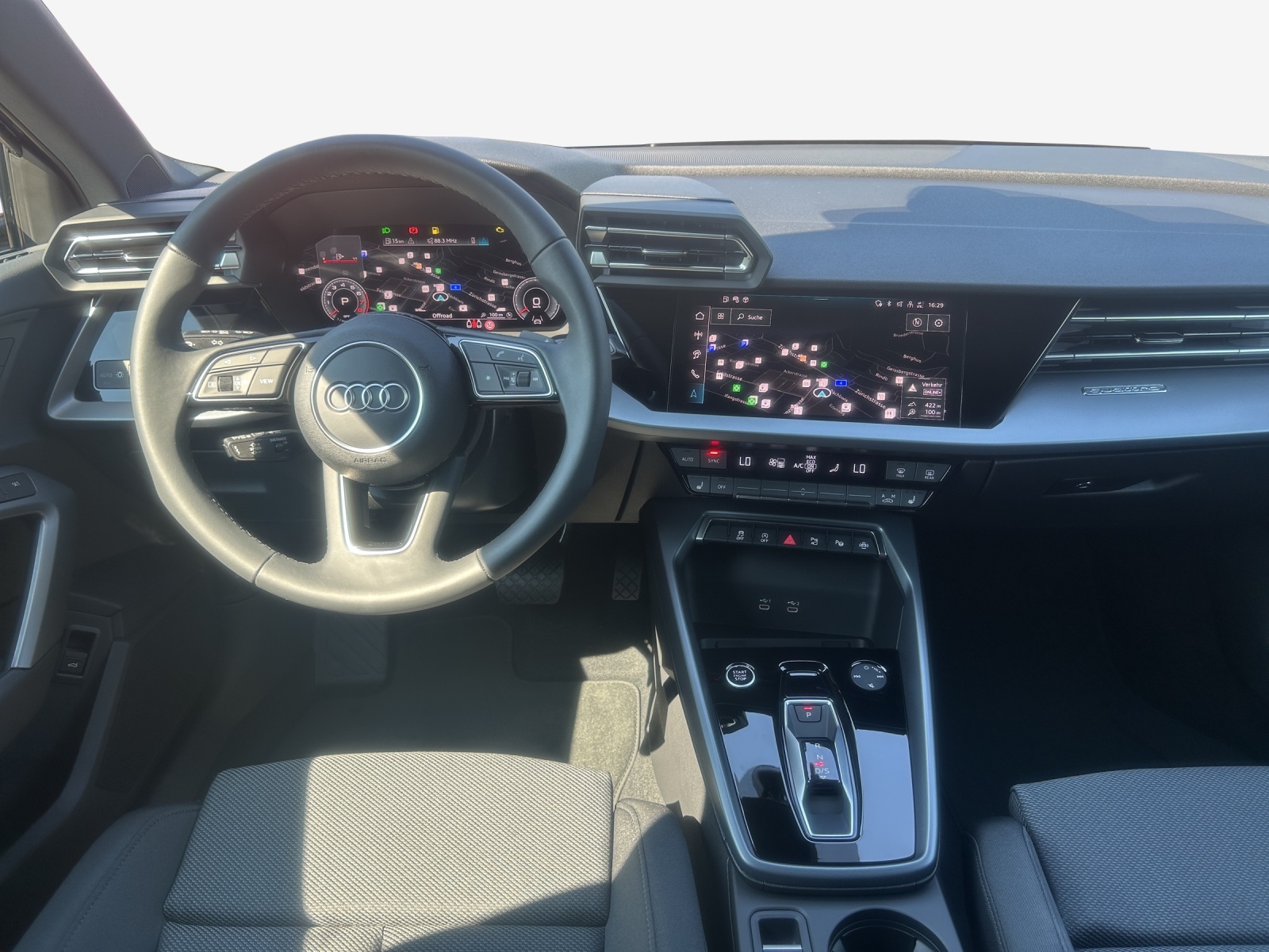 Serienausstattung Airbag: Airbag Beifahrer deaktivierbar Assist: Audi pre sense front Assist: Ausweichassistent und Abbiegeassistent Assist: Kamerabasierte Verkehrszeichenerkennung Assist: Proaktiver Insassenschutz Front, Seite und Heck Assist: Traktionskontrolle Audi connect Notruf & Service mit Audi connect Remote & Control Aussenspiegel in Wagenfarbe Dekor: Dekoreinlage Feinlack vulkangrau Diffusor mit Akzenten in Chromoptik matt anthrazit Einleger der Lufteinlässe in Chromoptik matt anthrazit Einstiegsleisten mit Aluminiumeinlegern vorn Elektrische Fensterheber vorne Elektronisches Stabilitäts-Programm (ESP) Fensterschachtleisten in Schwarz Frontscheibe in Wärmeschutzverglasung Garantie: 2 Jahre ohne Kilometerbegrenzung (ab 1. Inv.) Getriebe: 7-Gang- Automat S tronic Interieur mit Normalsitzen in Stoff schwarz Kindersicherung, elektrisch Klima: 1-Zonen-Klimaautomatik mit Vorbereitung für weitere Klimafunktionen Komfortschlüssel ohne Safelock Lackierung: Uni-Lackierung Lenkrad: Lederlenkrad im 3-Speichen-Design mit Multifunktion plus und Schaltwippen Media: Audi Application Store und Smartphone-Interface Media: Audi connect Navigation & Infotainment plus Media: LTE-Unterstützung für Audi phone box Media: USB-Anschlüsse mit Ladefunktion im Fond Paket: Ablagen- und Gepäckraumpaket Paket: Ambiente Lichtpaket Paket: Assistenzpaket Fahren und Parken plus Paket: Infotainmentpaket Connectivity Räder: Reifendruck-Kontrollanzeige Räder: Reifenreparatur-Set (Tire Fit) S-Kühlerschutzgitter in Titanschwarz Schwellerleisten in Chromoptik matt anthrazit Sitze: Kindersitzbefestigung i-Sitze-konform auf Beifahrerseite und äusseren Fondsitzen, Sitze: Rücksitzlehne umklappbar Sitze: i-Size und Top Tether für die äusseren Fondsitze Wegfahrsperre elektronisch Zentralverriegelung mit Fernbedienung