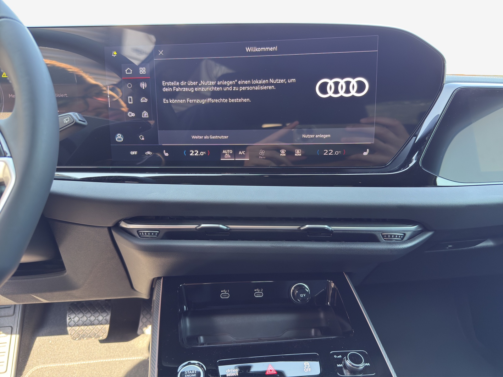 Akustikverglasung für Tür- und Seitenscheiben Anhängevorrichtung mechanisch schwenkbar Assist: Adaptiver Fahrassistent plus Assist: Spurverlassenswarnung inkl. Notfallassistent Dekor: Dekoreinlagen Aluminium Tangente messing-anthrazit Lackierung: Metallic-Lackierung Media: LTE-Unterstützung für Audi phone box Paket: Ambiente Lichtpaket plus Paket: Interieur mit Normalsitzen, Leder/Kunstleder-Kombination schwarz Paket: Interieur mit Sportsitzen, Stoff schwarz Paket: Paket Premium Business Schienensystem mit Fixierset Sitze: Kopfstützen für Vordersitze (X-Verstellung) Sitze: Vordersitze elektrisch verstellbar Sonnenschutzverglasung, abgedunkelt