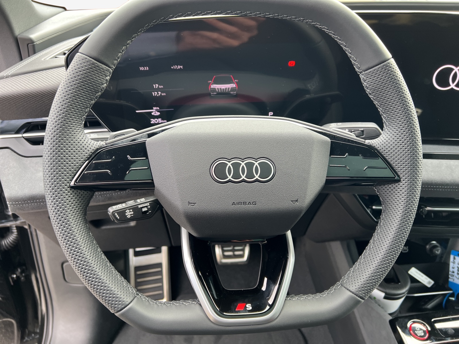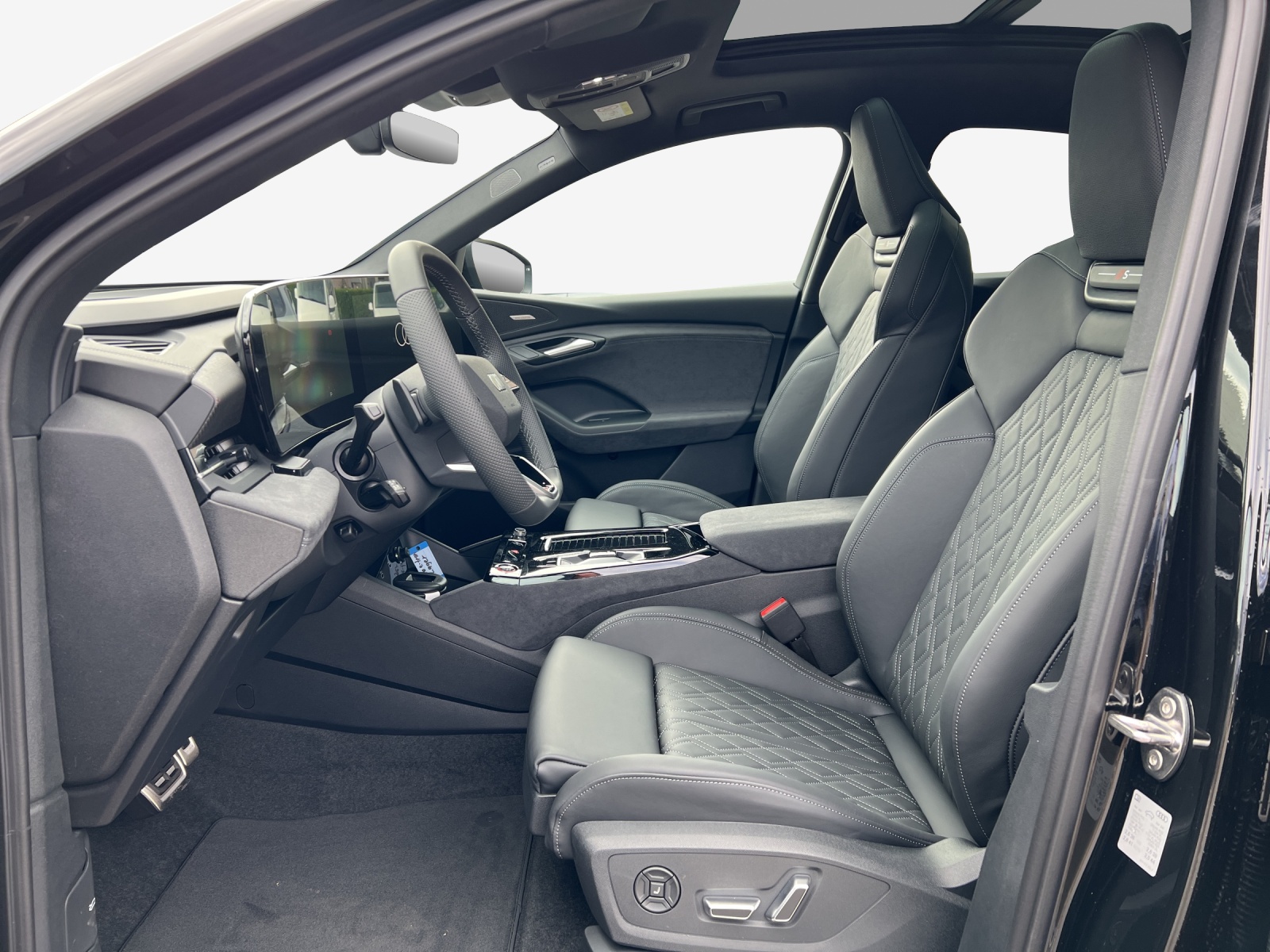 Airbag: Airbag Beifahrer deaktivierbar Airbag: Airbag Fahrer und Beifahrer Airbag: Seitenairbag vorn, mit Kopfairbag und Interaktionsairbag vorn Assist: Adaptiver Geschwindigkeitsassistent Assist: Aufmerksamkeits- und Müdigkeitserkennung Assist: Ausweichassistent und Abbiegeassistent Assist: Einparkhilfe plus mit Distanzanzeige Assist: Kamerabasierte Verkehrszeichenerkennung Assist: Kreuzungsassistent Assist: Notbremsassistent vorn Assist: Parkassistent plus Assist: Spurverlassenswarnung Assist: Spurwechsel- und Ausstiegswarnung, Querverkehrassistent hinten und Abbiegeassistent hinten Assist: Traktionskontrolle Assist: Verkehrszeichenbasierter Geschwindigkeitsbegrenzer Audi connect Notruf & Service mit Audi connect Remote & Control Audi virtual cockpit plus Aussenspiegel elektrisch einstell-, beheiz- und anklappbar, beidseitig automatisch abblendend Aussenspiegelgehäuse Chromoptik matt silber Elektrische Fensterheber vorne Elektronisches Stabilitäts-Programm (ESP) Fahrwerk: S-Sportfahrwerk Fensterzierleisten schwarz Fussmatten vorne und hinten Garantie: Audi Garantie 2 Jahre ohne Kilometerbegrenzung (ab 1. Inv.) Garantie: Audi Swiss Service Package + (ASSP+) Getriebe: Direktantrieb, kein Getriebe Innenspiegel automatisch abblendbar Klima: 3-Zonen-Klimatisierungsautomatik Klima: Automatische Umluftregelung Klima: Elektrische Luftzusatzheizung Komfortmittelarmlehne vorne Komfortschlüssel ohne Safelock Lackierung: Kontrastlackierung Lackierung: Uni-Lackierung Magnetgrau Ladekabel Mode 3 für öffentliches Laden bis 22 kW Ladeleistung bis 270 kW (DC) Lenkrad: Lenkrad längs- und höhenverstellbar Licht: Fernlicht-Assistent Licht: LED-Heckleuchten pro Licht: LED-Scheinwerfer plus Licht: Projektionsleuchte in den Aussenspiegeln Licht: Tagesfahrlicht mit Assistenzfahrlicht u.Coming- u. Leaving-home Funktion automatisch Media: Audi Application Store und Smartphone-Interface Media: Audi connect Navigation & Infotainment Media: Digitaler Radioempfang Media: FOD Funktionen online verfügbar Media: MMI experience plus Media: Telefonablage mit induktiver Ladefunktion Media: USB-Anschlüsse mit Ladefunktion in erster und zweiter Sitzreihe Modellkennzeichnung am Heck On-board-Ladegerät bis 11 kW (AC) Paket: Ambiente Lichtpaket Paket: Interieur S mit Sportsitzen, Leder/Kunstleder-Kombination schwarz Pedalerie und Fussstütze in Edelstahl Räder: Reifendruck-Kontrollanzeige Räder: Reifenreparatur-Set (Tire Fit) Räder: Räder, 5-Arm-Struktur, graphitgrau, glanzgedreht Scheiben seitlich und hinten in Wärmeschutzverglasung Scheinwerfer-Reinigungsanlage Sitze: Fahrersitz und Aussenspiegel mit Memoryfunktion Sitze: Kindersitzbefestigung i-Size auf der Beifahrerseite und i-Size und Top Tether Sitze: Rücksitzbank ungeteilt, Lehne geteilt umlegbar (dreiteilig) mit Mittelarmlehne Sitze: Vordersitze elektrisch verstellbar Sitze: Vordersitze heizbar Türen: Gepäckraumklappe elektrisch öffnend und schliessend Türgriffe aussen in Wagenfarbe Verbandmaterial,Warndreieck und Warnveste Vorbereitung für Anhängevorrichtung Vorbereitung für intelligente Ladefunktionen Wegfahrsperre elektronisch Wärmeschutz- und Akustikverglasung Frontscheibe Zentralverriegelung mit Fernbedienung