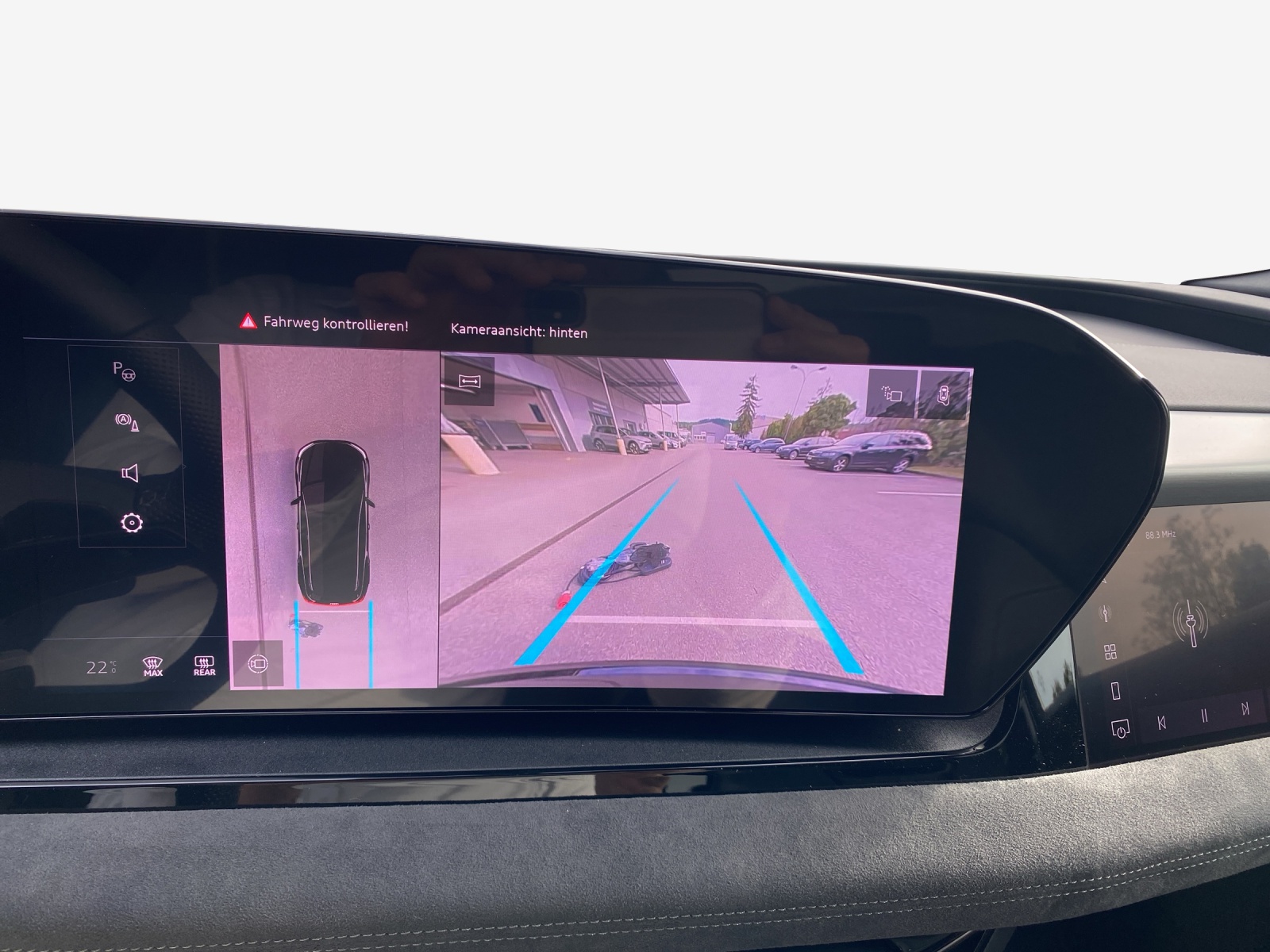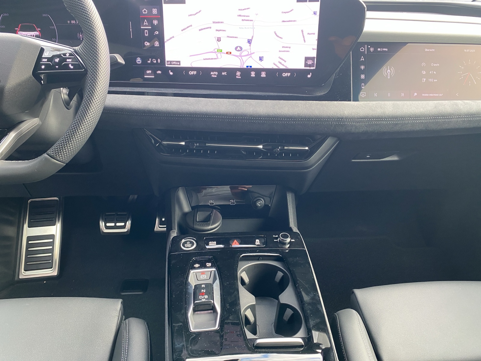 Airbag: Airbag Beifahrer deaktivierbar Airbag: Airbag Fahrer und Beifahrer Airbag: Seitenairbag vorn, mit Kopfairbag und Interaktionsairbag vorn Akustisches Fahrzeug-Warnsystem (AVAS) Assist: Adaptiver Geschwindigkeitsassistent Assist: Aufmerksamkeits- und Müdigkeitserkennung Assist: Ausweichassistent und Abbiegeassistent Assist: Einparkhilfe plus mit Distanzanzeige Assist: Kamerabasierte Verkehrszeichenerkennung Assist: Kreuzungsassistent Assist: Notbremsassistent vorn Assist: Parkassistent plus Assist: Spurverlassenswarnung Assist: Spurwechsel- und Ausstiegswarnung, Querverkehrassistent hinten und Abbiegeassistent hinten Assist: Traktionskontrolle Assist: Verkehrszeichenbasierter Geschwindigkeitsbegrenzer Audi connect Notruf & Service mit Audi connect Remote & Control Audi virtual cockpit plus Aussenspiegel elektrisch einstell-, beheiz- und anklappbar, beidseitig automatisch abblendend Aussenspiegel in Wagenfarbe Dachhimmel Stoff, Farbe felsgrau Dekor: Dekoreinlage Feinlack vulkangrau Dekor: Instrumententafel-Oberseite schwarz mit Kontrastnaht Dekor: Interieurelemente oben und unten Kunstleder Einstiegsleisten mit Aluminiumeinlegern vorn Elektrische Fensterheber vorne Elektronisches Stabilitäts-Programm (ESP) Fahrwerk: Komfortfahrwerk Fensterzierleisten schwarz Fussmatten vorne und hinten Garantie: Audi Garantie 2 Jahre ohne Kilometerbegrenzung (ab 1. Inv.) Garantie: Audi Swiss Service Package + (ASSP+) Getriebe: Direktantrieb, kein Getriebe Innenspiegel automatisch abblendbar Interieur mit Normalsitzen, Stoff schwarz Klima: 3-Zonen-Klimatisierungsautomatik Klima: Automatische Umluftregelung Klima: Elektrische Luftzusatzheizung Komfortmittelarmlehne vorne Komfortschlüssel ohne Safelock Lackierung: Kontrastlackierung Lackierung: Uni-Lackierung Magnetgrau Ladekabel Mode 3 für öffentliches Laden bis 22 kW Ladeleistung bis 270 kW (DC) Lenkrad: Doppelspeichen-Lederlenkrad mit Multifunktion und Schaltwippen Lenkrad: Lenkrad längs- und höhenverstellbar Lenkrad: Lenkrad mit Applikation in Chromoptik Lenkrad: Lenkradapplikation Chromoptik Licht: Fernlicht-Assistent Licht: LED-Heckleuchten pro Licht: LED-Scheinwerfer plus Licht: Projektionsleuchte in den Aussenspiegeln Licht: Tagesfahrlicht mit Assistenzfahrlicht u.Coming- u. Leaving-home Funktion automatisch Media: Audi Application Store und Smartphone-Interface Media: Audi connect Navigation & Infotainment Media: Digitaler Radioempfang Media: FOD Funktionen online verfügbar Media: MMI experience plus Media: Telefonablage mit induktiver Ladefunktion Media: USB-Anschlüsse mit Ladefunktion in erster und zweiter Sitzreihe Modellkennzeichnung am Heck On-board-Ladegerät bis 11 kW (AC) Paket: Ambiente Lichtpaket Paket: Klimatisierungspaket Winter Räder: Reifendruck-Kontrollanzeige Räder: Reifenreparatur-Set (Tire Fit) Räder: Räder, 10-Speichen Scheiben seitlich und hinten in Wärmeschutzverglasung Scheinwerfer-Reinigungsanlage Sitze: Kindersitzbefestigung i-Size auf der Beifahrerseite und i-Size und Top Tether Sitze: Rücksitzbank ungeteilt, Lehne geteilt umlegbar (dreiteilig) mit Mittelarmlehne Sitze: Vordersitze manuell einstellbar Türen: Gepäckraumklappe elektrisch öffnend und schliessend Türgriffe aussen in Wagenfarbe Verbandmaterial,Warndreieck und Warnveste Vorbereitung für Anhängevorrichtung Vorbereitung für intelligente Ladefunktionen Wegfahrsperre elektronisch Wärmeschutz- und Akustikverglasung Frontscheibe Zentralverriegelung mit Fernbedienung