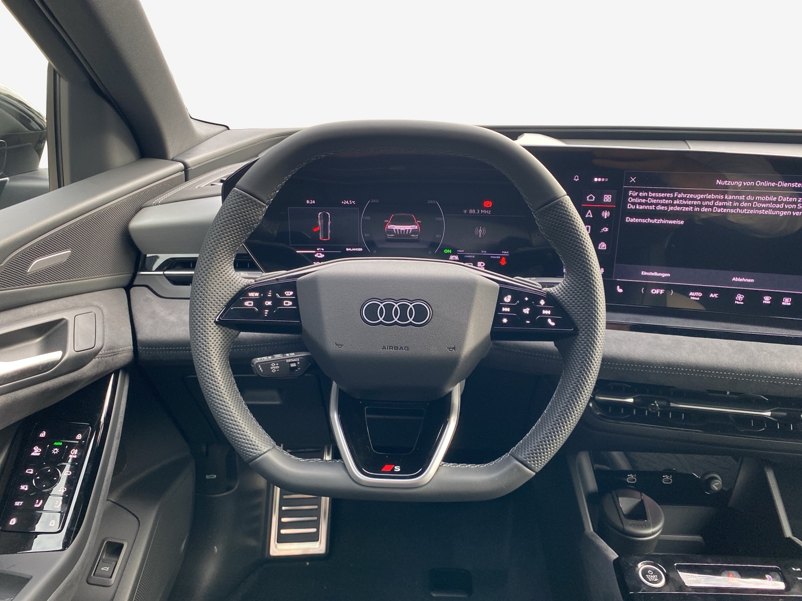 Akustikverglasung für Türscheiben vorn Dekor: Dekoreinlage Aluminium matt gebürstet anthrazit Industriestecker CEE 16A, 400V, lang und gerade für das e-tron Ladesystem Lackierung: Metallic-Lackierung Media: Bang & Olufsen Premium Soundsystem mit 3D-Klang und Kopfstützenlautsprechern Media: LTE-Unterstützung für Audi phone box Media: Telefonablage mit induktiver Ladefunktion und Mobilfunk-Koppelantenne Paket: Ablage- und Gepäckraumpaket und Frontkofferraum Paket: Exterieurpaket schwarz Paket: Interieur S mit Sportsitzen plus, Mikrofaser Dinamica/Leder-Kombination schwarz Paket: MMI experience pro Paket: Paket Premium Experience Räder: Räder Audi Sport, 5-Y-Speichen-Dynamik, schwarz metallic, glanzgedreht Sonnenschutzverglasung, abgedunkelt