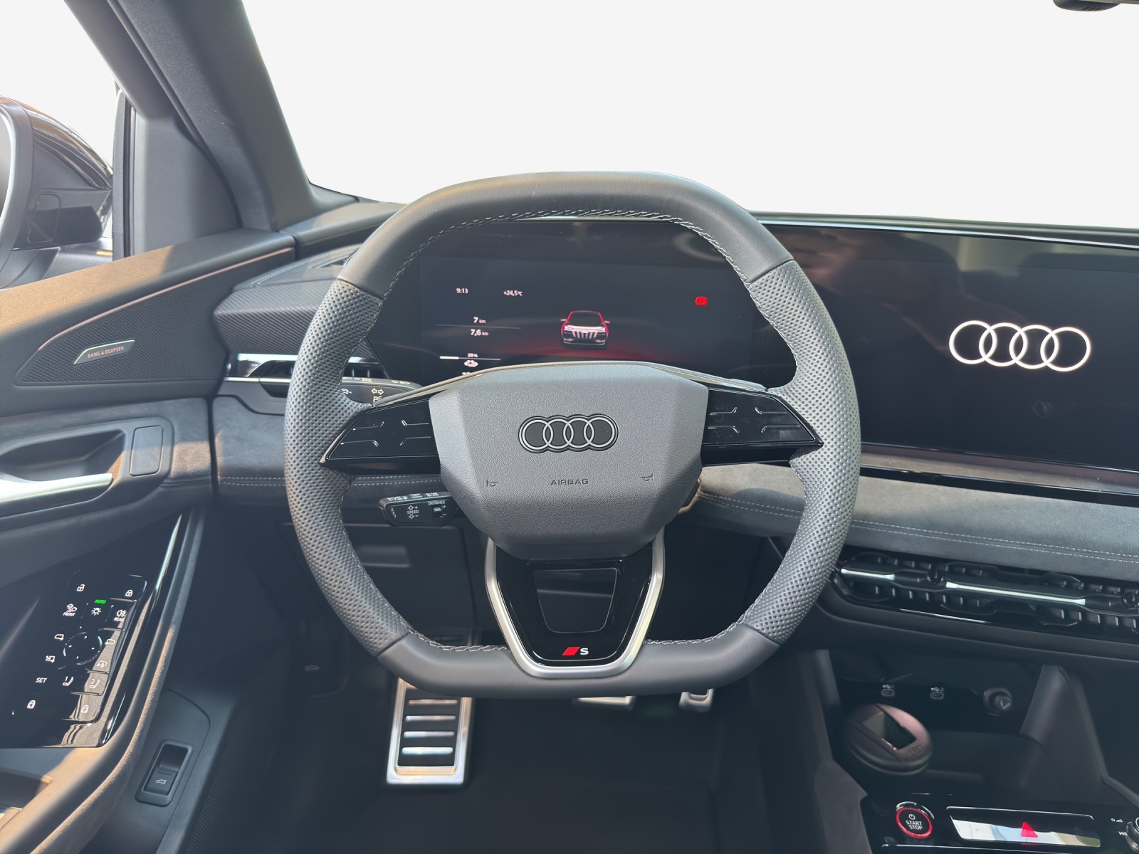 Décor: Application décorative dans une structure en carbone microsergé Media: Système audio haut de gamme Bang & Olufsen avec son 3D et haut-parleurs dans les appuie-tête Mèdias: Emplacement pour téléphone avec fonction de recharge inductive Pack: Intérieur S avec sièges sport plus, cuir noir Pack: Pack Extérieur noir Pack: Pack Premium Experience Pack: Pack de rangement et coffre et coffre avant Peinture: Peinture intégrale Peinture: Peinture nacrée Roues: Jantes Audi Sport, design dynamique à 5 branches en Y, noir métallisé, finition brillante Suspension: Étriers de freins laqués rouge Vitrage acoustique pour fenêtres de porte d'entrée Vitrage de contrôle solaire, obscurci