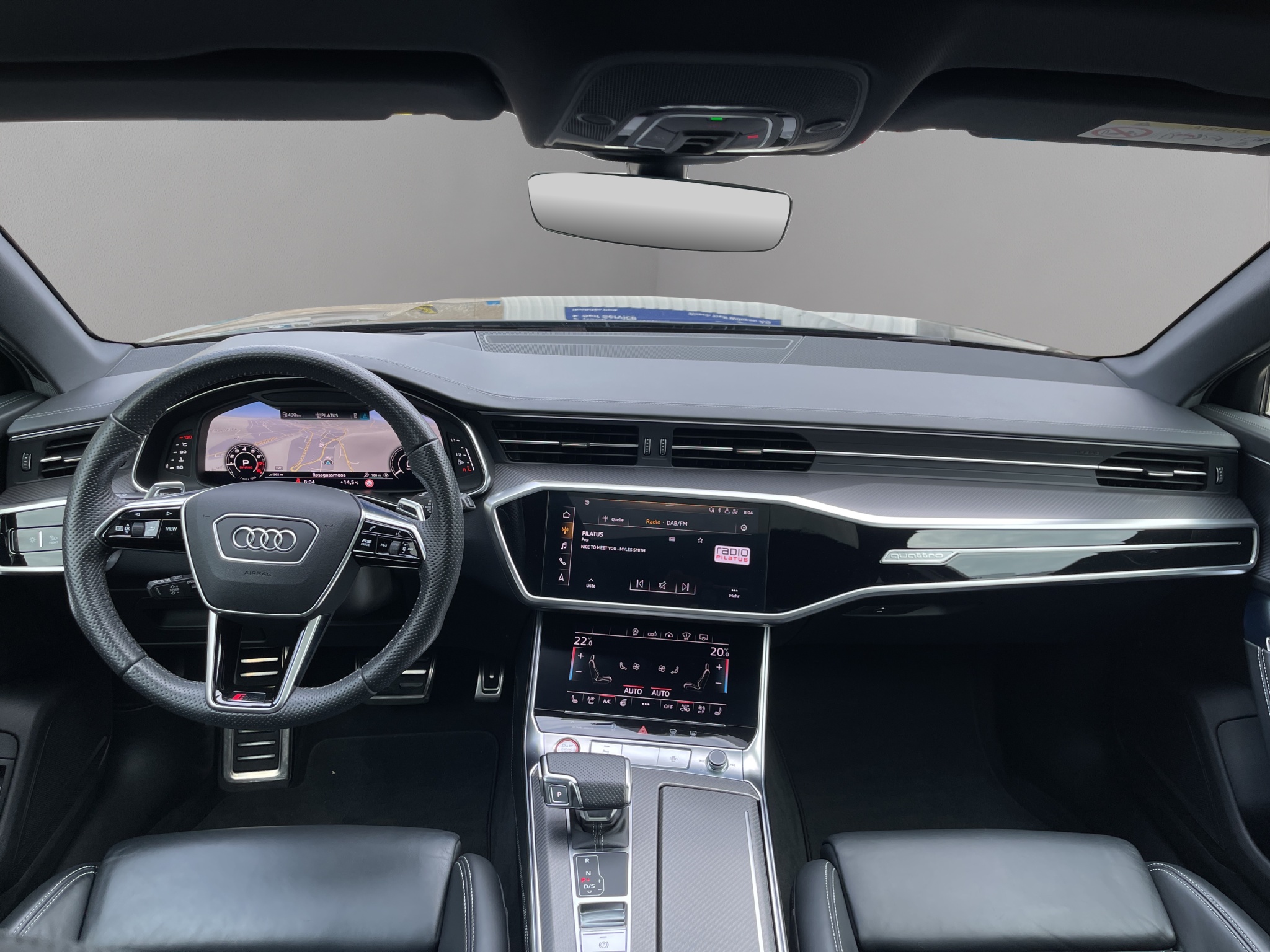 Abgedunkelte Seiten- und Heckscheibe Anhängevorrichtung abschwenkbar Audi pre sense Fond-Paket Aussenspiegel in Wagenfarbe Garantie: Audi Garantie: 5 Jahre oder 100'000 km (ab 1. Inv.) Geschwindigkeitsbegrenzer 280 km/h HomeLink Garagentoröffner Interieurelemente oben und unten Komfortschlüssel inklusive Leder-Multifunktionslenkrad im Leichtmetallräder im 5-V-Speichen-Trapez Media: Audi music interface im Fond Media: Bang & Olufsen Premium Soundsystem mit 3D Klang Ohne Modellbezeichnung: Entfall Typ und Optikpaket schwarz glänzend Panorama-Glasdach 2-teilig Sitze: RS-Sportsitze vorn in Leder Valcona Sonnenschutzrollo manuell für die Türscheiben hinten Verbandmaterial,Warndreieck und Warnveste