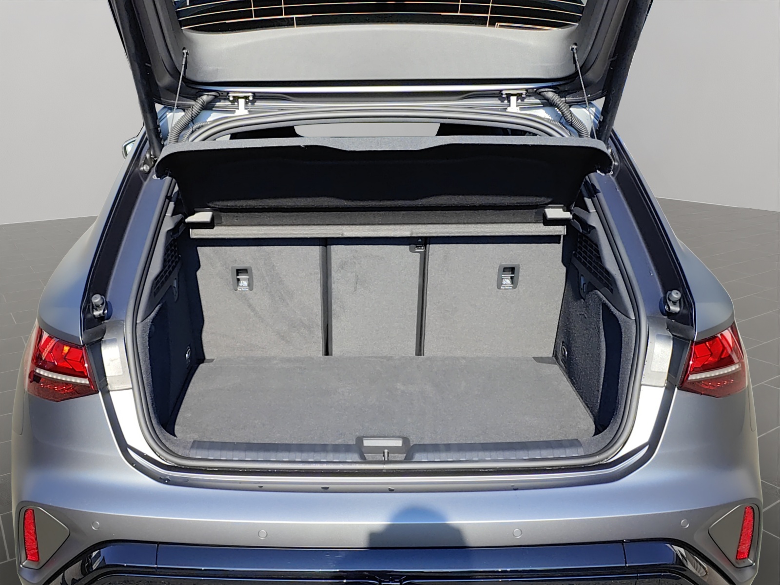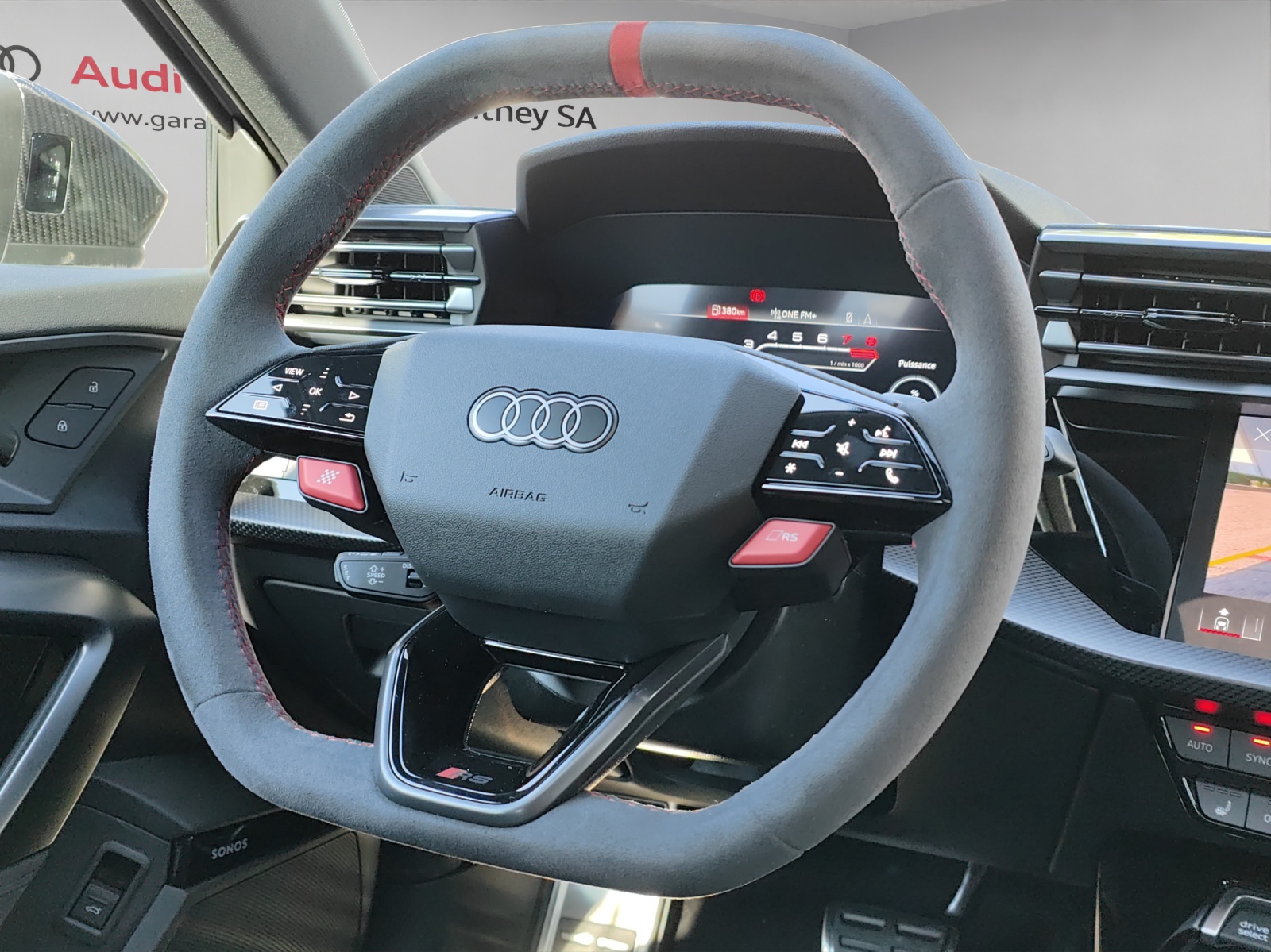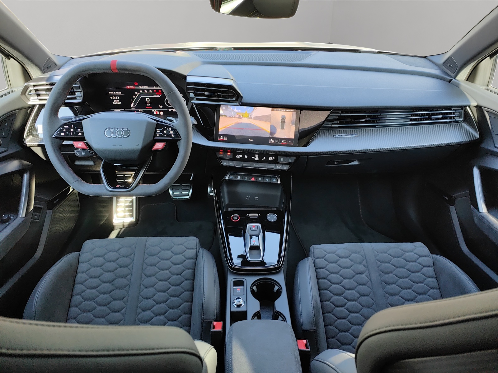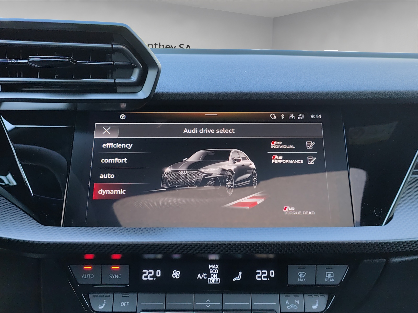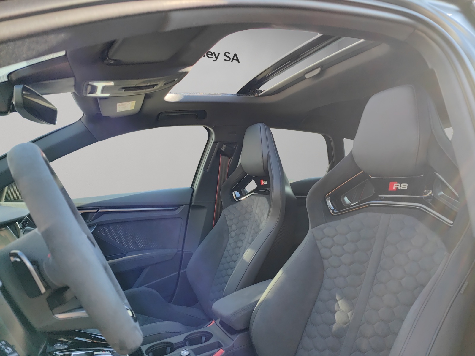 Équipement standard Airbag latéral à l’avant, avec airbag latéral de tête et airbag interactif à l’avant Airbag: Airbags pour conducteur et passager avant avec désactivation de l’airbag passager avant Appel d'urgence statutaire Assist: Assistance de stationnement avec aide au stationnement plus Assist: Assistant d’évitement de collision et de changement de direction Assist: Audi pre sense front Assist: Avertissement d’abandon de voie avec assistant d’urgence inclus Assist: Détecteur de distraction et de fatigue Assist: Limiteur de vitesse jusqu’à 250 km/h Assist: Reconnaissance des panneaux de signalisation par caméra Assist: Régulateur de vitesse avec préparation de l’assistant de vitesse adaptatif Assist: contrôle de traction Audi connect Navigation & Infotainment plus Aussenspiegel elektrisch einstell- und beheizbar Boîte: Boîte de vitesses manuelle automatisée à 7 rapports Ciel de pavillon en tissu noir Climat: climatisation automatique confort 2 zones Clé à télécommande sans verrouillage de sécurité Cockpit virtuel Audi plus mit zusätzlichem RS-Layout Décor: Applications d’intérieur aspect vanadium Décor: Décor Inlay Structure Carbone Atlas Détecteur de luminosité et de pluie Garantie: Audi Garantie 2 ans / kilométrage illimité Lumière: Feux de circulation diurnes Lumière: Éclairage du seuil de porte à LED avec projection RS à l’avant Lumiére: Feu arrière foncé LED avec clignotant dnymique Lunette arrière, porte arrière et vitres latérales en verre transparent Lève-vitres électrique avant Media: Audi connect Notruf & Service mit Audi connect Remote & Control Control Media: Ports USB avec fonction de charge à l’arrière Mèdias: Audi Application Store et interface pour smartphone Mèdias: Audi phone box light Mèdias: Réception radio numérique Médias: système de navigation MMI Plus avec MMI touch Pack: Le pack Esthétique noir plus Pack: Pack éclairage d’ambiance pro Programme électronique de la stabilité Pédale en acier inoxydable Roues: Affichage du contrôle de la pression des pneus Roues: Jantes à 5 rayons en Y, noir mat Roues: Set de réparation pour les pneus Rétroviseurs extérieurs en noir Sièges: Commande de bouclage des ceintures avec détection d'occupation des sièges arrière Sièges: Sièges avant réglables manuellement Sièges: dossier de siège arrière, partiellement rabattable Suspension: Freins en acier RS à l’avant avec étriers de frein en noir brillant Suspension: suspension sport RS Système antiblocage des roues (ABS) Système de nettoyage des phares Tissu: Combinaison microfibre Dinamica/similicuir avec surpiqûres en losanges et gaufrage RS Tissu: Variante de cuir 2 Trousse de premiers secours et triangle Verrouillage centralisé à télécommande Vitrage thermo-isolant et acoustique Pare-brise avec bande colorée grise Volant: Volant contour sport à 3 branches, aplati en haut et en bas Éléments extérieurs RS en noir mat