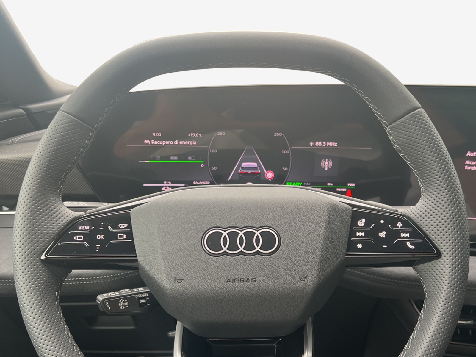 Airbag laterali anteriori, con airbag per la testa e airbag interattivo anteriore Airbag: Airbag conducente e passeggero Airbag: Airbag passeggero desattivabile Alzacristalli anteriori elettrici Assetto: Assetto dinamico Assist: Assistente agli incroci Assist: Assistente di frenata d’emergenza anteriore Assist: Assistente di parcheggio plus Assist: Assistente parcheggio automatico plus con indicatore della distanza Assist: Assistente per il traffico trasversale anteriore Assist: Assistente per manovre di schivamento e assistente di svolta Assist: Avvertimento di abbandono corsia incl. assistente di emergenza Assist: Dintorni della fotocamera Assist: Elektronik Controllo della trazione Assist: Ferma l'assistente Assist: Limitatore di velocità basato sulla segnaletica stradale Assist: Riconoscimento dei segnali stradali mediante telecamera Assist: Sistema di rilevamento dell’attenzione e della stanchezza Assist: assistente di velocità adattivo Audi connect Navigation & Infotainment Audi connect chiamata d’emergenza e assistenza con mit Audi connect Remote & Control Audi virtual cockpit plus Aussenspiegel in Wagenfarbe Bagagliaio anteriore (detto Frunk) Cambio: Trasmissione diretta, gearless Caricabatterie a bordo fino a 11 kW (AC) Cassetta pronto soccorso,triangolo di segnalazione e luci di emergenza Cavo di ricarica modalità 3 per ricarica pubblica fino a 22 kW Chiave comfort senza Safelock Chiave per sistema di chiusura con telecomando Chiusura delle porte centralizzata con telecomando Cielo in tessuto, colore grigio roccia Clima: Regolazione automatica del ricircolo dell’aria Clima: Riscaldamento supplementare ad aria elettrico Climatizzatore automatico confort 3 Decor: Elementi degli interni superiori e inferiori in similpelle Decor: Inserto decorativo alluminio opaco spazzolato antracite Decor: Parte superiore del cruscotto nera con cucitura a contrasto Denominazione del modello sulla parte posteriore Garanzia: Audi Garanzia 2 anni / chilomettraggio illimitato Gepäckraumklappe elektrisch öffnend und schliessend Interni con sedili normali, tessuto nero Listelli sottoporta con inserti in alluminio anteriori Luce: Faro negli specchietti esterni Luce: Luci diurne con luce di assistenza e funzione coming home/leaving home automatiche Media: Audi Application Store e interfaccia smartphone Media: Funzioni FOD disponibili online Media: MMI experience plus Media: Modulo dati Europa Media: Porte USB con elevata potenza di ricarica Media: Ricezione radio digitale Modanature dei finestrini in look alluminio Pacchetto illuminazione ambiental Pacchetto: Pacchetto assistenza alla guida e al parcheggio Parabrezza in vetri atermici e acustici Porte: Maniglie delle porte nel colore della carrozzeria Predisposizione attacco per rimorchio Predisposizione per funzioni di ricarica intelligenti Presa di ricarica Combo 2 (EU) Programma elettronico di stabilità ESP Route: Indicatore di controllo della pressione dei pneumatici Route: Set riparazione pneumatici (Tire Fit) Ruote: Cerchi dal design dinamico a 5 bracci, grigio platino Secondo accesso di carico Sedili anteriori riscaldabili Sedili: Fissaggio per seggiolino per bambini i-Size sul lato passeggero e i-Size e Top Tether Sedili: Panca posteriore indivisa, schienali reclinabili separatamente (in tre parti) Sedili: Sedili anteriori regolabili manualmente Sedili: supporto lombare a 4 vie per i sedili anteriori Sistema antibloccaggio delle ruote (ABS) Sistema di avvertimento acustico del veicolo Sistema di pulizia dei fari Specchietti retrovisivi esterni regolabili, riscaldabili e ripiegabili elettricamente, schermabili Specchietto retrovisore interno autoanabbagliante Sportello di ricarica elettrico Tappetini anteriori e posteriori Vano per il cellulare con funzione di ricarica induttiva Vetri acustici finestrini anteriori Volante: Applicazione sul volante in look cromato Volante: Regolazione manuale del volante Volante: Volante in pelle a razze doppie con multifunzione