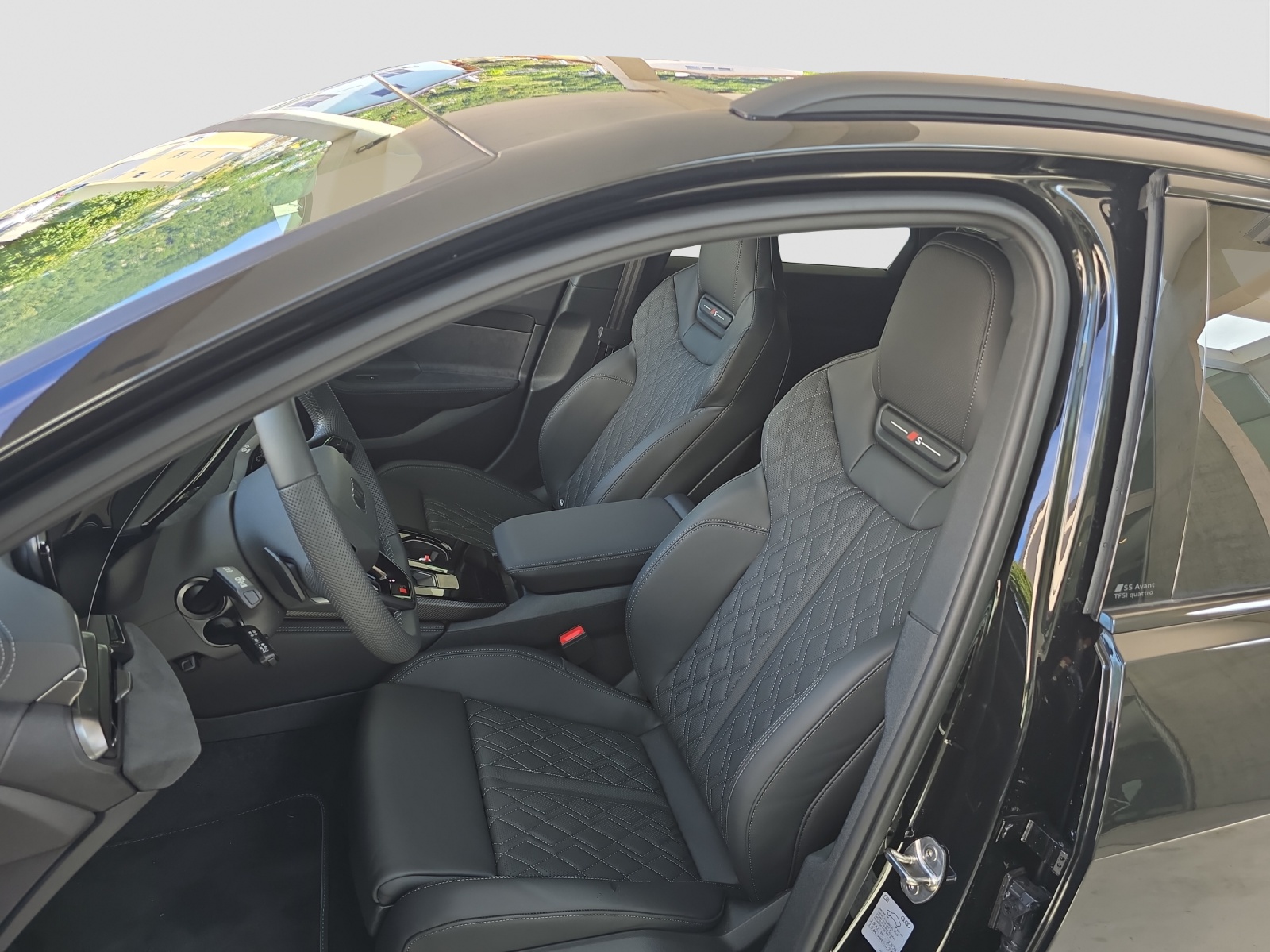 Airbag laterali anteriori, con airbag per la testa e airbag interattivo anteriore Airbag: Airbag conducteur et passager Alzacristalli elettrici anteriori Assetto: Assetto sportivo S Assetto: Freni a disco anteriori, 18 pollici, pinze dei freni nere, scritta S Assetto: Freni a disco posteriori, 18 pollici, pinze dei freni nere Assist: Assistente agli incroci Assist: Assistente di frenata d’emergenza anteriore Assist: Assistente di parcheggio plus Assist: Assistente di velocità adattivo Assist: Assistente parcheggio automatico plus con indicatore della distanza Assist: Assistente per manovre di schivamento e assistente di svolta Assist: Elektronik Controllo della trazione Assist: Lane Departure Warning Assist: Limitatore di velocità basato sulla segnaletica stradale Assist: Riconoscimento dei segnali stradali mediante telecamera Assist: Rilevamento della distrazione e della sonnolenza Assist: Telecamera per retromarcia Audi connect Navigation & Infotainment Audi connect chiamata d’emergenza e assistenza con mit Audi connect Remote & Control Audi virtual cockpit plus Barre portapacchi in alluminio Cambio: Cambio automatico a 8 rapporti Cassetta pronto soccorso,triangolo di segnalazione e luci di emergenza Chiave per sistema di chiusura con telecomando Chiave telecomando, senza Safelock Cielo dell’abitacolo in tessuto nero Climatizzatore automatico confort 3 Comfort bracciolo anteriore Decor: Accenti e tasti di comando in nero lucido Decor: Applicazioni per interni in look alluminio Decor: Elementi interni continui in microfibra Dinamica Decor: Elementi interni superiori e inferiori con cuciture a contrasto Decor: Inserti decorativi in alluminio opaco spazzolato con punzonatura lineare antracite Decor: Look in alluminio negli interni Denominazione del modello sulla parte posteriore Finestrini laterali e posteriori atermici Garanzia: Audi Garanzia 2 anni / chilomettraggio illimitato Immobilizzatore elettronico Impianto di scarico standard Listelli sottoporta con inserti in alluminio, anteriori, illuminati, con logo S. Luce: Assistente abbaglianti Luce: Luci diurne con luce di assistenza e funzione coming home/leaving home automatiche Luce: Luci posteriori LED pro Media: Audi Application Store e interfaccia smartphone Media: Audi sistema di Sound Media: Funzioni FOD disponibili online Media: MMI experience plus Media: Porte USB con funzione di ricarica nella prima e seconda fila di sedili Media: Ricezione radio digitale Modanature dei finestrini in look alluminio Pacchetto: Pacchetto assistenza alla guida e al parcheggio Pacchetto: Pacchetto climatizzazione Pacchetto: pacchetto Ambiente Light plus Parabrezza in vetro atermico e acustico Pedali e poggiapiedi in acciaio inossidabile Porte: Maniglie delle porte nel colore della carrozzeria Porte: Portellone del bagagliaio ad apertura e chiusura elettrica Programma elettronico di stabilità ESP Protezione elettrica per bambini Route: Indicatore di controllo della pressione dei pneumatici Ruote: Cerchi a 5 razze doppie a V, grigio grafite, torniti a specchio Sedili anteriori riscaldabili Sedili: Dispositivo di riconoscimento di sedile occupato Sedili: Fissaggio per seggiolino per bambini i-Size sul lato passeggero e i-Size e Top Tether Sedili: Sedili anteriori di sport Sedili: Sedili anteriori regolabili elettricamente Sedili: supporto lombare a 4 vie per i sedili anteriori Set riparazione pneumatici (Tire Fit) Sistema antibloccaggio delle ruote (ABS) Sistema di avvertimento acustico del veicolo Specchietti retrovisivi esterni regolabili, riscaldabili e ripiegabili elettricamente, schermabili Specchietto retrovisore esterno asferico sul lato del conducente, asferico sul lato del passeggero a Specchietto retrovisore interno con antiabbagliamento automatico Tappetini anteriori e posteriori Tappezzeria: Combinazione microfibra Dinamica/pelle con rombi trapuntati e punzonatura S Verniciatura: Verniciatura Uni Volante: Applicazione sul volante in look cromato, emblema S, impugnature del volante Volante: Regolazione manuale del volante Volante: Volante sportivo in pelle a 3 razze appiattito sul lato superiore e inferiore involucri degli specchietti retrovisivi esterni in look alluminio