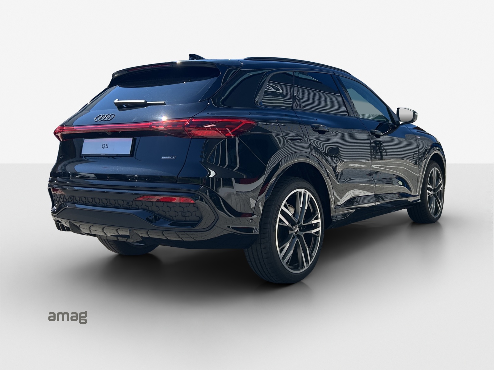 Corpo specchio esterno in nero Pacchetto: Esterni S line Pacchetto: Interni S line con sedili sportivi in tessuto rosso Pacchetto: MMI experience pro Pacchetto: Pacchetto Premium Experience Q5 Rilevamento degli occupanti nei sedili posteriori Ruote: Cerchi Audi Sport a 5 razze doppie a Y, grigio satinato opaco, torniti a specchio Ruote: Cerchi Audi Sport dal design Split a 5 bracci, nero metallizzato, torniti a specchio Sedili: Sedile del conducente e specchietto esterno con funzione di memoria Sedili: Sedili anteriori a regolazione elettrica Verniciatura: Vernice metallizzata Vetrate a controllo solare, oscurate Vetri acustici per finestre delle porte anteriori