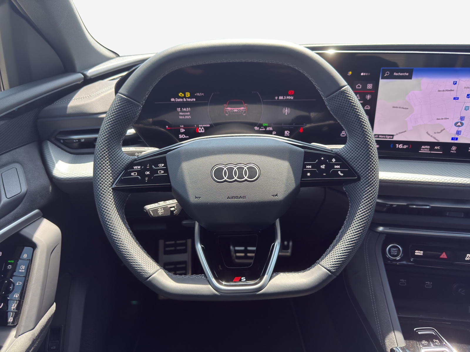 Accoudoir central à l’avant Airbag latéral à l’avant, avec airbag latéral de tête et airbag interactif à l’avant Airbag: Airbags pour conducteur et passager avant avec désactivation de l’airbag passager avant Appel d’urgence Audi connect et service avec Audi connect Remote & Control Assist: Alerte de trafic transversal à l’avant Assist: Assistant de freinage d’urgence à l’avant Assist: Assistant d’évitement de collision et de changement de direction Assist: Détecteur de distraction et de fatigue Assist: Limiteur de vitesse basé sur la reconnaissance des panneaux de signalisation Assist: Reconnaissance des panneaux de Assist: Électronique contrôle de la traction Audi connect Navigation & Infotainment Audi virtual cockpit plus Baguettes décoratives de vitres aspect aluminium Barres de toit en aluminium Boîte: automatique S tronic à 7 vitesses Ciel de pavillon en tissu, couleur gris roche Clé à télécommande sans verrouillage de sécurité Direction assistée électromécanique Décor: Aspect aluminium à l'intérieur Décor: Inserts décoratifs en structure laser noire Décor: Surfaces accentuées et touches de commande en noir mat Décor: Éléments intérieurs en haut tissu Impressum Désignation du modèle à l’arrière Garantie: 3 ans ou 100'000 km Lumière: Feux de jour avec éclairage d’assistance et fonction Coming home et Leaving home Lève-vitres électriques AV Media: Ports USB avec fonction de recharge dans la première et la deuxième rangée de sièges Mèdias: Audi phone box light Mèdias: Audi système de Sound Mèdias: Réception radio numérique Pare-brise avec isolation thermique et vitrage acoustique Portes: Ouverture confort du couvercle du coffre à bagages Programme de stabilité électronique ESP Roues: Affichage du contrôle de la pression des pneus Roues: Jantes, 10 branches Roues: Set de réparation pour les pneus Seuils de porte avec inserts en aluminium à l’avant Sièges: Fixation pour siège enfant i-Size côté passager et i-Size et Top Tether sur les sièges Sièges: Sièges avant réglables manuellement Suspension: Châssis confort Système antiblocage des roues (ABS) Système d’avertissement acoustique du véhicule Système d’échappement standard Tapis de sol à l’avant et à l’arrière Trousse de secours avec,triangle de preesignalisation et veste de signalisation Verrouillage central avec télécommande Vitres latérales et arrière athermiques Volant cuir à branches doubles avec multifonctions et palettes Volant: Volant avec application aspect chromé