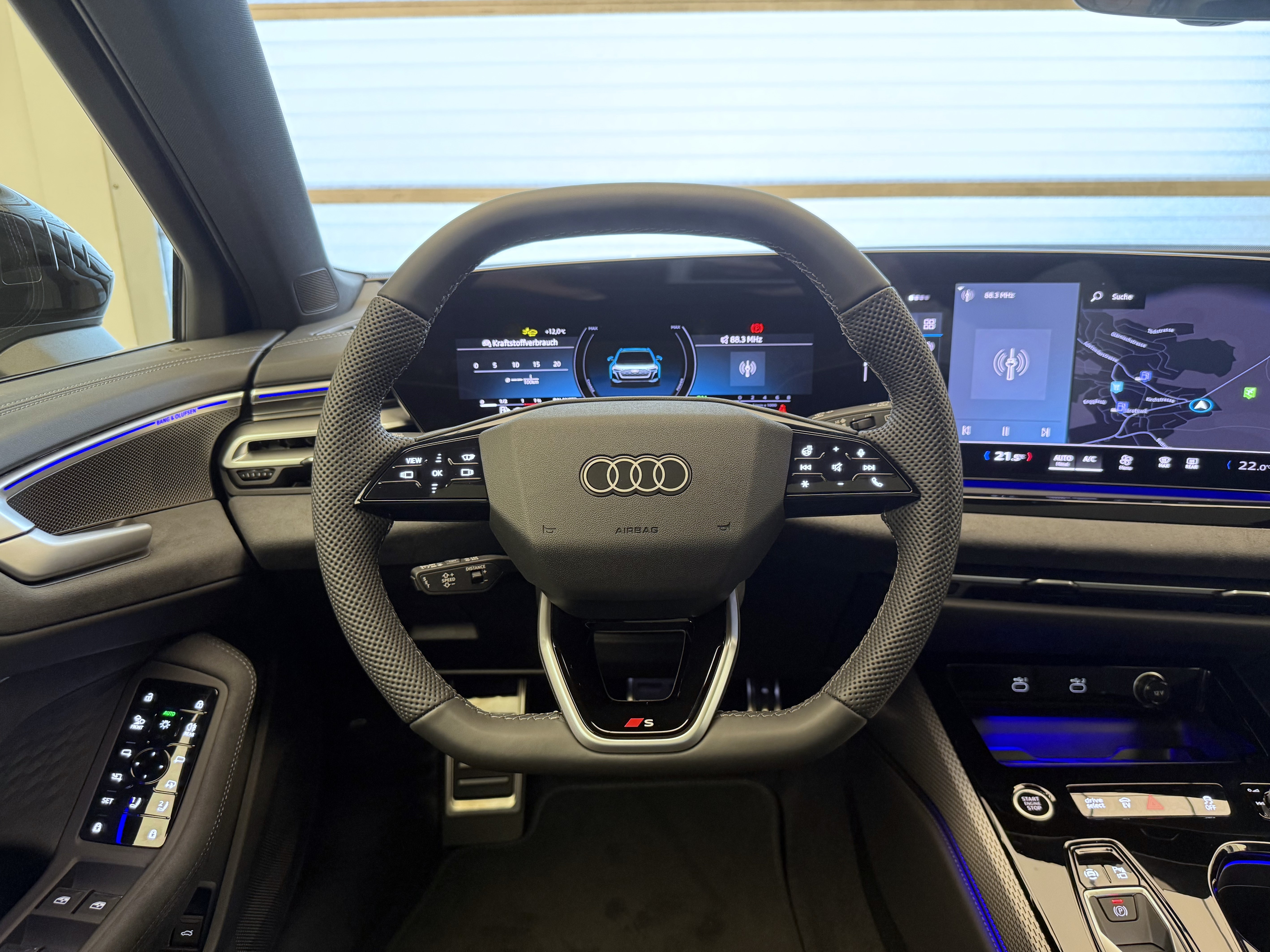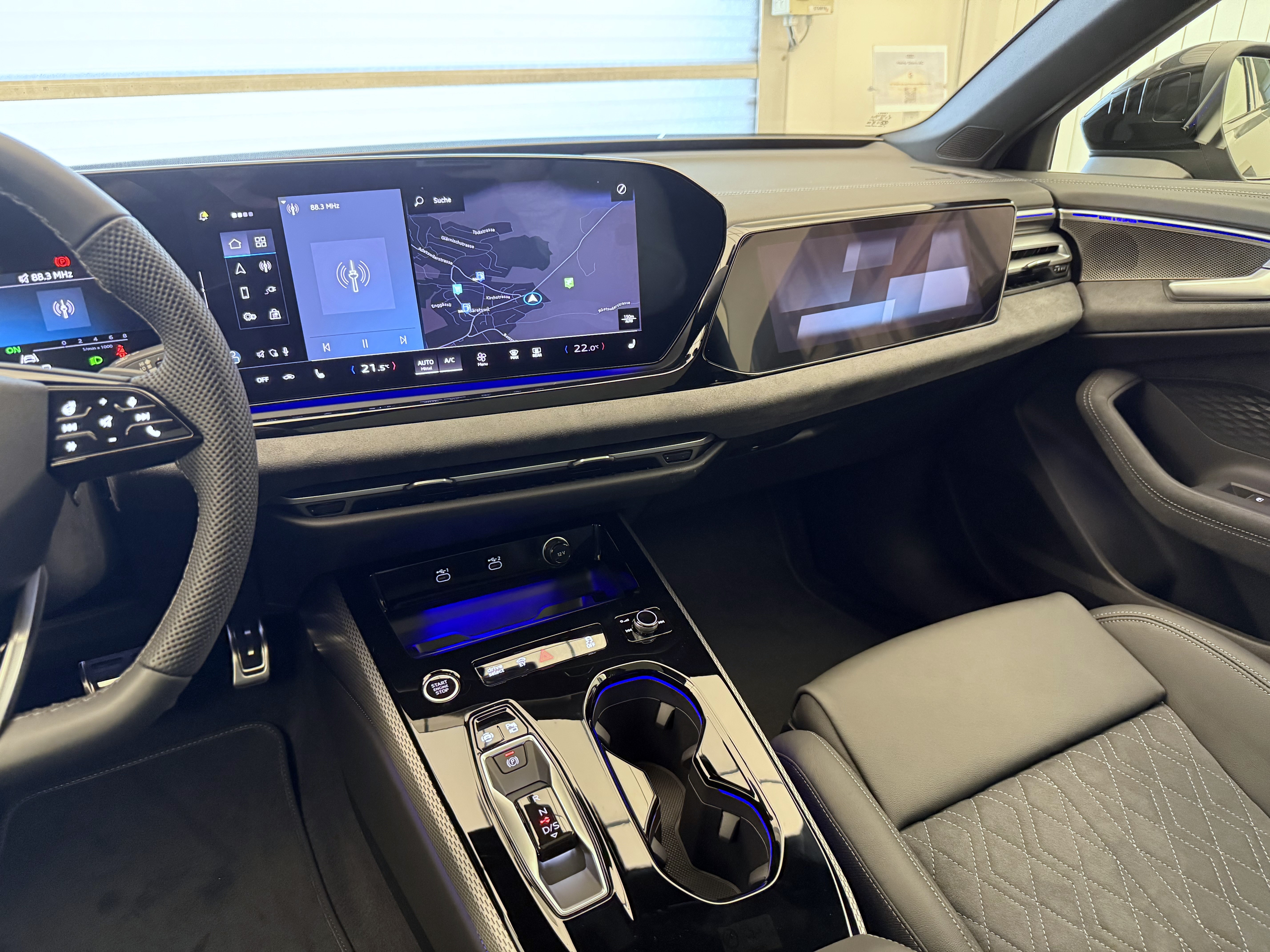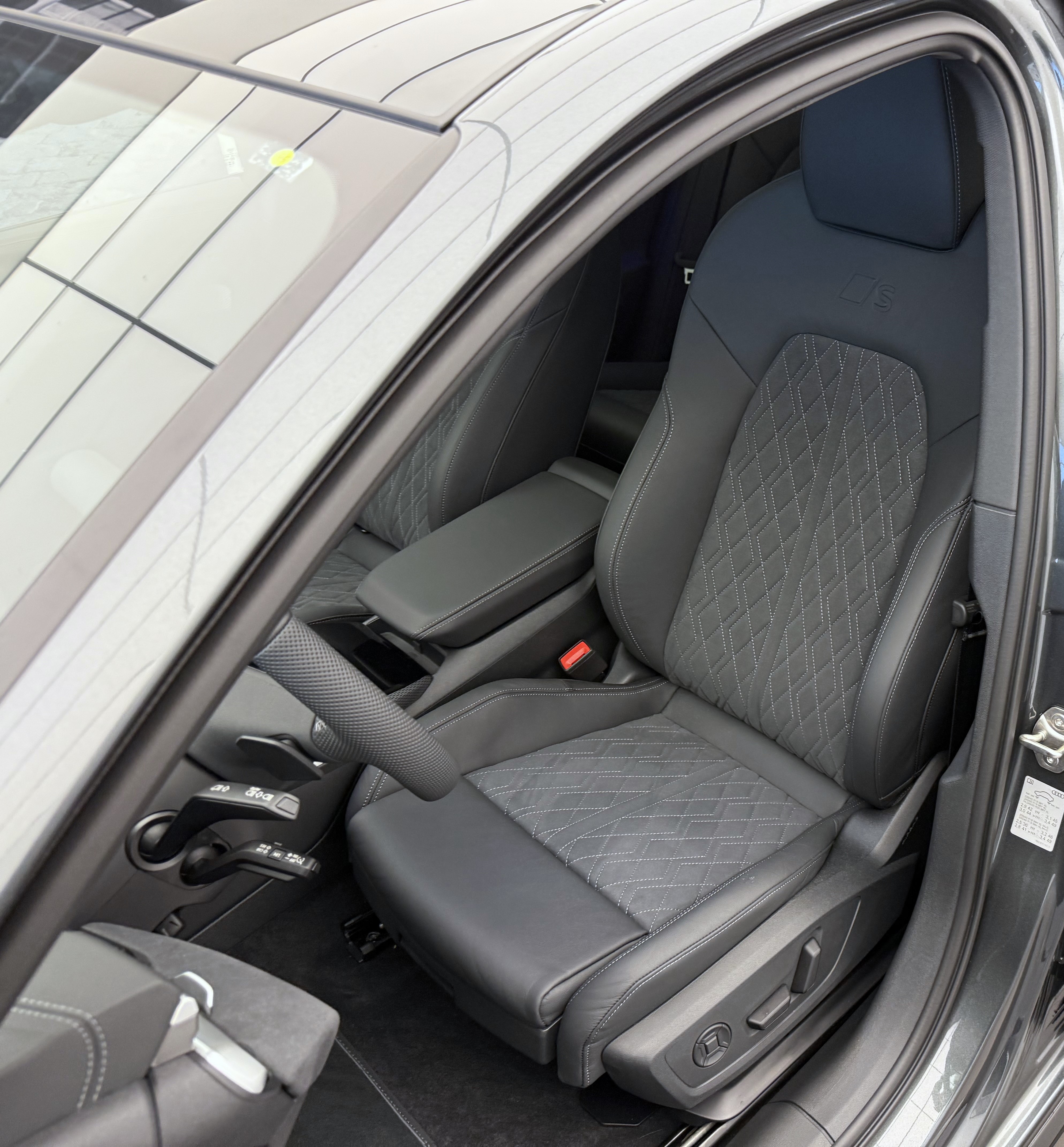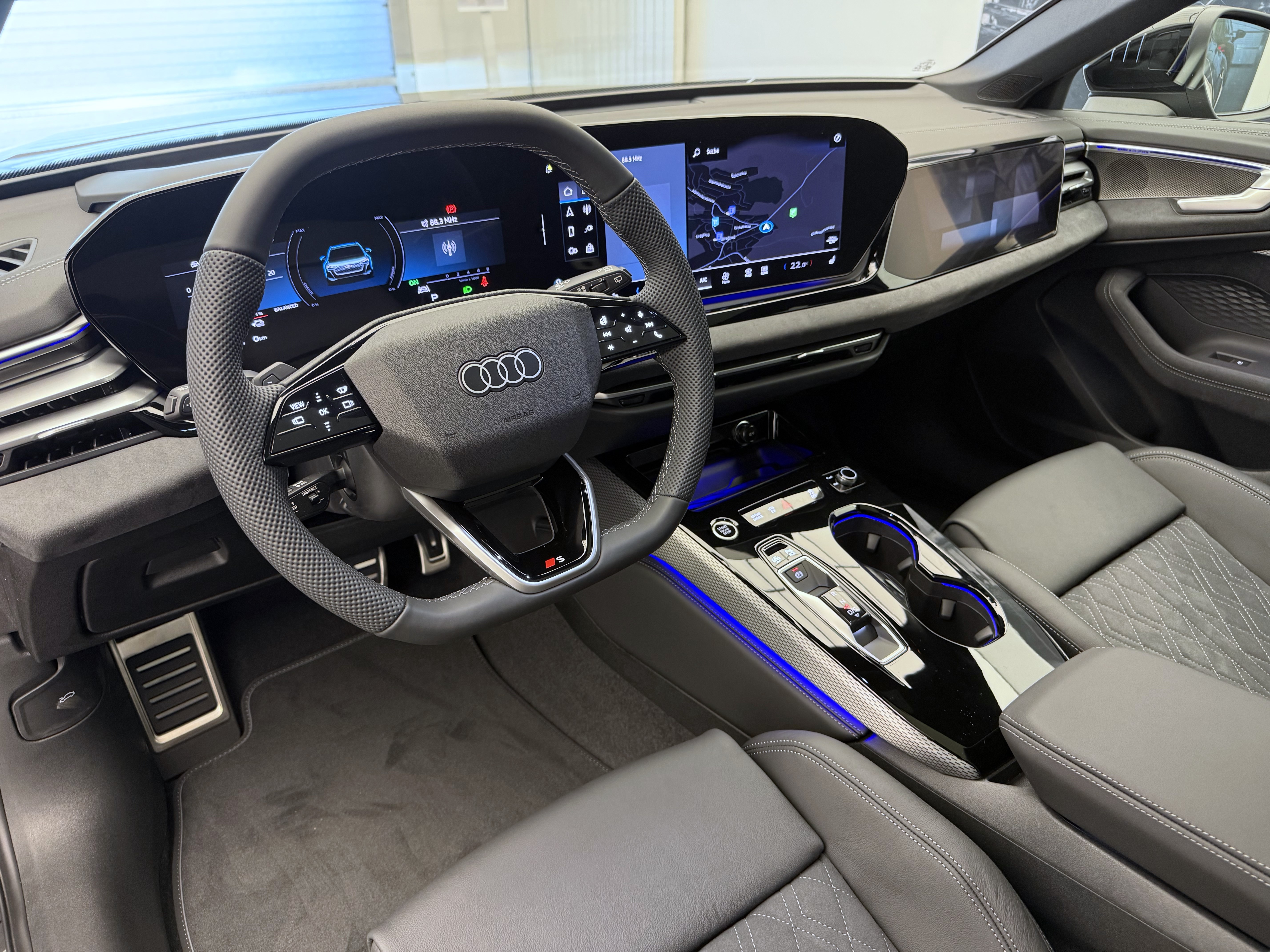Airbag: Airbag Fahrer und Beifahrer Airbag: Seitenairbags vorn, mit Kopfairbag und Interaktionsairbag vorn Assist: Ablenkungs- und Müdigkeitserkennung Assist: Adaptiver Geschwindigkeitsassistent Assist: Ausweichassistent und Abbiegeassistent Assist: Einparkhilfe plus mit Distanzanzeige Assist: Kamerabasierte Verkehrszeichenerkennung Assist: Kreuzungsassistent Assist: Notbremsassistent vorn Assist: Parkassistent plus Assist: Spurverlassenswarnung Assist: Traktionskontrolle Assist: Verkehrszeichenbasierter Geschwindigkeitsbegrenzer Audi connect Notruf & Service mit Audi connect Remote & Control Audi virtual cockpit plus Aussenspiegel Fahrerseite asphärisch, Beifahrerseite asphärisch Aussenspiegel elektrisch einstell-, beheiz- und anklappbar, beidseitig automatisch abblendend Dachhimmel in Stoff schwarz Dekor: Akzentflächen und Bedientasten schwarz glänzend Dekor: Aluminiumoptik im Interieur Dekor: Dekoreinlagen Aluminium matt gebürstet mit Linearprägung anthrazit Dekor: Interieurapplikationen Aluminiumoptik Dekor: Interieurelemente oben und unten mit Kontrastnaht Einstiegsleisten mit Aluminiumeinlagen, vorne, beleuchtet, mit S-Schriftzug Elektrische Fensterheber vorne Elektronisches Stabilitäts-Programm (ESP) Fahrwerk: Bremssättel rot lackiert Fahrwerk: S-Sportfahrwerk Frontscheibe in Wärmeschutz- und Akustikverglasung Funkschlüssel, ohne Safelock Fussmatten vorne und hinten Garantie: Audi Garantie 2 Jahre ohne Kilometerbegrenzung (ab 1. Inv.) Getriebe: 7-Stufen Automatisiertes Schaltgetriebe Innenspiegel automatisch abblendbar Kindersicherung, elektrisch Klima: 3-Zonen-Klimatisierungsautomatik Komfortmittelarmlehne vorne Lackierung: Uni-Lackierung Ladekabel Mode 3 für öffentliches Laden bis 22 kW Lenkrad: Lenkradapplikation Chromoptik, S-Emblem, Lenkradgriffe perforiertes Leder und Kontrastnaht Lenkrad: Lenkradeinstellung manuell Lenkrad: Sportlederlenkrad, 3-Speichen, oben und unten abgeflacht mit Multifunktion und Schaltwippen Licht: Fernlicht-Assistent Licht: LED-Heckleuchten pro Licht: LED-Scheinwerfer plus Licht: Tagesfahrlicht mit Assistenzfahrlicht u.Coming- u. Leaving-home Funktion automatisch Media: Audi Application Store und Smartphone-Interface Media: Audi connect Navigation & Infotainment Media: Digitaler Radioempfang Media: FOD Funktionen online verfügbar Media: MMI experience plus Media: Navigationsgerät-High Media: USB-Anschlüsse mit Ladefunktion in erster und zweiter Sitzreihe Modellbezeichnung am Heck Paket: Ambiente Lichtpaket plus Paket: Assistenzpaket Fahren und Parken Paket: Exterieur Optikpaket schwarz Paket: Klimatisierungspaket Pedalerie und Fussstütze in Edelstahl Polster: Mikrofaser Dinamica/Leder-Kombination mit Rautensteppung und S-Prägung Räder: Radschrauben Standard Räder: Reifendruck-Kontrollanzeige Räder: Reifenreparatur-Set (Tire Fit) Räder: Räder, 5-Arm-Aero, schwarz, glanzgedreht Scheiben seitlich und hinten in Wärmeschutzverglasung Schlüssel für Schliesssystem mit Fernbedienung Sitze: 4-Wege-Lendenwirbelstütze für die Vordersitze Sitze: Kindersitzbefestigung i-Size auf der Beifahrerseite und i-Size und Top Tether Sitze: Sitzbelegungserkennung Sitze: Vordersitze elektrisch verstellbar Sitze: Vordersitze heizbar Sonnenschutzverglasung, abgedunkelt Stossfänger S-line mit Kühlerschutzgitter und Diffusor in Phantomschwarz, Türen: Gepäckraumklappe elektrisch öffnend und schliessend Verbandmaterial,Warndreieck und Warnveste Wegfahrsperre elektronisch