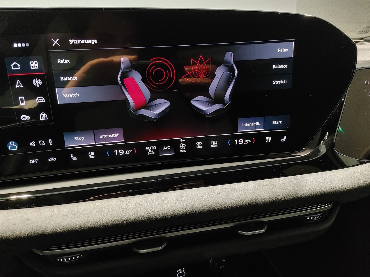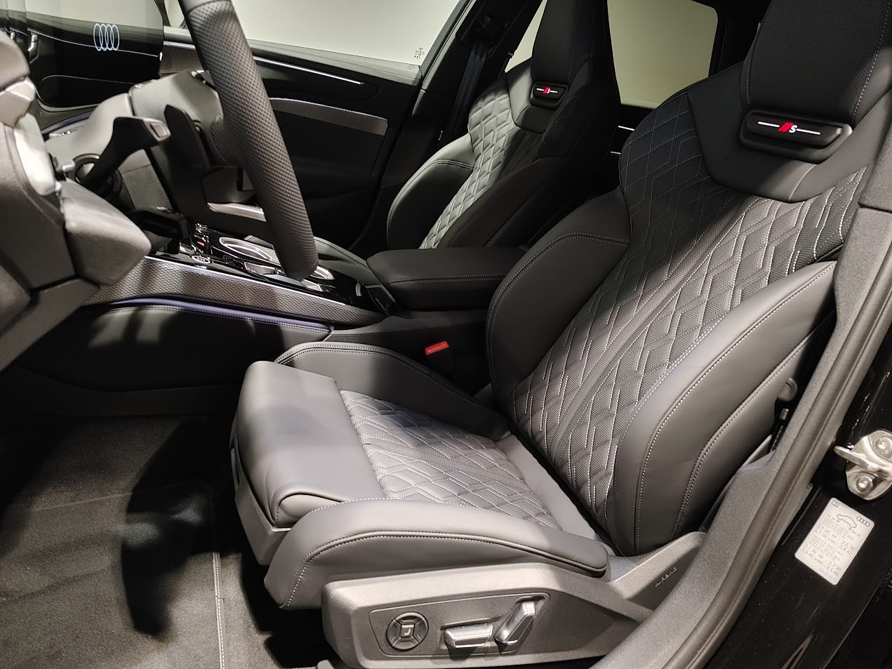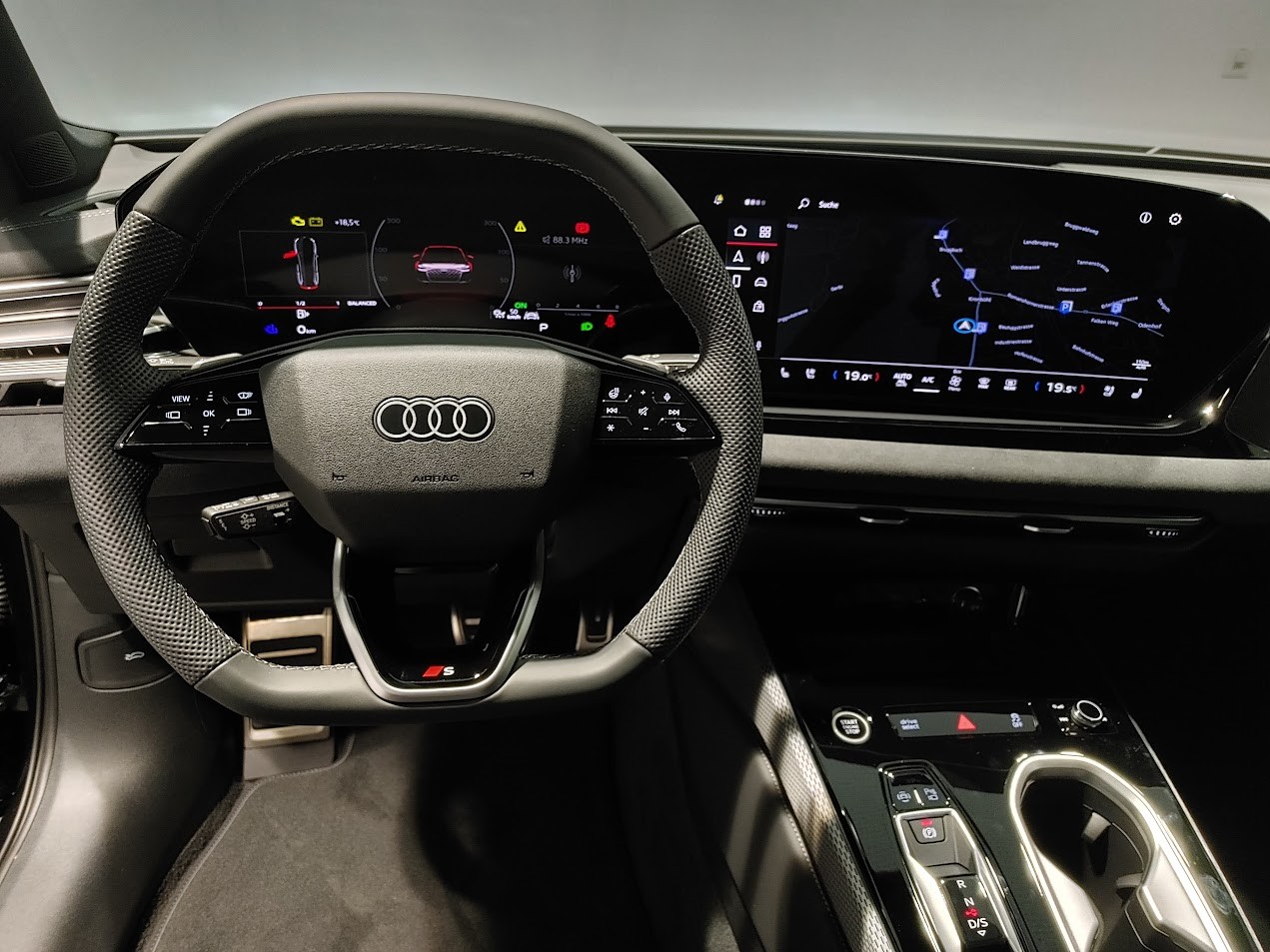 Airbag latéral à lavant et à larrière, avec airbag latéral de tête et airbag interactif à lavant Assist: Spurverlassenswarnung inkl. Notfallassistent Attelage pour remorque orientable mécaniquement Audi Garantie: 5 ans ou 100'000 km Fahrwerk: Bremssättel rot lackiert Media: Bang & Olufsen Premium Soundsystem mit 3D Klang Media: LTE-Unterstützung für Audi phone box Pack: Pack Extérieur noir Roues: Jantes, 5 branches, gris Platine Suppression de la désignation du modèle Suspension: Châssis Sport S Suspension: adaptive air suspension Vitrage de contrôle solaire, obscurci