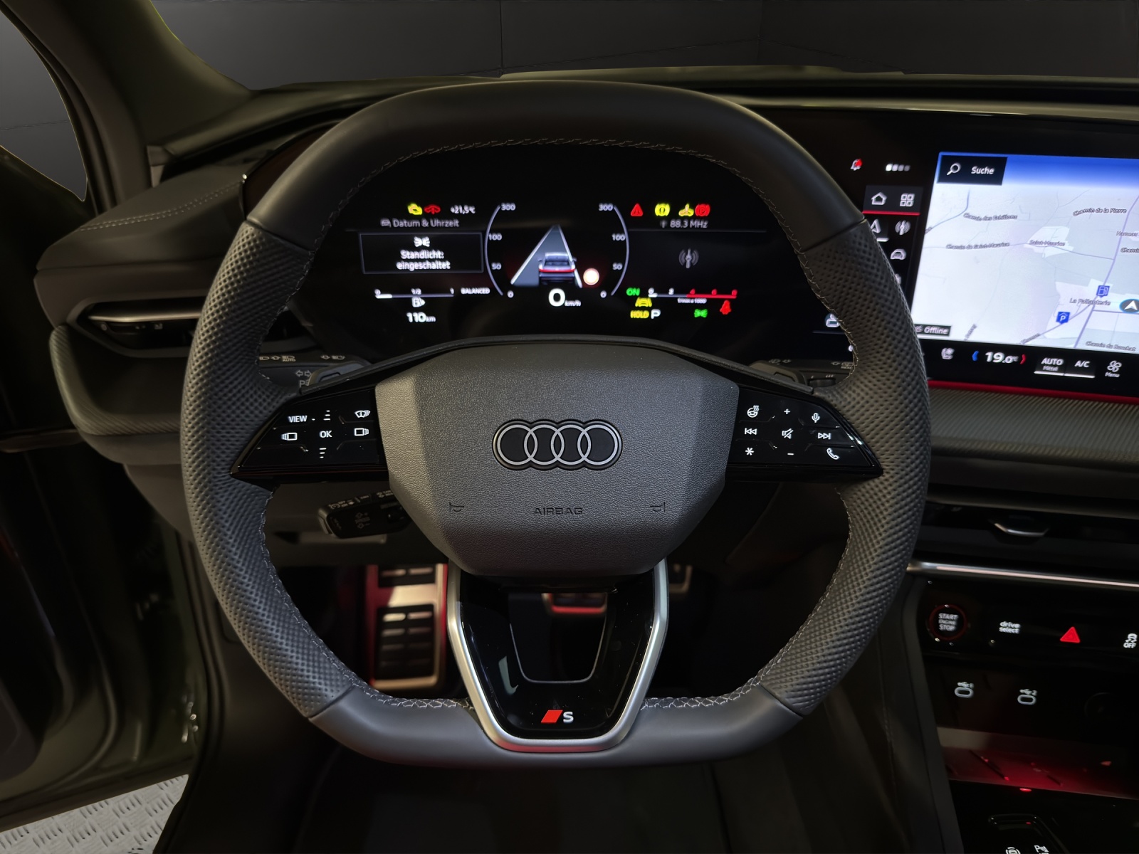 Assist: Assistant de conduite adaptatif plus Boîtier de rétroviseur extérieur en noir Décor: Application décorative dans une structure en carbone microsergé Fahrwerk: Adaptives S-Luftfederfahrwerk Garantie: Audi Garantie: 5 Jahre oder 100'000 km (ab 1. Inv.) Komfortschlüssel ohne Safelock Lackierung: Metallic-Lackierung Lumière: Éclairage confort montée et descente Pack: Intérieur S avec sièges sport, cuir noir Pack: Pack Extérieur noir Pack: Pack Premium experience SQ5 et Q5 e-hybrid 270 kW Pack: Pack éclairage dambiance pro Pare-brise acoustique au confort climatique, dégivrant sans fil Peinture: Peinture intégrale Roues: Jantes Audi Sport, design à 5 branches doubles, noir métallisé Sitze: Fahrersitz und Aussenspiegel mit Memoryfunktion Sitze: Sitzbelüftung vorne Vitrage de contrôle solaire, obscurci