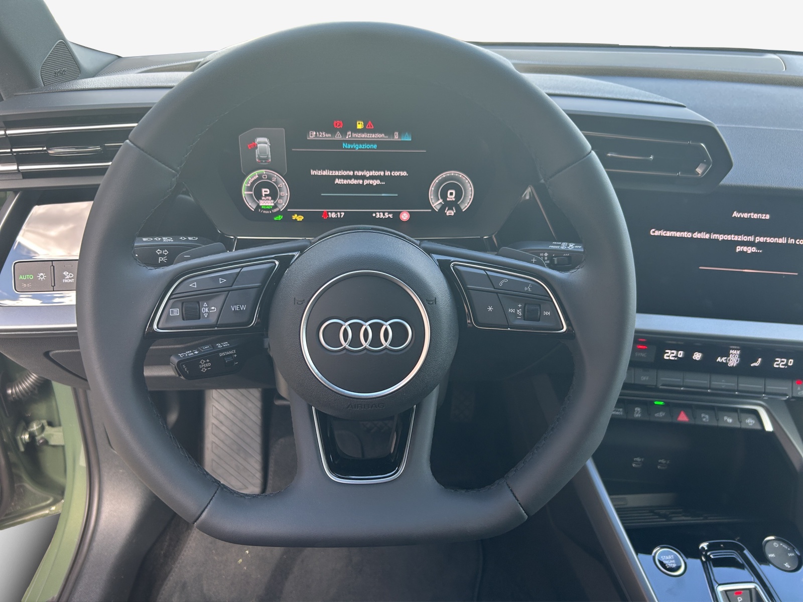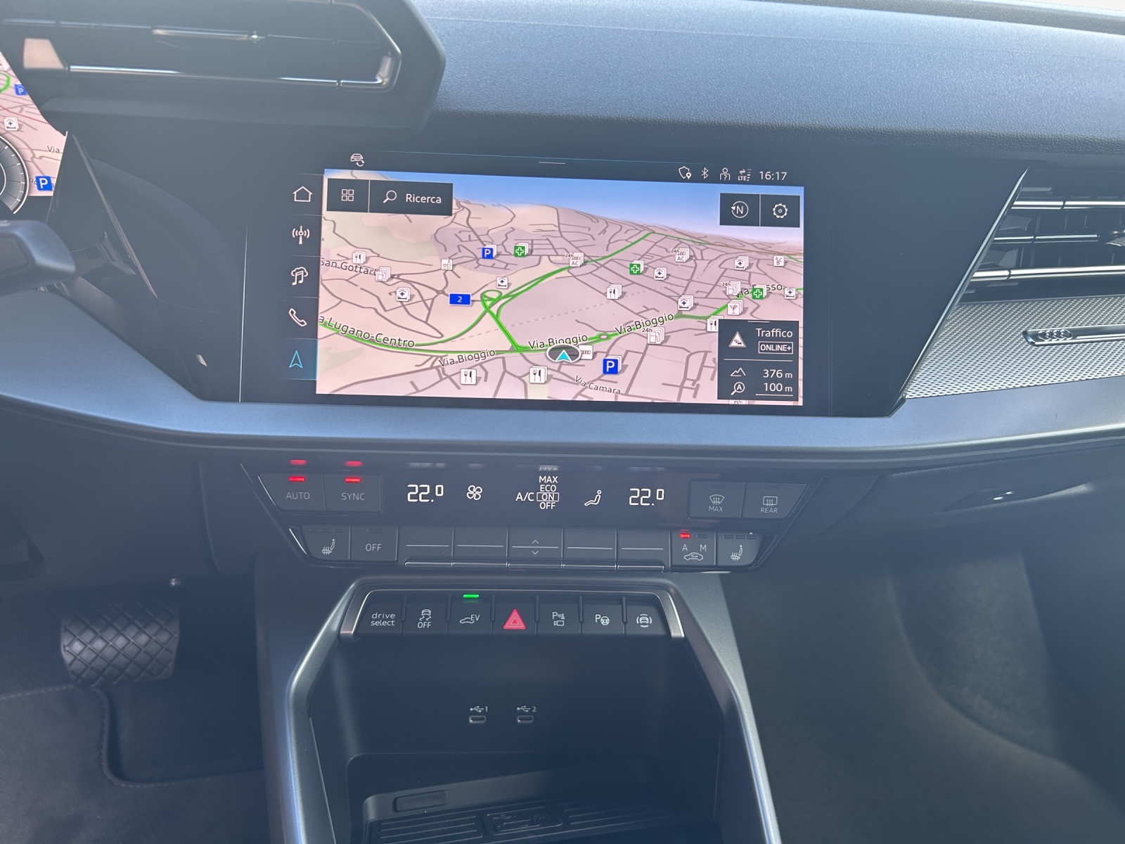 Airbag: Airbag Beifahrer deaktivierbar Assist: Adaptiver Geschwindigkeitsassistent Assist: Audi pre sense front Assist: Ausweichassistent und Abbiegeassistent Assist: Kamerabasierte Verkehrszeichenerkennung Assist: Parklenkassistent IPA (Intelligent Park Assist) Assist: Proaktiver Insassenschutz Front, Seite und Heck Assist: Spurverlassenswarnung inkl. Notfallassistent Assist: Traktionskontrolle Audi connect Notruf & Service mit Audi connect Remote & Control Aussenspiegel in Wagenfarbe Dekor: Dekoreinlage Feinlack vulkangrau Einleger der Lufteinlässe in Selenitsilber Einleger im Diffusor in Selenitsilber Elektrische Fensterheber vorne Elektronisches Stabilitäts-Programm (ESP) Fahrwerk: Anpassung Bremsanlage Fensterschachtleisten in Schwarz Frontscheibe in Wärmeschutzverglasung Garantie: 2 Jahre ohne Kilometerbegrenzung (ab 1. Inv.) Getriebe: 7-Gang- Automat S tronic Haushaltsstecker Typ J (Schweiz) für das e-tron Ladesystem Industriestecker CEE 16A, 400V, lang und gerade für das e-tron Ladesystem Interieur mit Normalsitzen in Stoff schwarz Kindersicherung, elektrisch Klima: 1-Zonen-Klimaautomatik mit Vorbereitung für weitere Klimafunktionen Klima: Standklimatisierung Komfortschlüssel ohne Safelock Kühlerschutzgitter in Titanschwarz Lackierung: Uni-Lackierung Ladekabel Mode 3 für öffentliches Laden 11 kW Lenkrad: Lederlenkrad im 3-Speichen-Design mit Multifunktion plus und Schaltwippen Media: Audi Application Store und Smartphone-Interface Media: Audi connect Navigation & Infotainment plus Media: LTE-Unterstützung für Audi phone box Media: USB-Anschlüsse mit Ladefunktion im Fond Paket: Ablagen- und Gepäckraumpaket Paket: Ambiente Lichtpaket Paket: Assistenzpaket Fahren und Parken plus Paket: Infotainmentpaket Connectivity Räder: Reifendruck-Kontrollanzeige Räder: Reifenreparatur-Set (Tire Fit) Sitze: Kindersitzbefestigung i-Sitze-konform auf Beifahrerseite und äusseren Fondsitzen, Sitze: Rücksitzlehne umklappbar Sitze: i-Size und Top Tether für die äusseren Fondsitze Wegfahrsperre elektronisch Zentralverriegelung mit Fernbedienung e-tron Ladesystem kompakt
