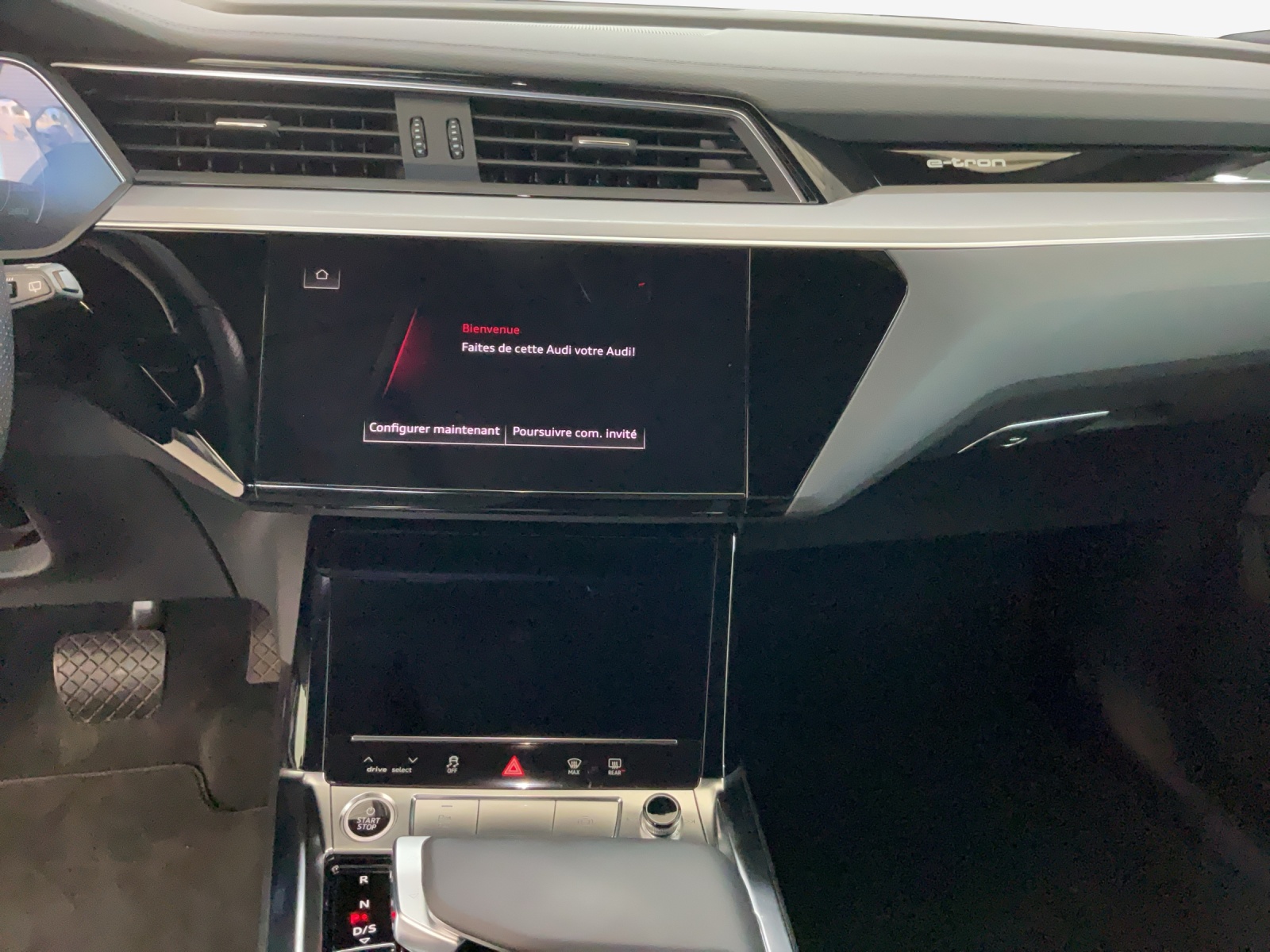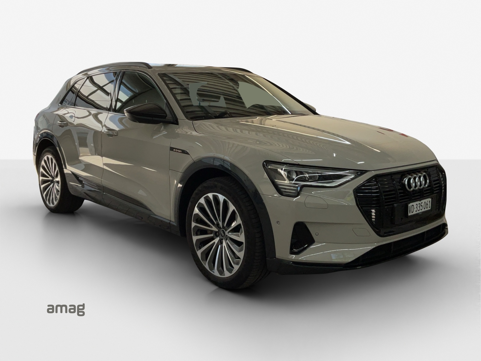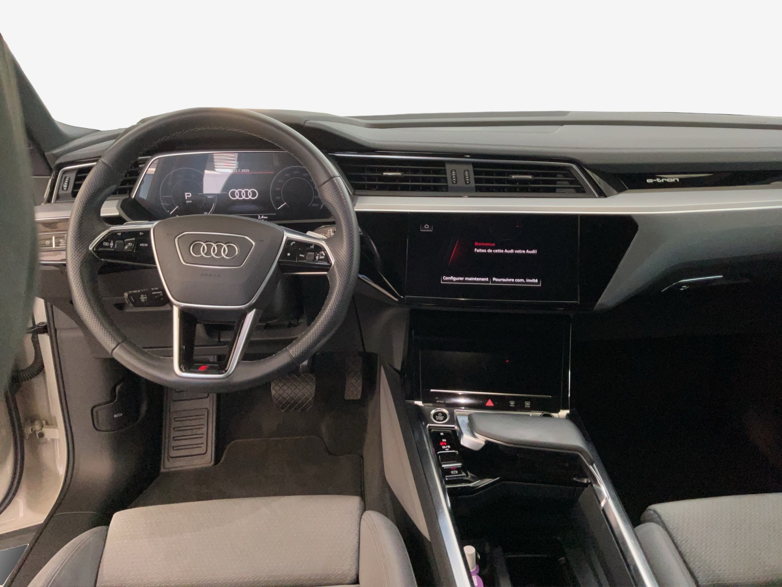 Aide au stationnement plus avec affichage de l’environnement Airbag: Airbag passager désactivable Airbag: Airbags rideaux pour la tête Airbag: Seitenairbags vorne Appel d’urgence Audi connect et service avec Audi connect Remote & Control Assist: Audi pre sense front Assist: Geschwindigkeitsregelanlage inklusive Geschwindigkeitsbegrenzer Audi connect Navigation & Infotainment Aussenspiegel elektrisch einstell- und beheizbar Avrtissement du franchissement de voie Chargeur embarqué jusqu'a 11 kW (AC) Clima: Climatisation à l’arrêt Climat: climatisation automatique confort 2 zones Câble de recharge, mode 3, 22 kW Dispositif anti-encastrement en retrait à l’avant et diffuseur à l’arrière en argent Sélénite mat Dossier siège arrière rabattable Décor: Applications décoratives en vernis fin gris graphite Désignation du modèle et dénomination de la puissance/technologie Fixation du siège enfant ISOFIX et Top Tether pour la banquette arrière Garantie: 2 ans / kilométrage illimité Garniture de toit en tissu noir Jantes en alliage léger Design à 5 branches Kindersitzvorrichtung ISOFIX Beifahrerseite Licht: Scheinwerfer-Reinigungsanlage Longueur du câble de recharge standard Lumière: Phares LED avec préparation pour d’autres fonctions d’éclairage et feux arrière LED Masquer soleil conducteur et passager avec miroir éclairé Media: Bluetooth interface Media: Récepteur digitale de la radio (DAB) Pare-brise avec isolation thermique et vitrage acoustique Pare-chocs advanced en peinture de contraste Peinture: Bottom line dans une couleur contrastée Prise de courant 12 volts Prise domestique de type J (CH) Prise industrielle CEE 16A, 400V, longue et droite pour le système de charge e-tron Programme électronique de la stabilité (ESP) Roues: Affichage du contrôle de la pression des pneus Roues: Set de réparation pour les pneus Rétroviseur intérieur réglable jour/nuit automatique Rétroviseurs extérieurs en couleur de la carrosserie Seuils de porte avec inserts en aluminium à l’avant et à l’arrière Sitze: Vordersitze höhenverstellbar Suspension: adaptive air suspension Système de navigation MMI Plus Système de recharge compact e-tron Système d’avertissement acoustique du véhicule (AVAS) Tapis à l'avant et à l'arrière Touches de commande en noir mat Trousse de premiers secours et triangle Volant cuir à branches doubles avec multifonctions et palettes