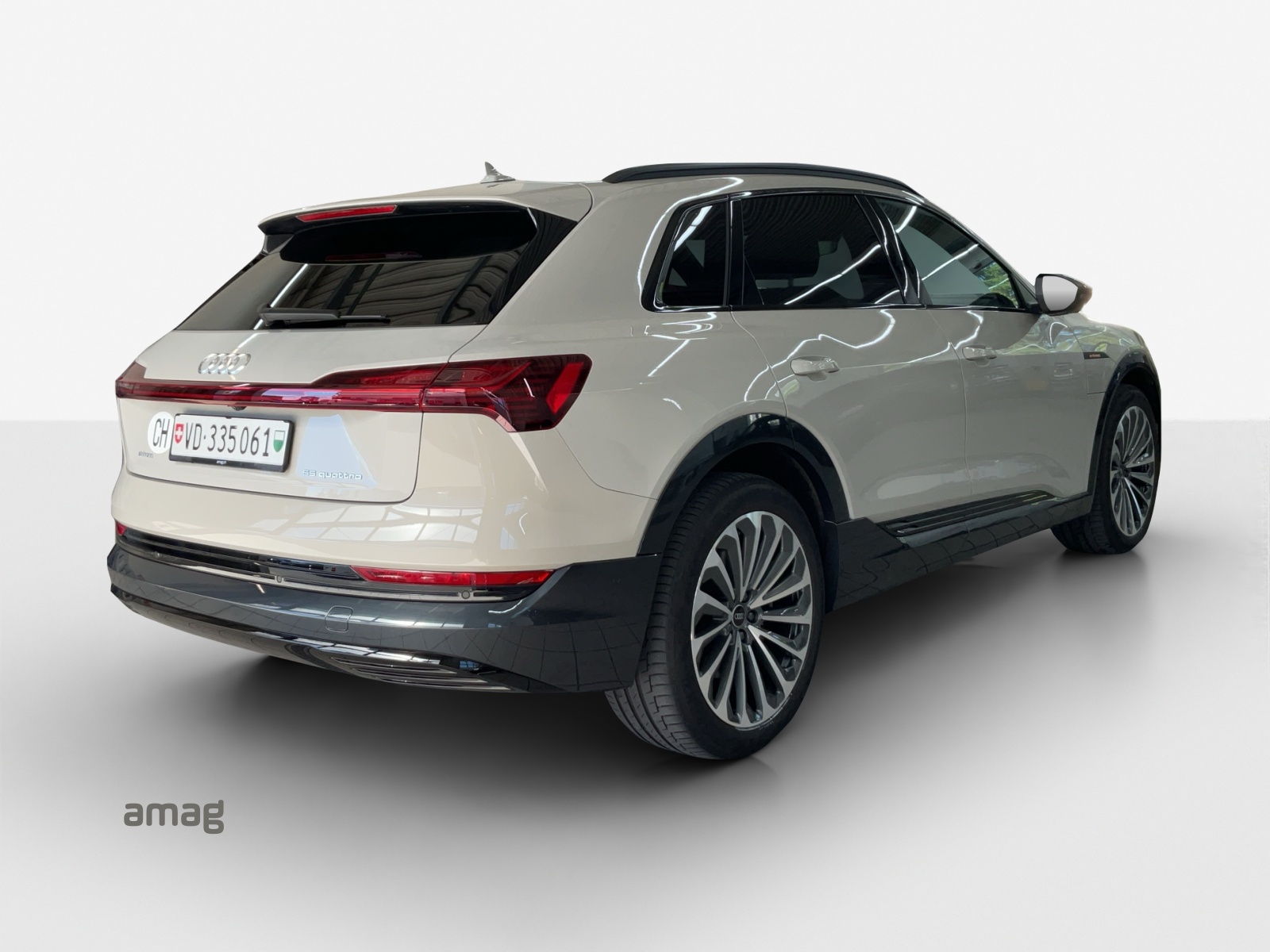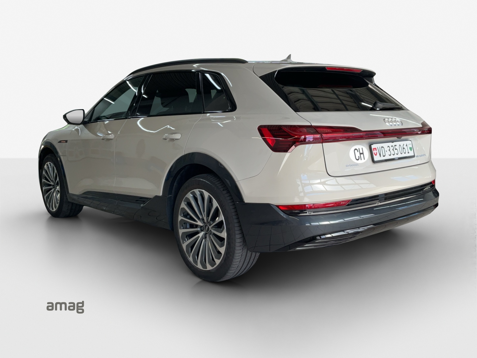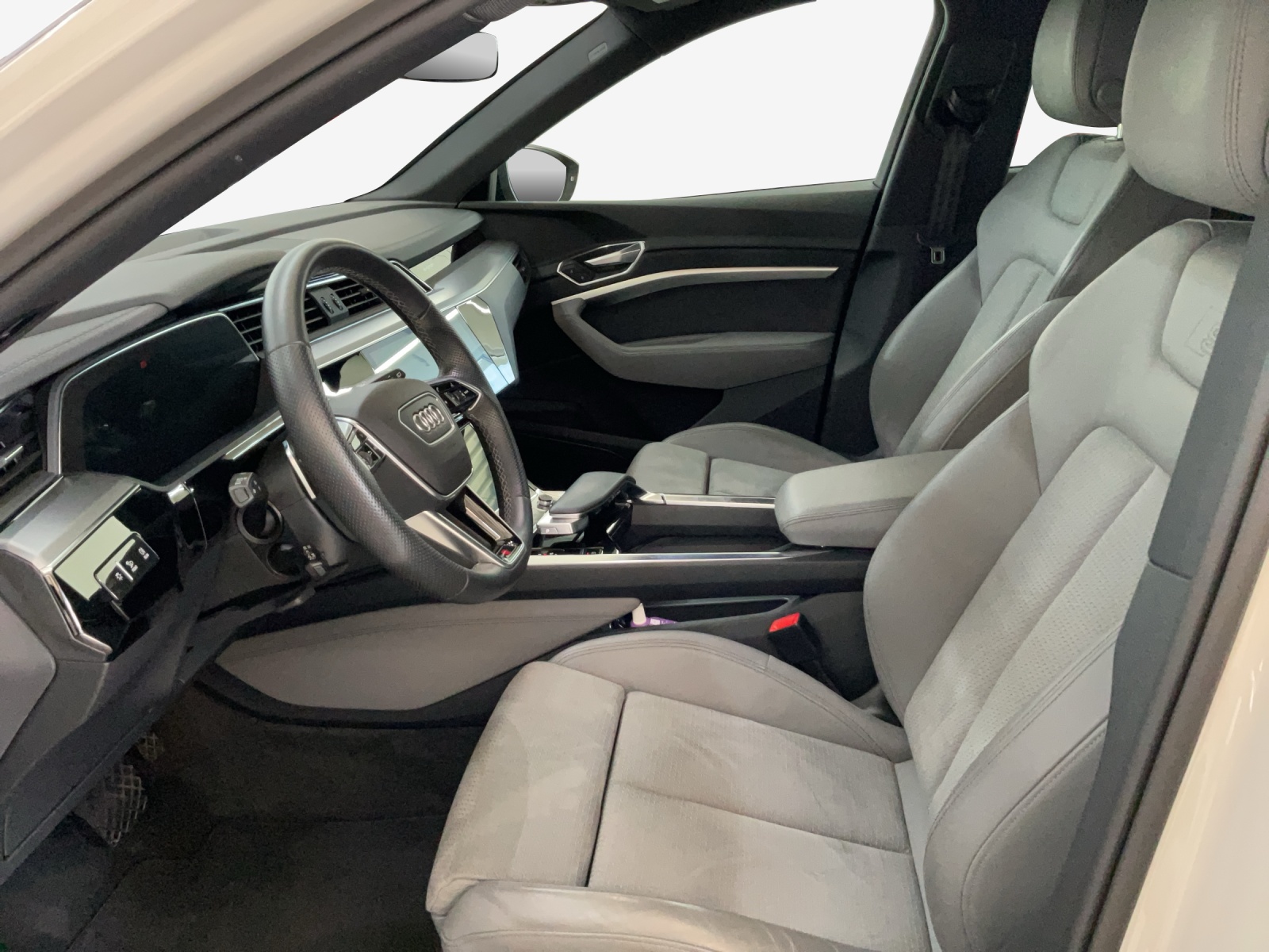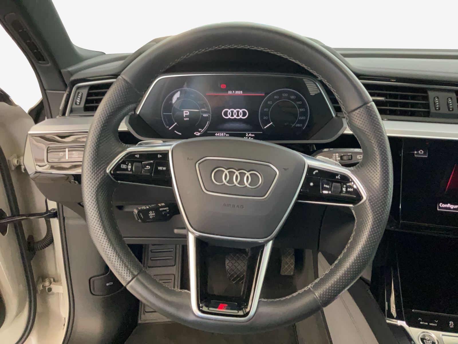 Aide au stationnement plus avec affichage de l’environnement Airbag: Airbag passager désactivable Airbag: Airbags rideaux pour la tête Airbag: Seitenairbags vorne Appel d’urgence Audi connect et service avec Audi connect Remote & Control Assist: Audi pre sense front Assist: Geschwindigkeitsregelanlage inklusive Geschwindigkeitsbegrenzer Audi connect Navigation & Infotainment Aussenspiegel elektrisch einstell- und beheizbar Avrtissement du franchissement de voie Chargeur embarqué jusqu'a 11 kW (AC) Clima: Climatisation à l’arrêt Climat: climatisation automatique confort 2 zones Câble de recharge, mode 3, 22 kW Dispositif anti-encastrement en retrait à l’avant et diffuseur à l’arrière en argent Sélénite mat Dossier siège arrière rabattable Décor: Applications décoratives en vernis fin gris graphite Désignation du modèle et dénomination de la puissance/technologie Fixation du siège enfant ISOFIX et Top Tether pour la banquette arrière Garantie: 2 ans / kilométrage illimité Garniture de toit en tissu noir Jantes en alliage léger Design à 5 branches Kindersitzvorrichtung ISOFIX Beifahrerseite Licht: Scheinwerfer-Reinigungsanlage Longueur du câble de recharge standard Lumière: Phares LED avec préparation pour d’autres fonctions d’éclairage et feux arrière LED Masquer soleil conducteur et passager avec miroir éclairé Media: Bluetooth interface Media: Récepteur digitale de la radio (DAB) Pare-brise avec isolation thermique et vitrage acoustique Pare-chocs advanced en peinture de contraste Peinture: Bottom line dans une couleur contrastée Prise de courant 12 volts Prise domestique de type J (CH) Prise industrielle CEE 16A, 400V, longue et droite pour le système de charge e-tron Programme électronique de la stabilité (ESP) Roues: Affichage du contrôle de la pression des pneus Roues: Set de réparation pour les pneus Rétroviseur intérieur réglable jour/nuit automatique Rétroviseurs extérieurs en couleur de la carrosserie Seuils de porte avec inserts en aluminium à l’avant et à l’arrière Sitze: Vordersitze höhenverstellbar Suspension: adaptive air suspension Système de navigation MMI Plus Système de recharge compact e-tron Système d’avertissement acoustique du véhicule (AVAS) Tapis à l'avant et à l'arrière Touches de commande en noir mat Trousse de premiers secours et triangle Volant cuir à branches doubles avec multifonctions et palettes