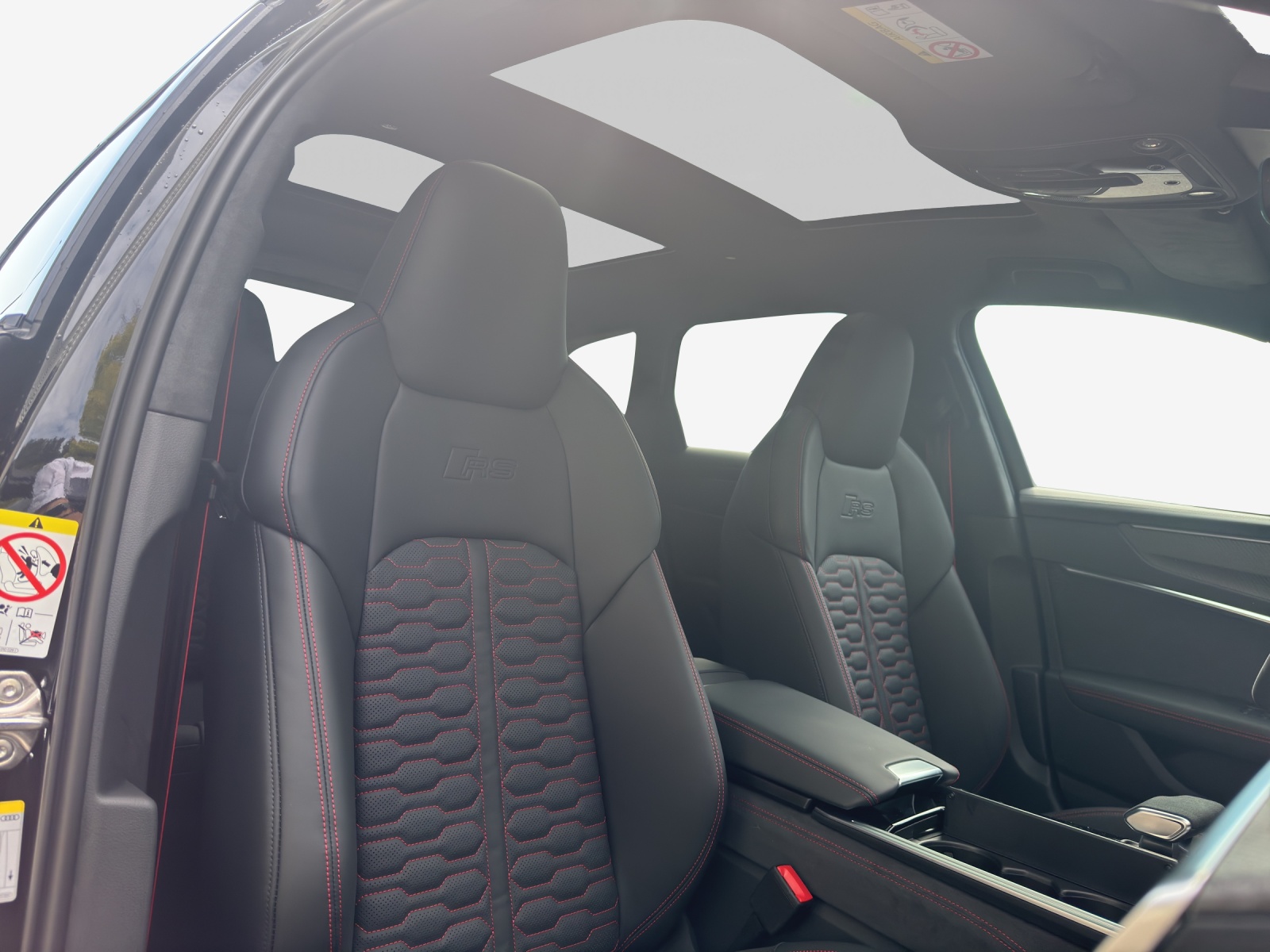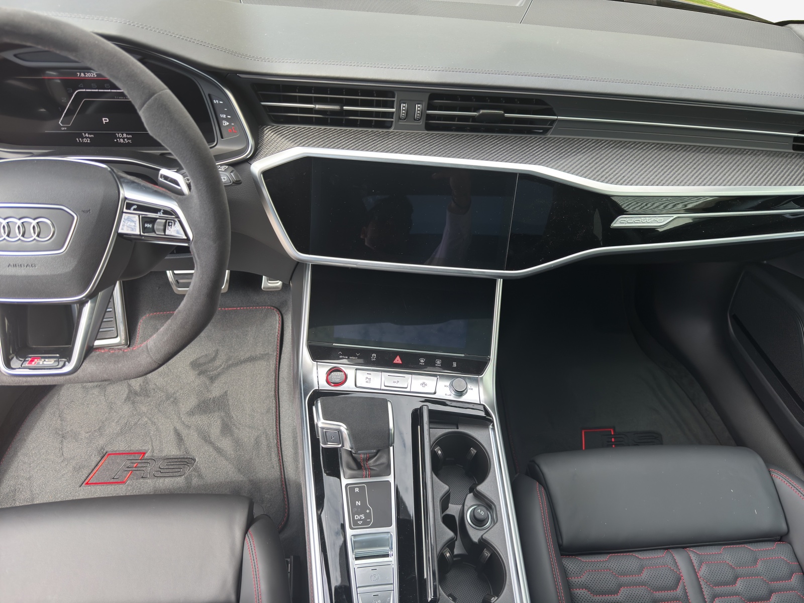 Anhängevorrichtung inklusive Anhängerassistent Audi Ringe und Schriftzüge in Schwarz glänzend Audi virtual cockpit plus mit zusätzlichem RS-Layout Dachhimmel in Alcantara schwarz Dekor: Dekoreinlagen Carbon Köper Struktur Fahrwerk: RS-Sportfahrwerk plus mit Dynamic Ride Control (DRC) Frontscheibe in Klimakomfort-/Akustikverglasung, beheizbar Klima: Standheizung und -lüftung (ohne Funkfernbedienung) Komfortschlüssel mit sensorgesteuerter Gepäckraumentriegelung Lackierung: Metallic-Lackierung Media: Audi Application Store und Smartphone-Interface Media: USB-Anschlüsse mit Ladefunktion im Fond Paket: Assistenzpaket plus Paket: Optikpaket schwarz glänzend Paket: RS-Designpaket rot Panorama-Glasdach 2-teilig Privacy-Verglasung (Scheiben abgedunkelt) RS-Stahlbremsanlage mit Bremssätteln in Rot glänzend Räder: Leichtmetallräder 22 Zoll im 5-Y-Speichen-Design in schwarz matt Schienensystem im Laderaum mit Fixierset Sitze: RS-Sportsitze vorn in Leder Valcona Sitze: Sitzheizung vorne und hinten Türen: Servoschliessung für die Türen