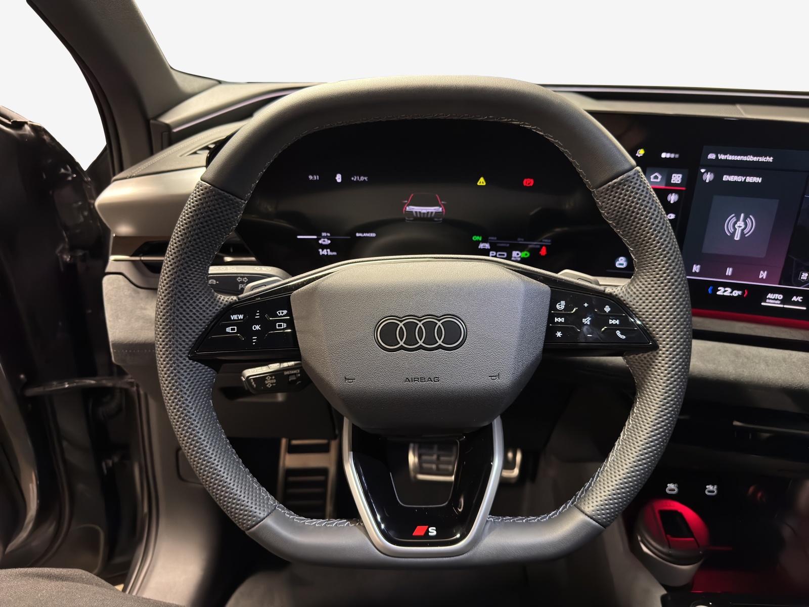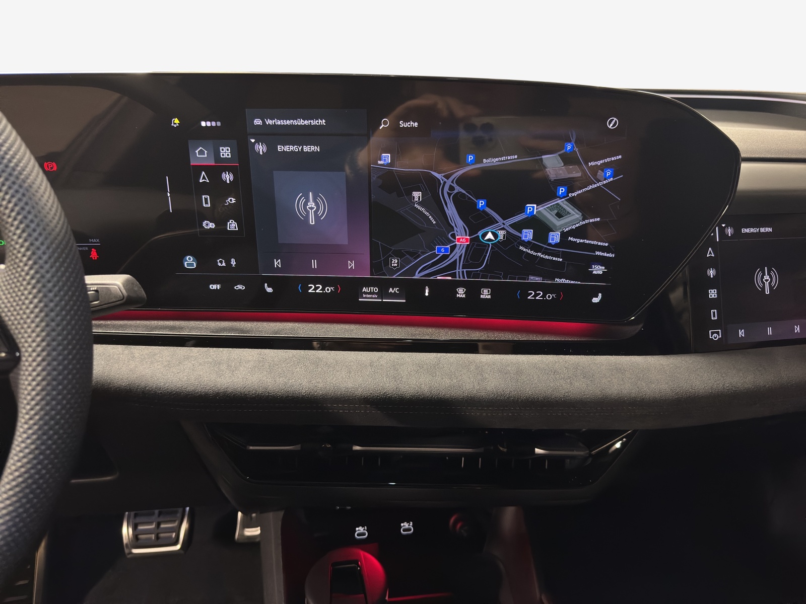 Airbag: Airbag Beifahrer deaktivierbar Airbag: Airbag Fahrer und Beifahrer Airbag: Seitenairbag vorn, mit Kopfairbag und Interaktionsairbag vorn Akustisches Fahrzeug-Warnsystem (AVAS) Assist: Adaptiver Geschwindigkeitsassistent Assist: Aufmerksamkeits- und Müdigkeitserkennung Assist: Ausweichassistent und Abbiegeassistent Assist: Einparkhilfe plus mit Distanzanzeige Assist: Kamerabasierte Verkehrszeichenerkennung Assist: Kreuzungsassistent Assist: Notbremsassistent vorn Assist: Parkassistent plus Assist: Spurverlassenswarnung Assist: Spurwechsel- und Ausstiegswarnung, Querverkehrassistent hinten und Abbiegeassistent hinten Assist: Traktionskontrolle Assist: Verkehrszeichenbasierter Geschwindigkeitsbegrenzer Audi connect Notruf & Service mit Audi connect Remote & Control Audi virtual cockpit plus Aussenspiegel elektrisch einstell-, beheiz- und anklappbar, beidseitig automatisch abblendend Aussenspiegel in Wagenfarbe Dachhimmel Stoff, Farbe felsgrau Dekor: Dekoreinlage Feinlack vulkangrau Dekor: Instrumententafel-Oberseite schwarz mit Kontrastnaht Dekor: Interieurelemente oben und unten Kunstleder Einstiegsleisten mit Aluminiumeinlegern vorn Elektrische Fensterheber vorne Elektronisches Stabilitäts-Programm (ESP) Fahrwerk: Komfortfahrwerk Fensterzierleisten schwarz Fussmatten vorne und hinten Garantie: Audi Garantie 2 Jahre ohne Kilometerbegrenzung (ab 1. Inv.) Garantie: Audi Swiss Service Package + (ASSP+) Getriebe: Direktantrieb, kein Getriebe Innenspiegel automatisch abblendbar Interieur mit Normalsitzen, Stoff schwarz Klima: 3-Zonen-Klimatisierungsautomatik Klima: Automatische Umluftregelung Klima: Elektrische Luftzusatzheizung Komfortmittelarmlehne vorne Komfortschlüssel ohne Safelock Lackierung: Kontrastlackierung Lackierung: Uni-Lackierung Magnetgrau Ladekabel Mode 3 für öffentliches Laden bis 22 kW Ladeleistung bis 270 kW (DC) Lenkrad: Doppelspeichen-Lederlenkrad mit Multifunktion und Schaltwippen Lenkrad: Lenkrad längs- und höhenverstellbar Lenkrad: Lenkrad mit Applikation in Chromoptik Lenkrad: Lenkradapplikation Chromoptik Licht: Fernlicht-Assistent Licht: LED-Heckleuchten pro Licht: LED-Scheinwerfer plus Licht: Projektionsleuchte in den Aussenspiegeln Licht: Tagesfahrlicht mit Assistenzfahrlicht u.Coming- u. Leaving-home Funktion automatisch Media: Audi Application Store und Smartphone-Interface Media: Audi connect Navigation & Infotainment Media: Digitaler Radioempfang Media: FOD Funktionen online verfügbar Media: MMI experience plus Media: Telefonablage mit induktiver Ladefunktion Media: USB-Anschlüsse mit Ladefunktion in erster und zweiter Sitzreihe Modellkennzeichnung am Heck On-board-Ladegerät bis 11 kW (AC) Paket: Ambiente Lichtpaket Paket: Klimatisierungspaket Winter Räder: Reifendruck-Kontrollanzeige Räder: Reifenreparatur-Set (Tire Fit) Räder: Räder, 10-Speichen Scheiben seitlich und hinten in Wärmeschutzverglasung Scheinwerfer-Reinigungsanlage Sitze: Kindersitzbefestigung i-Size auf der Beifahrerseite und i-Size und Top Tether Sitze: Rücksitzbank ungeteilt, Lehne geteilt umlegbar (dreiteilig) mit Mittelarmlehne Sitze: Vordersitze manuell einstellbar Türen: Gepäckraumklappe elektrisch öffnend und schliessend Türgriffe aussen in Wagenfarbe Verbandmaterial,Warndreieck und Warnveste Vorbereitung für Anhängevorrichtung Vorbereitung für intelligente Ladefunktionen Wegfahrsperre elektronisch Wärmeschutz- und Akustikverglasung Frontscheibe Zentralverriegelung mit Fernbedienung