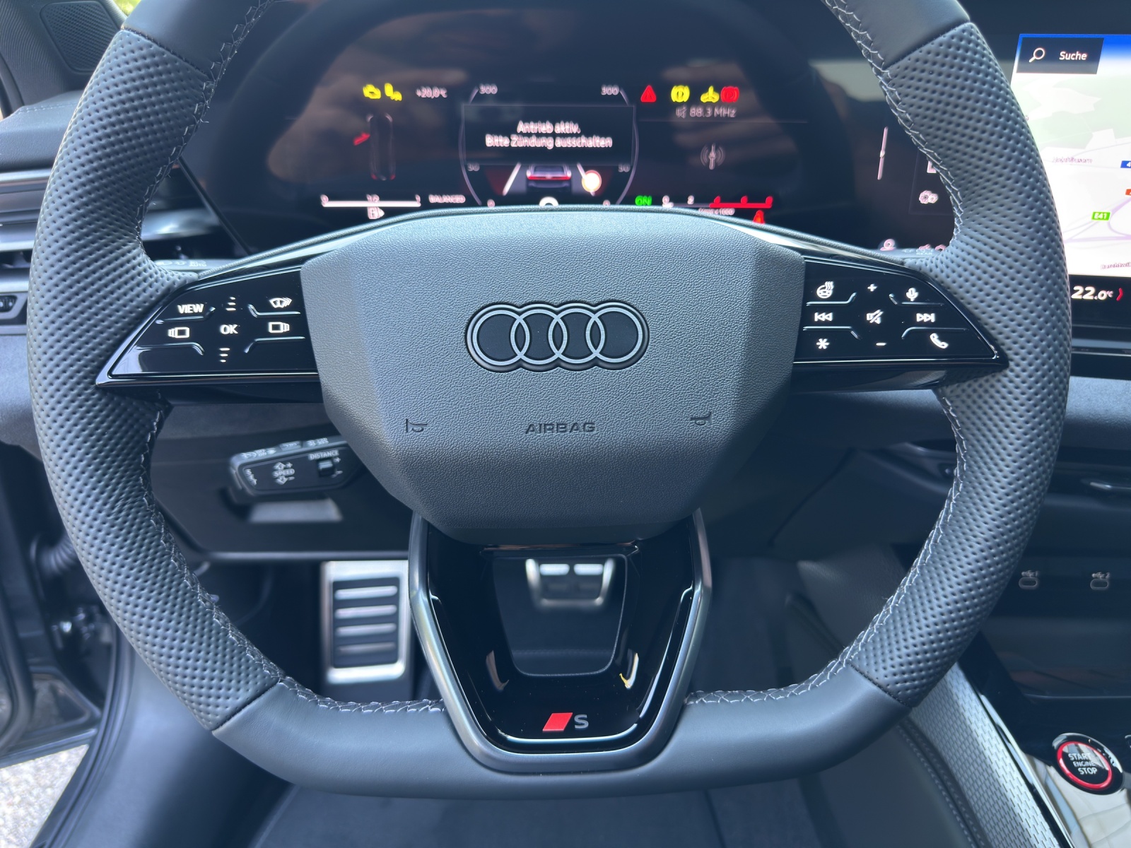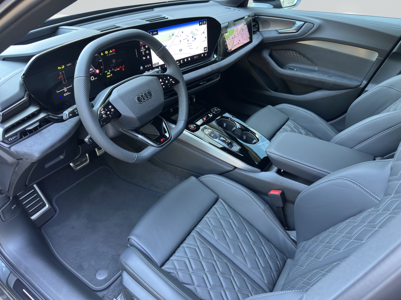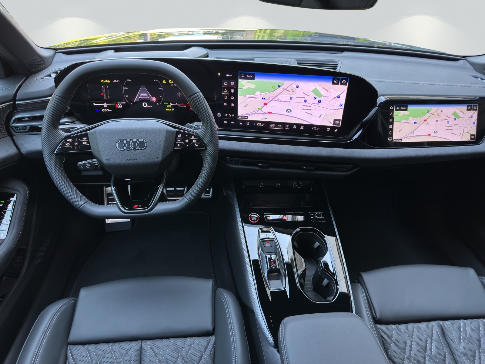 Serienausstattung Airbag: Airbags vorn, Beifahrerairbag deaktivierbar Airbag: Seitenairbags vorn, mit Kopfairbag und Interaktionsairbag vorn Akustisches Fahrzeug-Warnsystem Assist: Adaptiver Geschwindigkeitsassistent Assist: Aufmerksamskeits-und Müdigkeitserkennung mit Fahrerbeobachtung Assist: Ausweichassistent und Abbiegeassistent Assist: Einparkhilfe plus mit Distanzanzeige Assist: Geschwindigkeitsbegrenzungsanlage Assist: Kamerabasierte Verkehrszeichenerkennung Assist: Notbremsassistent vorn Assist: Parkassistent plus Assist: Querverkehrassistent vorn Assist: Spurverlassenswarnung Assist: Spurwechsel- und Ausstiegswarnung, Querverkehrassistent hinten und Abbiegeassistent hinten Assist: Traktionskontrolle Assist: Verkehrszeichenbasierter Geschwindigkeitsbegrenzer Audi virtual cockpit plus Aussenspiegel Fahrerseite asphärisch, Beifahrerseite asphärisch Aussenspiegel elektrisch einstell-, beheiz- und anklappbar, beidseitig automatisch abblendend Aussenspiegelgehäuse Chromoptik matt silber Dachhimmel in Stoff schwarz Dachreling Aluminiumoptik Dekor: Akzentflächen und Bedientasten schwarz glänzend Dekor: Dekoreinlagen Aluminium matt gebürstet mit Linearprägung anthrazit Dekor: Interieurapplikationen Aluminiumoptik Dekor: Interieurelemente oben und unten mit Kontrastnaht Dekor: Interieurelemente umlaufend Mikrofaser Dinamica Einstiegsleisten mit Aluminiumeinlagen, vorne, beleuchtet, mit S-Schriftzug Elektrische Fensterheber vorne Elektronisches Stabilitäts-Programm (ESP) Fahrwerk: S-Sportfahrwerk Fahrwerk: Scheibenbremsen hinten, 18 Zoll, Bremssättel schwarz Fahrwerk:Scheibenbremsen vorn, 18 Zoll, Bremssättel schwarz, S-Schriftzug Fensterzierleisten Aluminiumoptik Frontscheibe in Wärmeschutz- und Akustikverglasung Fussmatten vorne und hinten Garantie: Audi Garantie 2 Jahre ohne Kilometerbegrenzung (ab 1. Inv.) Getriebe: 7-Gang- Automat S tronic Innenspiegel automatisch abblendbar Kindersicherung, elektrisch Klima: 3-Zonen-Klimatisierungsautomatik Komfortmittelarmlehne vorne Komfortschlüssel ohne Safelock Lackierung: Uni-Lackierung Lenkrad: Lenkradapplikation Chromoptik, S-Emblem, Lenkradgriffe perforiertes Leder und Kontrastnaht Lenkrad: Lenkradeinstellung manuell Lenkrad: Sportlederlenkrad, 3-Speichen, oben und unten abgeflacht mit Multifunktion und Schaltwippen Licht: LED-Heckleuchten pro Licht: Projektionsleuchte in den Aussenspiegeln Licht: Tagesfahrlicht mit Assistenzfahrlicht u.Coming- u. Leaving-home Funktion automatisch Media: Audi Application Store und Smartphone-Interface Media: Audi connect Navigation & Infotainment Media: Audi connect Notruf & Service mit Audi connect Remote & Control Media: Digitaler Radioempfang Media: FOD Funktionen online verfügbar Media: Navigationsgerät-High Modellbezeichnung am Heck Paket: Ambiente Lichtpaket plus Paket: Klimatisierungspaket Paket: MMI experience plus mit Audi Soundsystem Paket: Matrix LED-Scheinwerfer Pedalerie und Fussstütze in Edelstahl Polster: Mikrofaser Dinamica/Leder-Kombination mit Rautensteppung und S-Prägung Räder: Radschrauben Standard Räder: Reifendruck-Kontrollanzeige Räder: Reifenreparatur-Set (Tire Fit) Räder: Räder, 5-Doppel-V-Speichen, graphitgrau, glanzgedreht Scheiben seitlich und hinten in Wärmeschutzverglasung Sitze: 4-Wege-Lendenwirbelstütze für die Vordersitze Sitze: Kindersitzbefestigung i-Size auf der Beifahrerseite und i-Size und Top Tether Sitze: Sitzbelegungserkennung Sitze: Vordersitze elektrisch verstellbar Sitze: Vordersitze heizbar Türen: Gepäckraumklappe elektrisch öffnend und schliessend Türen: Türgriffe in Wagenfarbe Verbandmaterial,Warndreieck und Warnveste Wegfahrsperre elektronisch Zentralverriegelung mit Fernbedienung