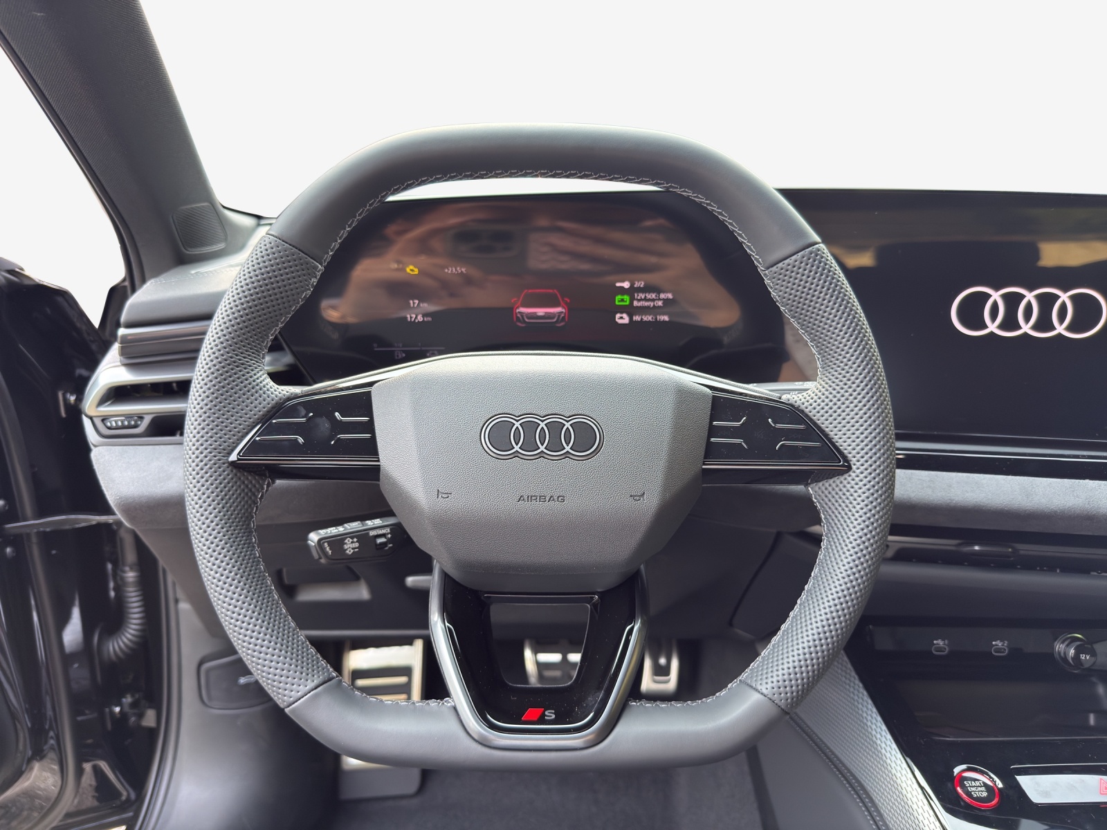 Airbag: Airbag Fahrer und Beifahrer Airbag: Seitenairbags vorn, mit Kopfairbag und Interaktionsairbag vorn Assist: Ablenkungs- und Müdigkeitserkennung Assist: Adaptiver Geschwindigkeitsassistent Assist: Ausweichassistent und Abbiegeassistent Assist: Einparkhilfe plus mit Distanzanzeige Assist: Kamerabasierte Verkehrszeichenerkennung Assist: Kreuzungsassistent Assist: Notbremsassistent vorn Assist: Parkassistent plus Assist: Spurverlassenswarnung Assist: Traktionskontrolle Assist: Verkehrszeichenbasierter Geschwindigkeitsbegrenzer Audi connect Notruf & Service mit Audi connect Remote & Control Audi virtual cockpit plus Aussenspiegel Fahrerseite asphärisch, Beifahrerseite asphärisch Aussenspiegel elektrisch einstell-, beheiz- und anklappbar, beidseitig automatisch abblendend Dachhimmel in Stoff schwarz Dekor: Akzentflächen und Bedientasten schwarz glänzend Dekor: Aluminiumoptik im Interieur Dekor: Dekoreinlagen Aluminium matt gebürstet mit Linearprägung anthrazit Dekor: Interieurapplikationen Aluminiumoptik Dekor: Interieurelemente oben und unten mit Kontrastnaht Einstiegsleisten mit Aluminiumeinlagen, vorne, beleuchtet, mit S-Schriftzug Elektrische Fensterheber vorne Elektronisches Stabilitäts-Programm (ESP) Fahrwerk: Bremssättel rot lackiert Fahrwerk: S-Sportfahrwerk Frontscheibe in Wärmeschutz- und Akustikverglasung Funkschlüssel, ohne Safelock Fussmatten vorne und hinten Garantie: Audi Garantie 2 Jahre ohne Kilometerbegrenzung (ab 1. Inv.) Getriebe: 7-Stufen Automatisiertes Schaltgetriebe Innenspiegel automatisch abblendbar Kindersicherung, elektrisch Klima: 3-Zonen-Klimatisierungsautomatik Komfortmittelarmlehne vorne Lackierung: Uni-Lackierung Ladekabel Mode 3 für öffentliches Laden bis 22 kW Lenkrad: Lenkradapplikation Chromoptik, S-Emblem, Lenkradgriffe perforiertes Leder und Kontrastnaht Lenkrad: Lenkradeinstellung manuell Lenkrad: Sportlederlenkrad, 3-Speichen, oben und unten abgeflacht mit Multifunktion und Schaltwippen Licht: Fernlicht-Assistent Licht: LED-Heckleuchten pro Licht: LED-Scheinwerfer plus Licht: Tagesfahrlicht mit Assistenzfahrlicht u.Coming- u. Leaving-home Funktion automatisch Media: Audi Application Store und Smartphone-Interface Media: Audi connect Navigation & Infotainment Media: Digitaler Radioempfang Media: FOD Funktionen online verfügbar Media: MMI experience plus Media: Navigationsgerät-High Media: USB-Anschlüsse mit Ladefunktion in erster und zweiter Sitzreihe Modellbezeichnung am Heck Paket: Ambiente Lichtpaket plus Paket: Assistenzpaket Fahren und Parken Paket: Exterieur Optikpaket schwarz Paket: Klimatisierungspaket Pedalerie und Fussstütze in Edelstahl Polster: Mikrofaser Dinamica/Leder-Kombination mit Rautensteppung und S-Prägung Räder: Radschrauben Standard Räder: Reifendruck-Kontrollanzeige Räder: Reifenreparatur-Set (Tire Fit) Räder: Räder, 5-Arm-Aero, schwarz, glanzgedreht Scheiben seitlich und hinten in Wärmeschutzverglasung Schlüssel für Schliesssystem mit Fernbedienung Sitze: 4-Wege-Lendenwirbelstütze für die Vordersitze Sitze: Kindersitzbefestigung i-Size auf der Beifahrerseite und i-Size und Top Tether Sitze: Sitzbelegungserkennung Sitze: Vordersitze elektrisch verstellbar Sitze: Vordersitze heizbar Sonnenschutzverglasung, abgedunkelt Stossfänger S-line mit Kühlerschutzgitter und Diffusor in Phantomschwarz, Türen: Gepäckraumklappe elektrisch öffnend und schliessend Verbandmaterial,Warndreieck und Warnveste Wegfahrsperre elektronisch