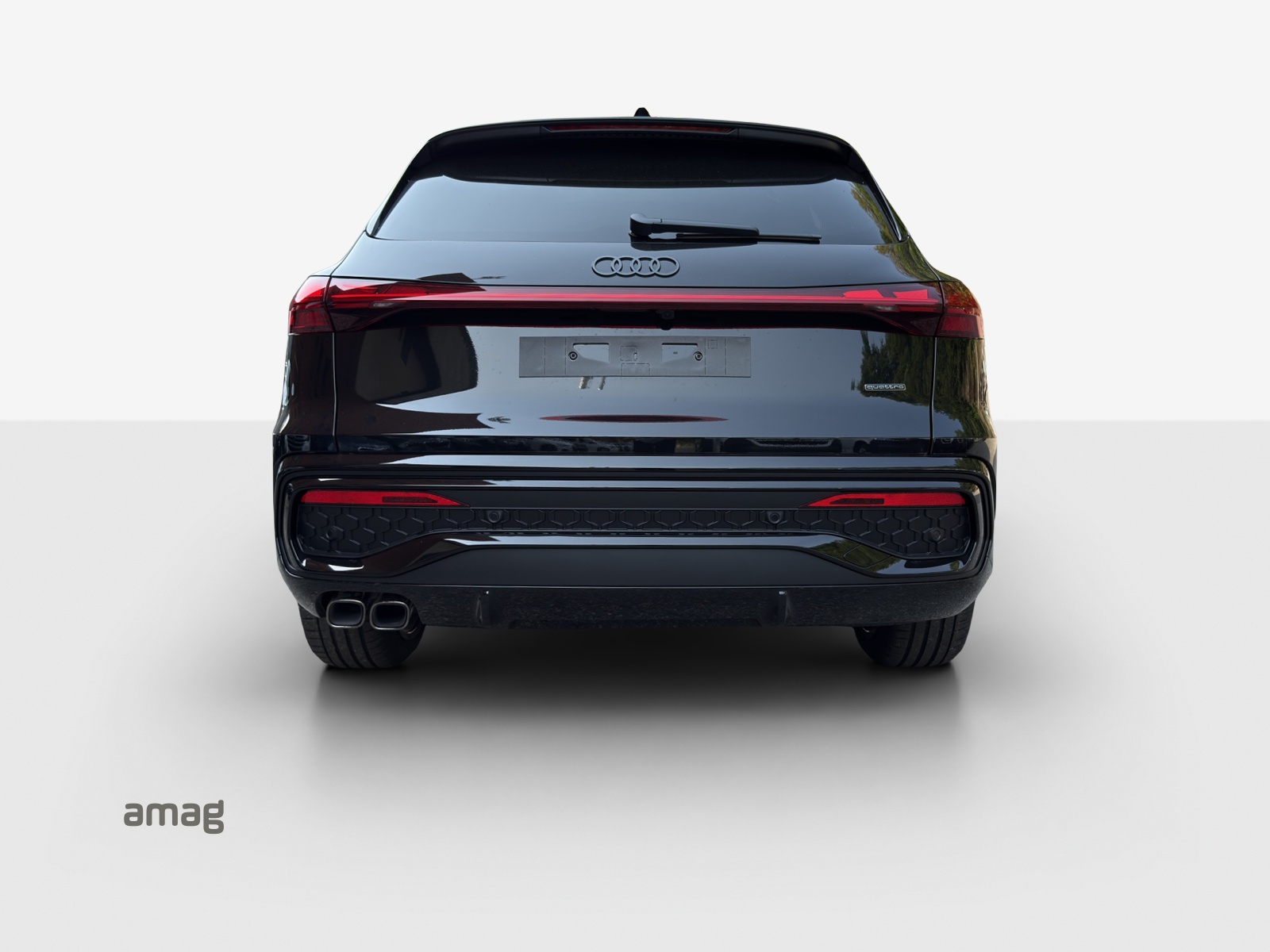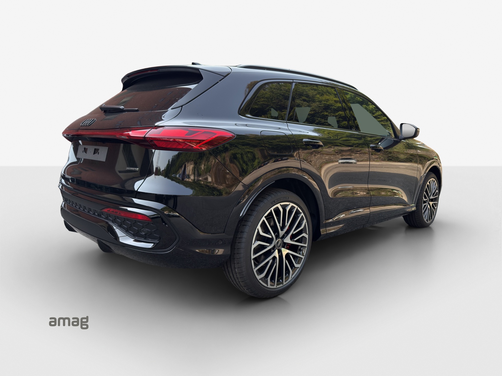 Akustikverglasung für Türscheiben vorn Assist: Adaptiver Fahrassistent plus Aussenspiegelgehäuse in Schwarz Dekor: Interieurapplikationen Vanadiumoptik Entfall Modellbezeichnung Fahrwerk: Adaptive air suspension Fahrwerk: Bremssättel, farbig Insassenerkennung im Fond Lackierung: Metallic-Lackierung Licht: Ein- und Ausstiegs-Komfortbeleuchtung Paket: Ablage- und Gepäckraumpaket Paket: Interieur S mit Sportsitzen, Mikrofaser Dinamica/Leder-Kombination schwarz Paket: MMI experience pro Paket: Paket Premium Experience Q5 Paket: edition one mit Akzenten schwarz Räder: Räder Audi Sport, 5-Arm-Split, schwarz metallic, glanzgedreht Räder: Räder Audi Sport, Vielspeichen-S, schwarz metallic, glanzgedreht Sitze: Fahrersitz und Aussenspiegel mit Memoryfunktion Sonnenschutzrollo manuell für die Türscheiben hinten Sonnenschutzverglasung, abgedunkelt