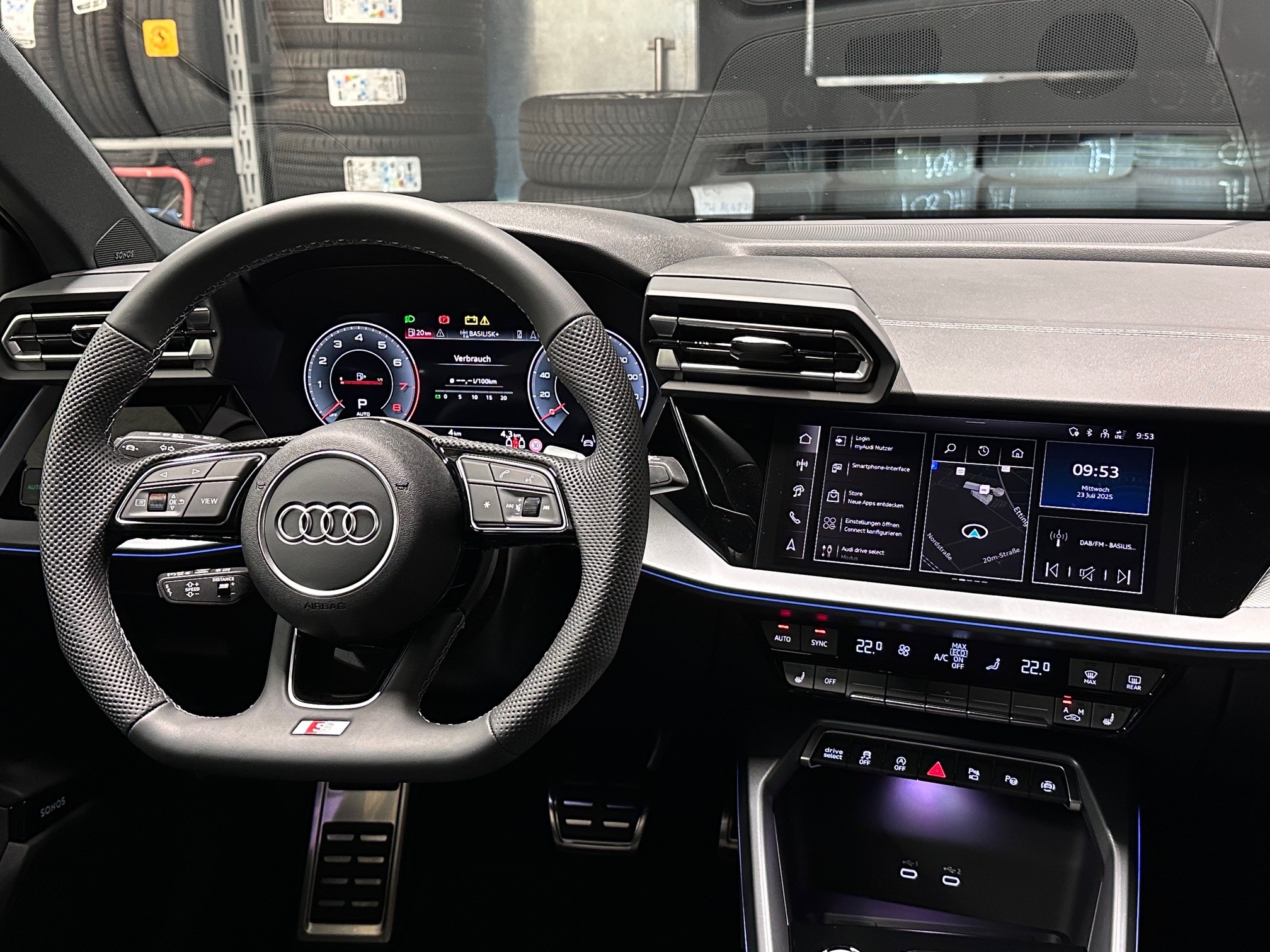 [WSO] Paket "Infotainment" [WKC] Paket "Komfort" [5MJ] Dekor: Dekoreinlage Aluminium Spektrum dunkel [WKB] Paket "Technik" [2PK] Lenkrad: Sportkontur-Lederlenkrad im 3-Speichen-Design - mit Multifunktion plus und Schaltwippen, unten abgeflacht [A41] Audi Swiss Service Package+