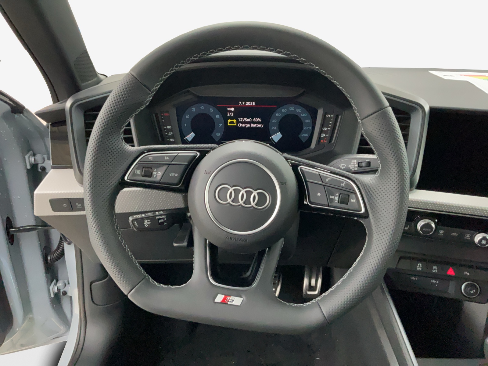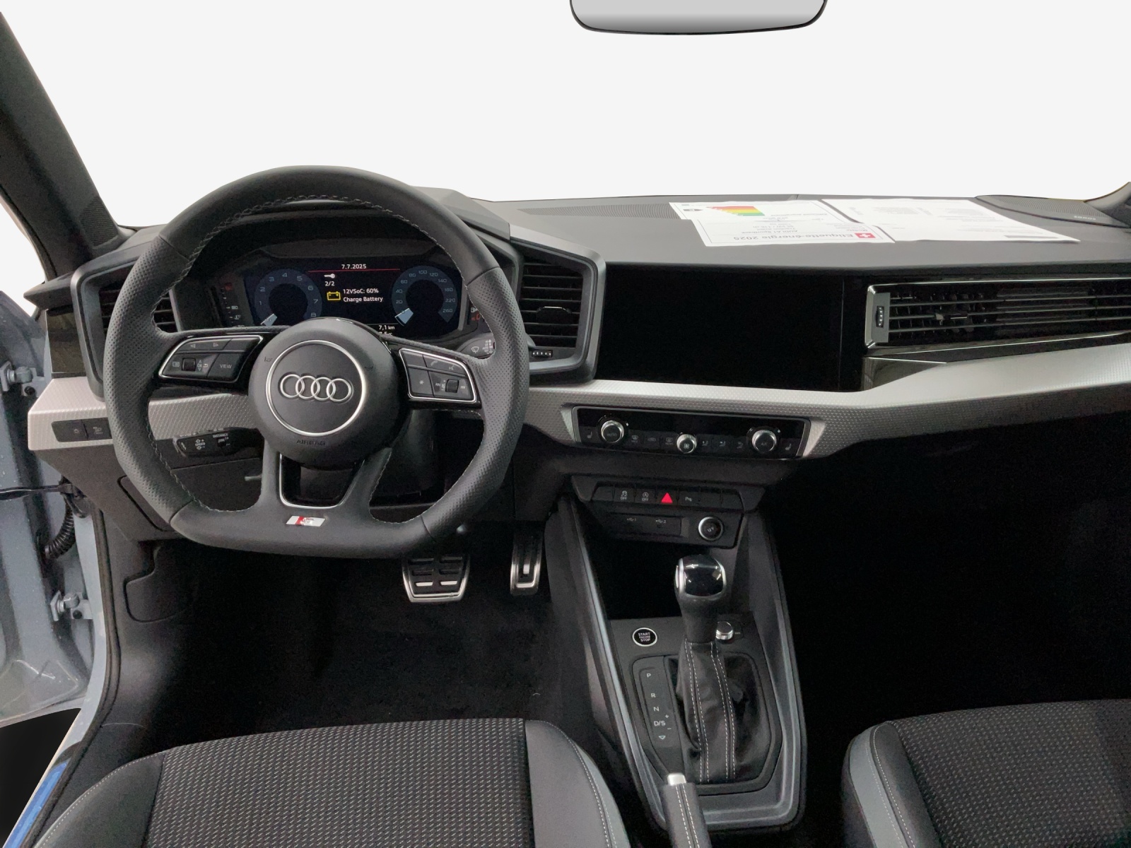 Assist: Einparkhilfe plus Ciel de pavillon en tissu noir Climat: climatisation automatique confort 2 zones Clé confort (sans verrouillage de sécurité) Mèdias: Système audio SONOS haut de gamme Pack: S line avec siège sport (combinaison tissu Puls / similicuir mono.pur 550 noir) Peinture: Lignes de la toiture couleur contrastée Roues: Roues en fonte d’aluminium - 18 pouces - Audi Sport, 5 branches en Y, noir métallisé, Sièges: Sièges sport à l’avant Volant: volant Sport contour en cuir à 3 branches aplati en bas avec multifonction plus